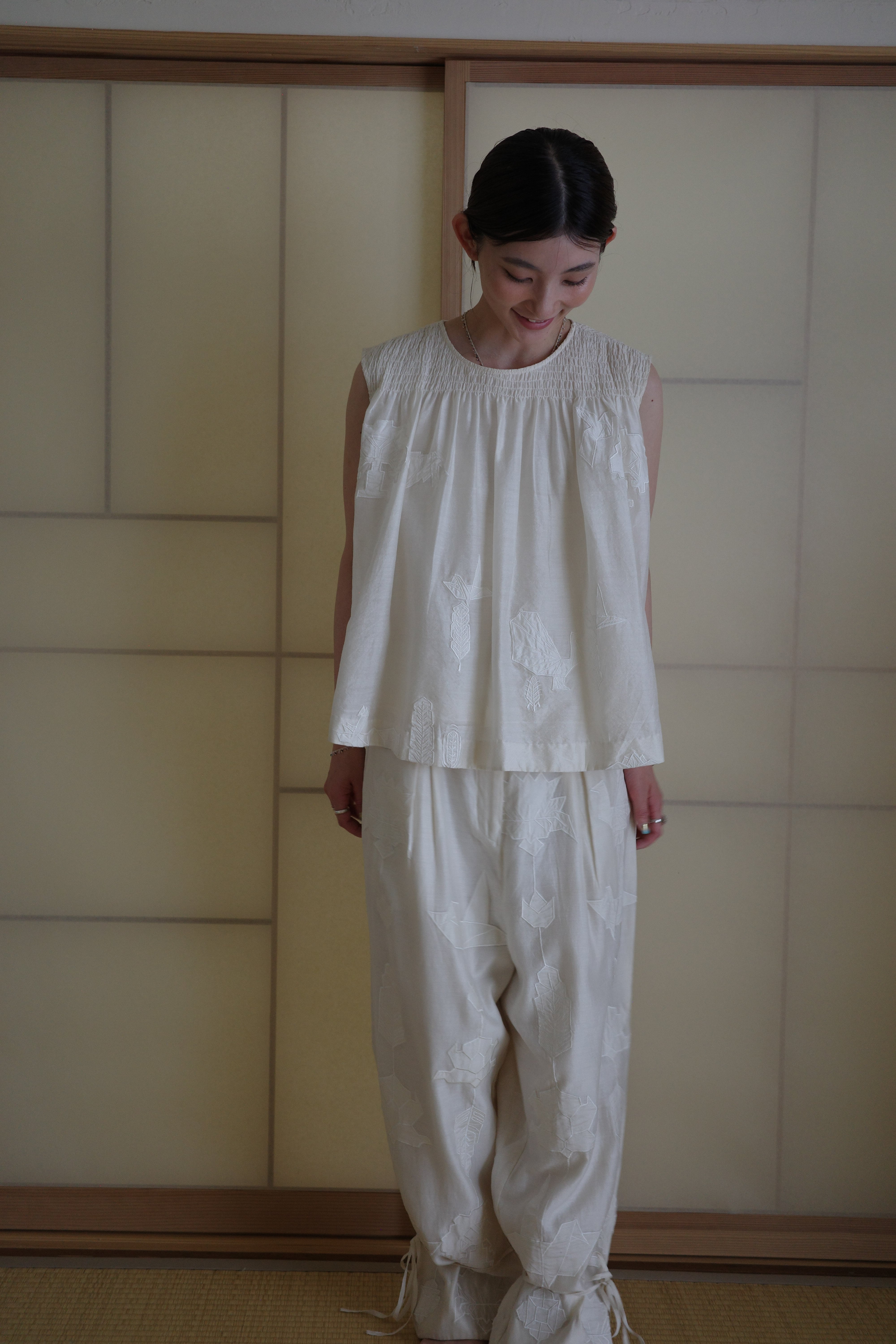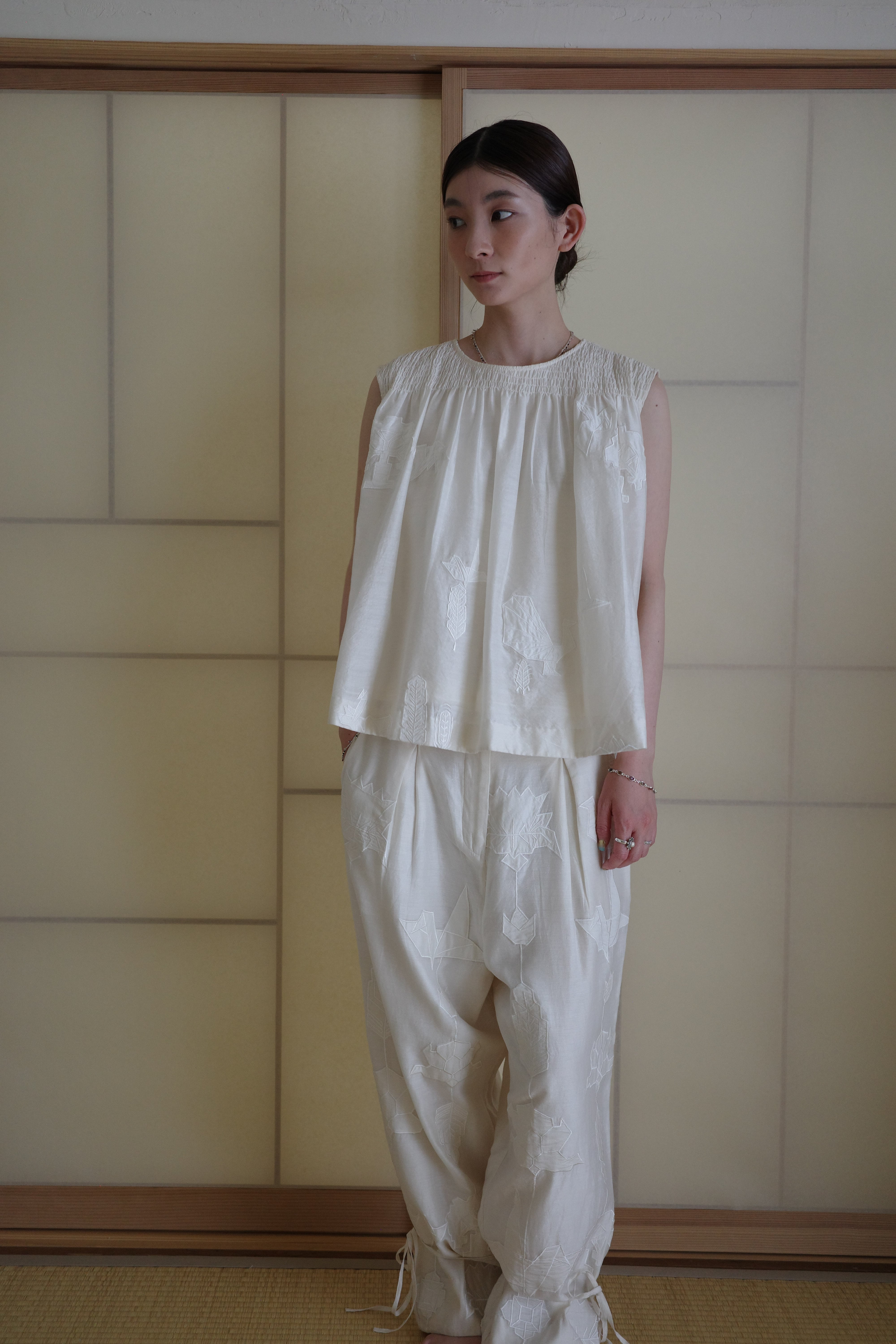 伝統と現代性が融合したデザインで、静けさの中にある美しさや、光と影の繊細なバランスを感じさせる作品群です。日常に特別な一着を取り入れたい方におすすめです。