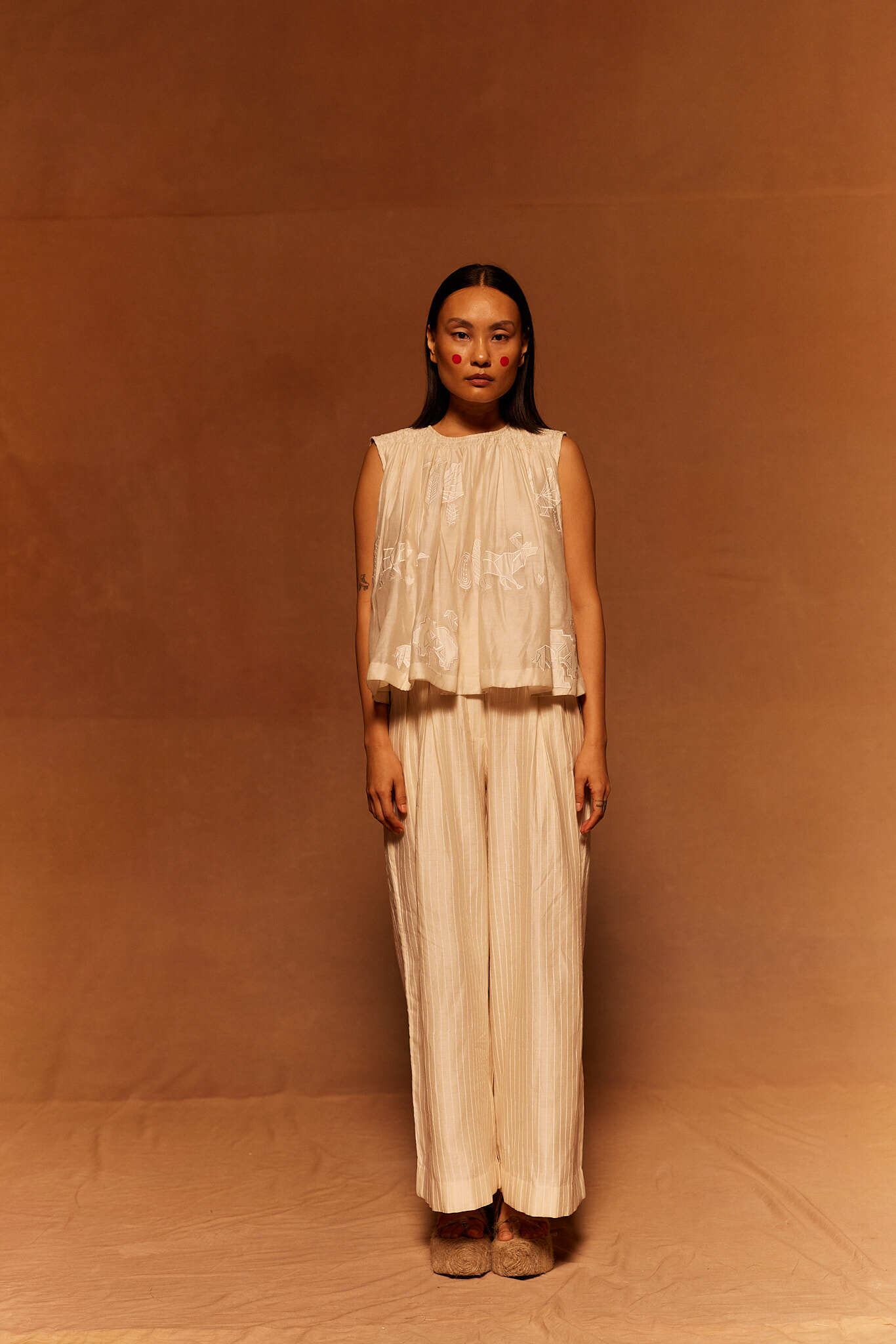 The beauty of the garments is spun by the designer's philosophy and the hands of traditional Indian craftsmen.
