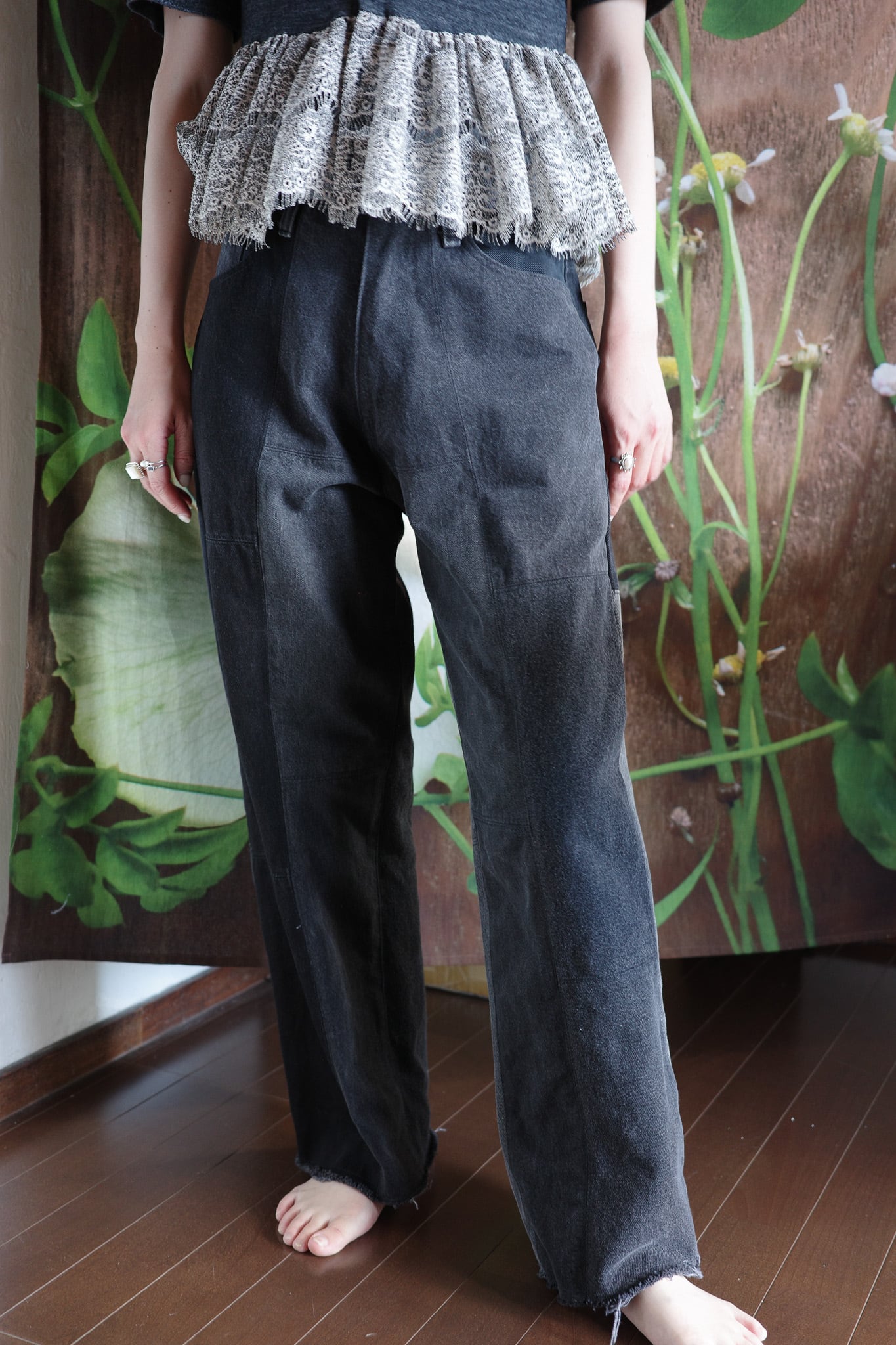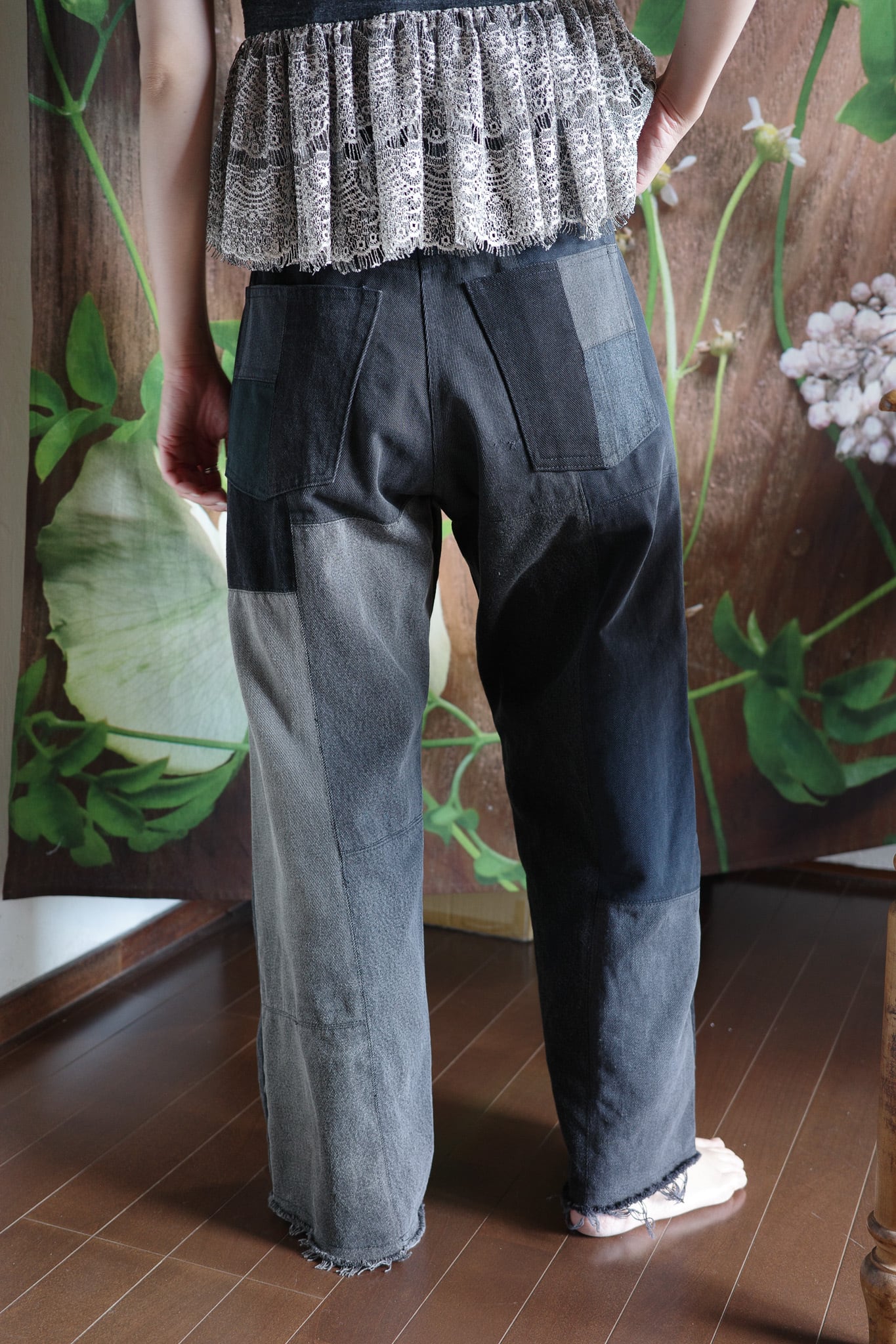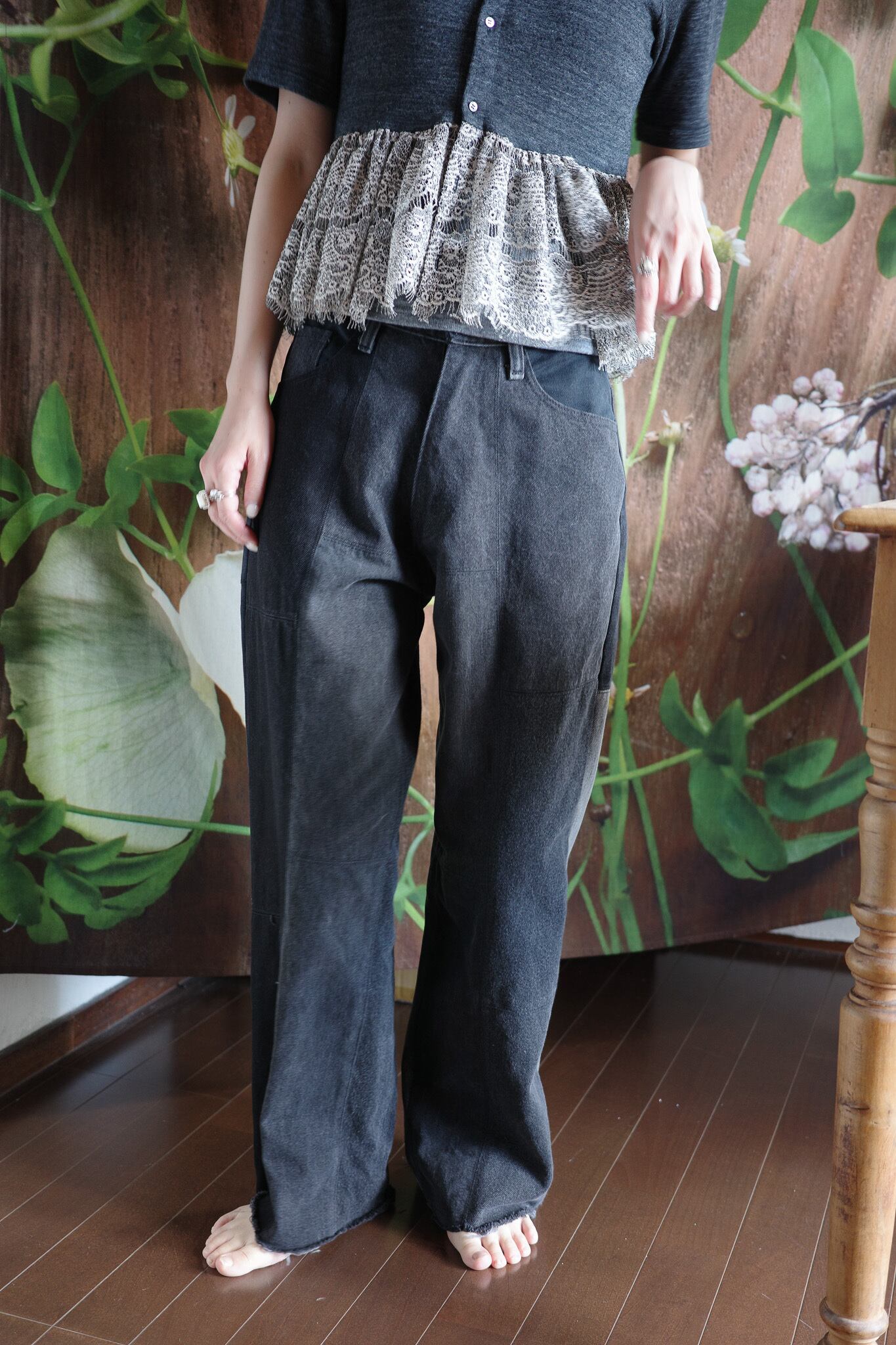 ヴィンテージのデニムをリメイクしたパンツ。