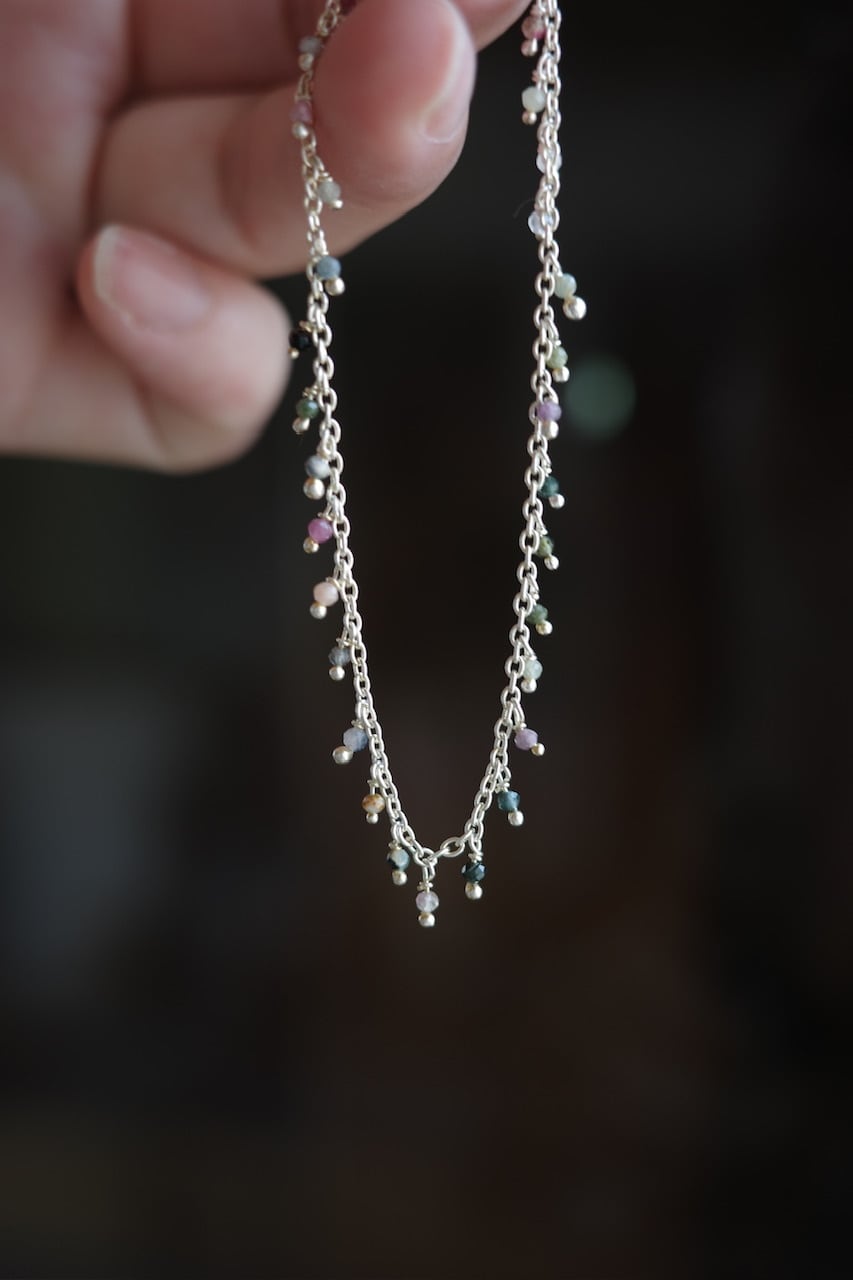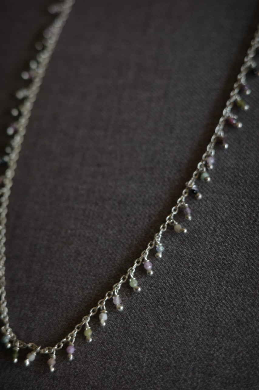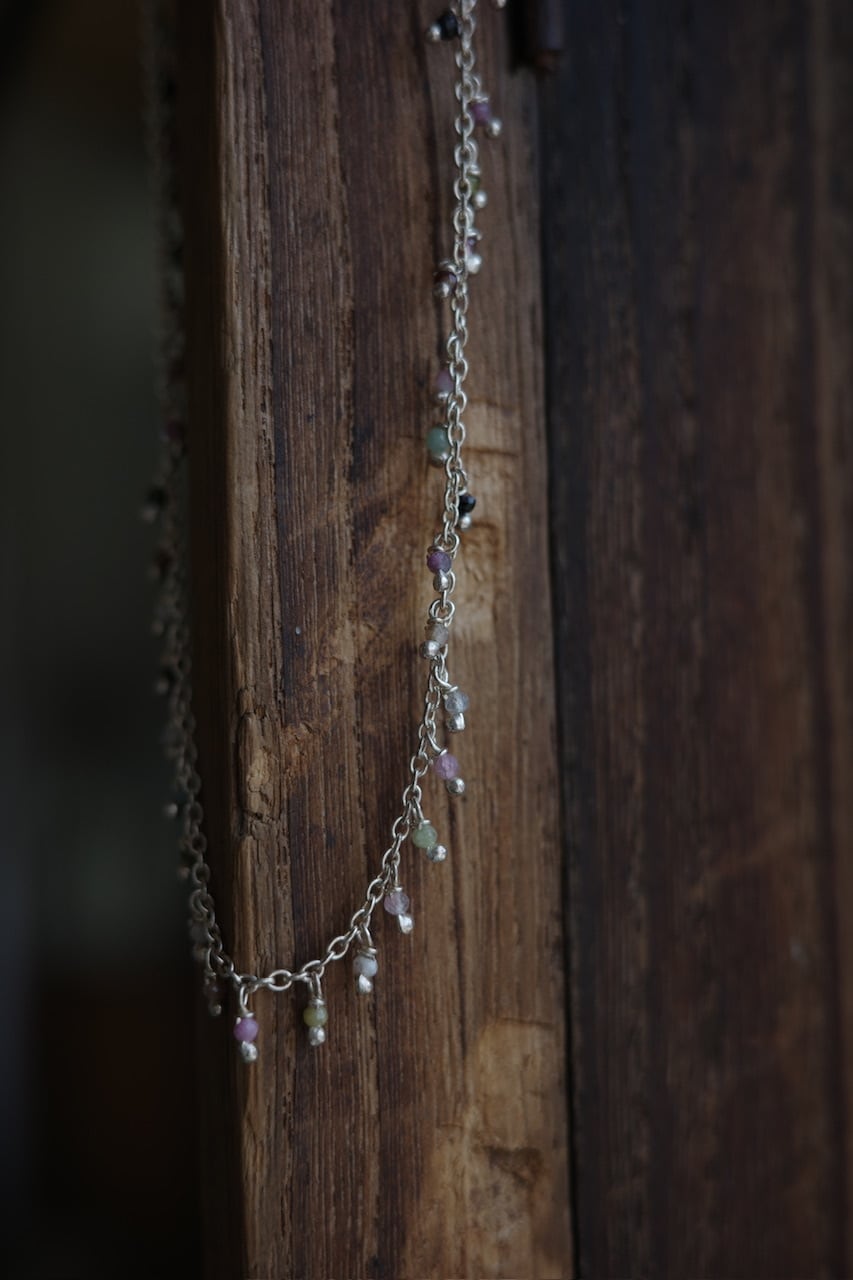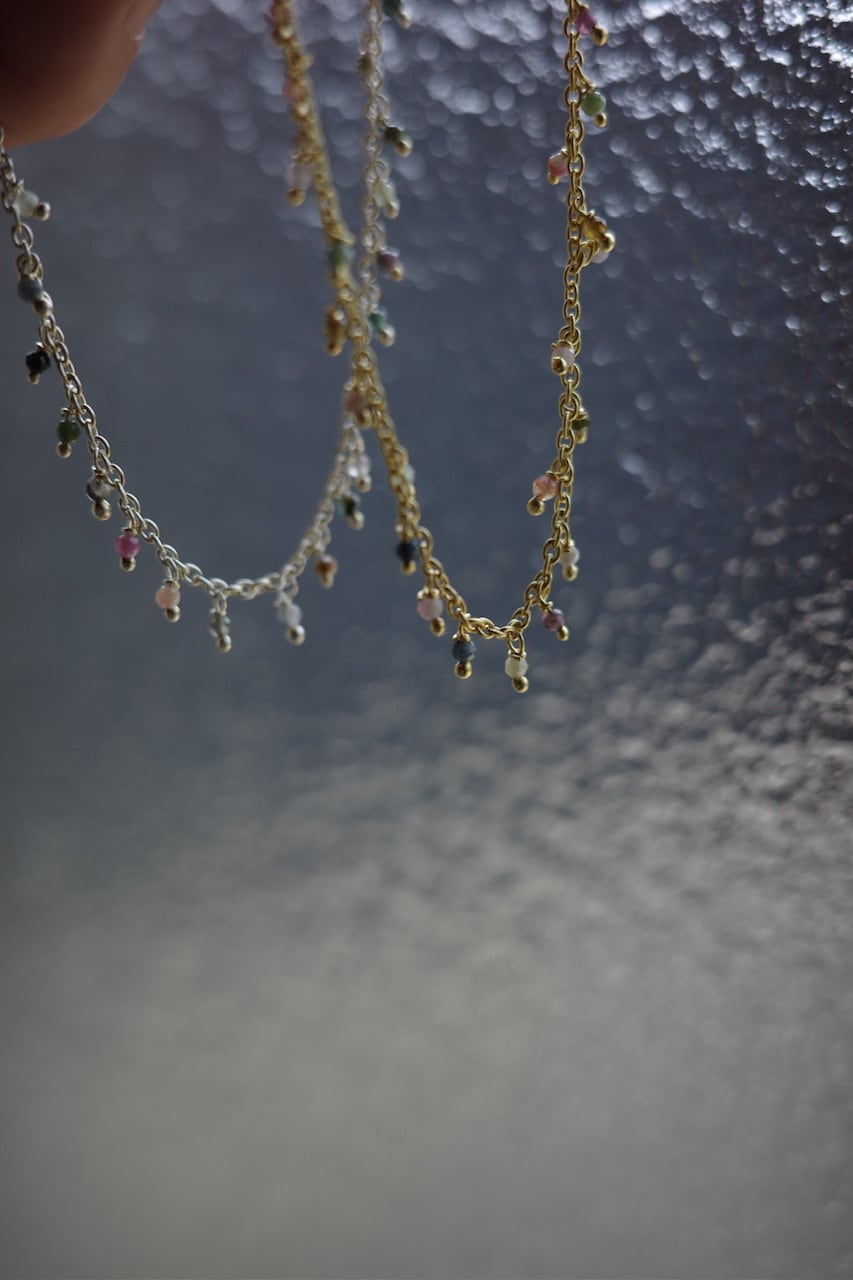 小さな天然石トルマリンの粒がついたシリーズ。