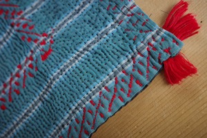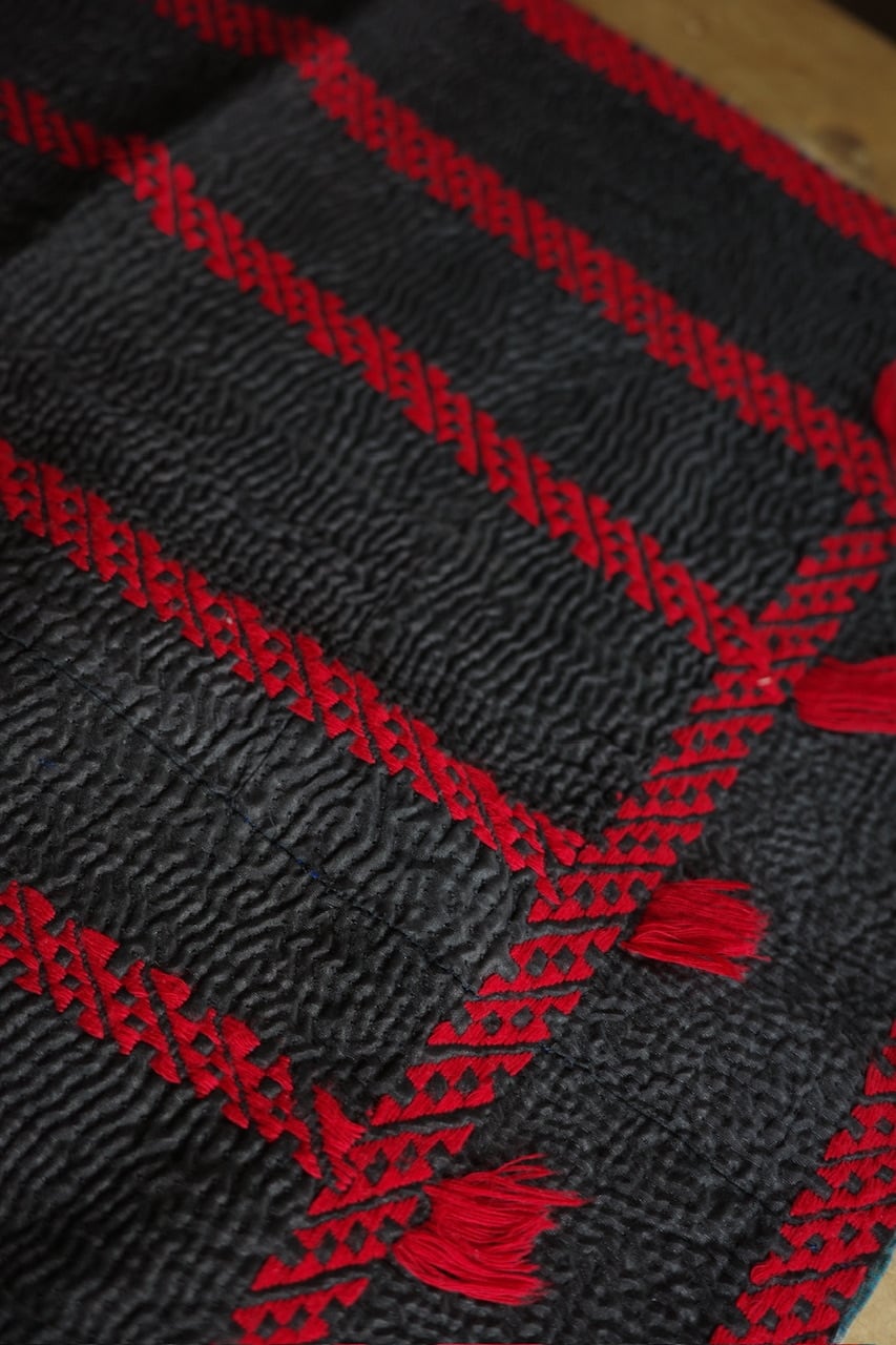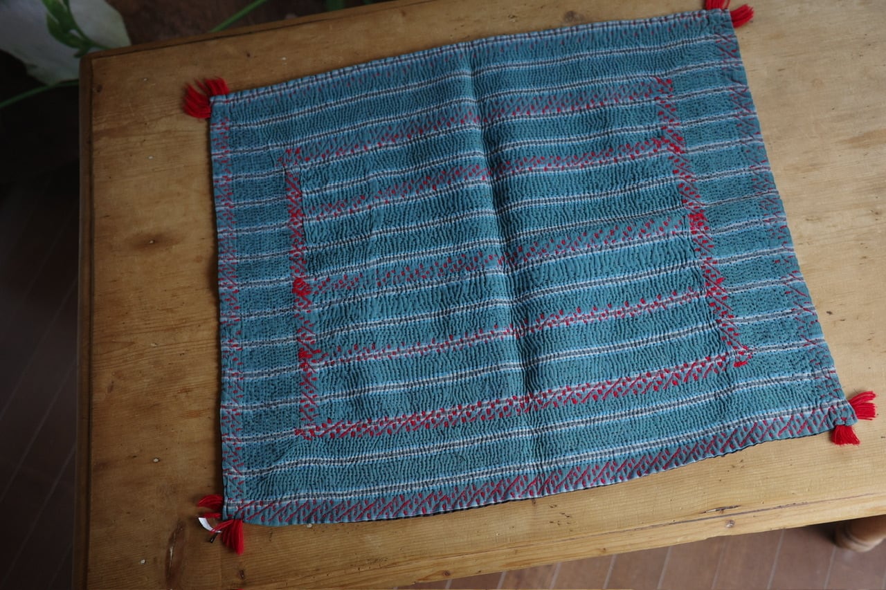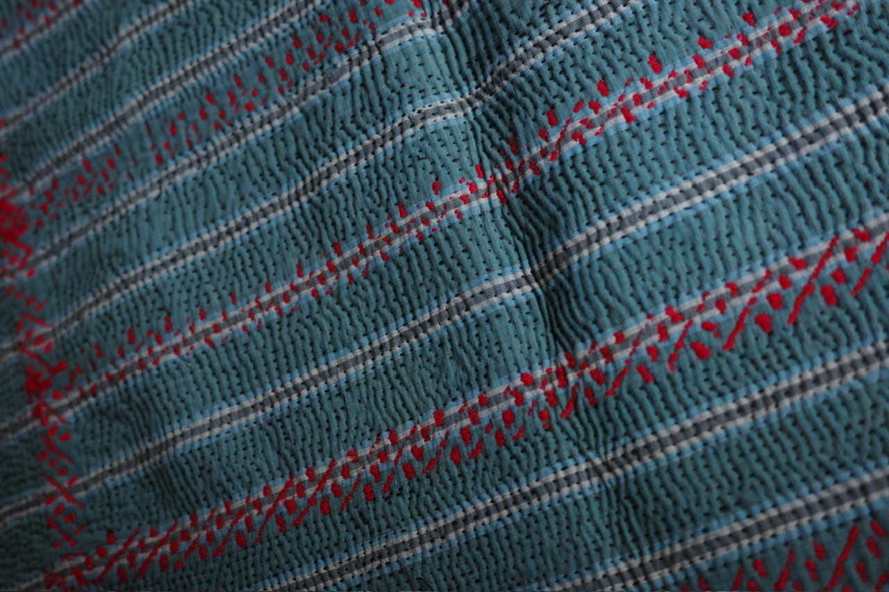 ヴィンテージ カンタキルトは、数十年前に作られたもので、布が貴重だった時代に使い古した布を集め、幾重にも重ね、さまざまなモチーフで刺し子や刺繍を施し家族のためのもの。近代ではカラフルな布に刺し子や刺繍を施したものが多く、家庭用だけではなく商業用に製作された物も多く見られます。