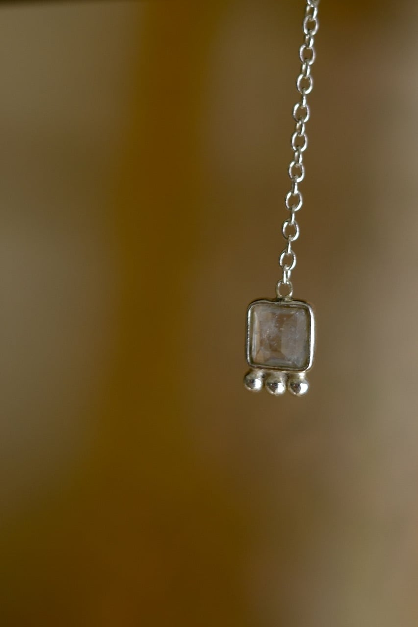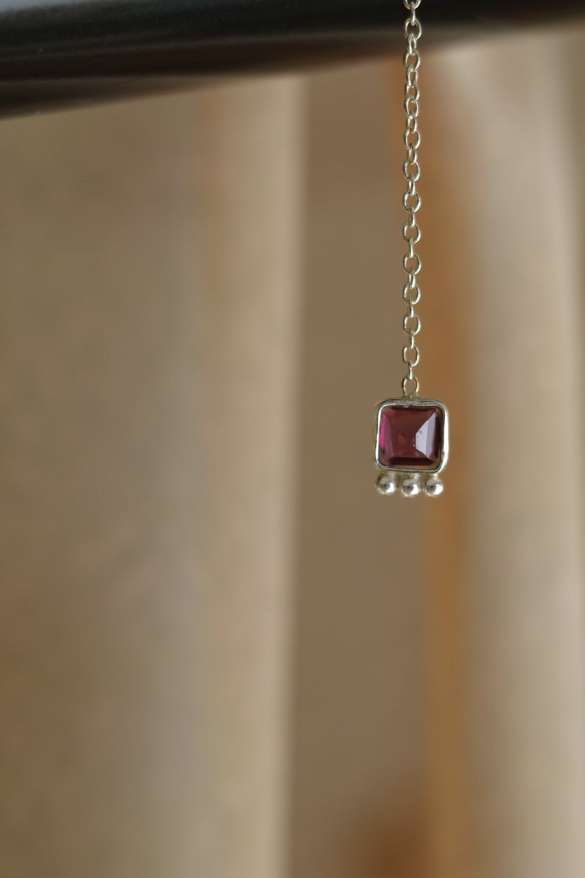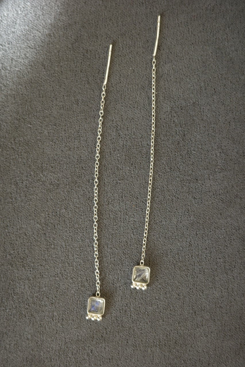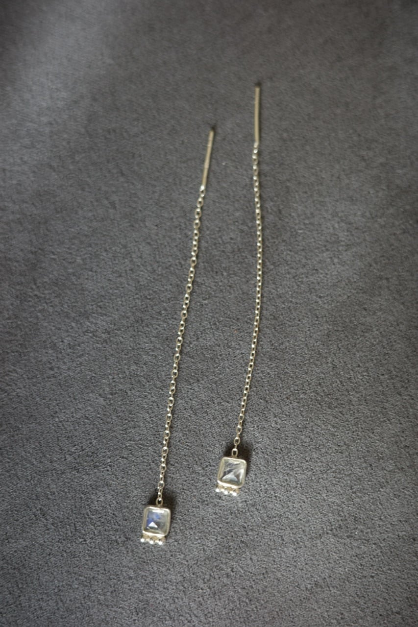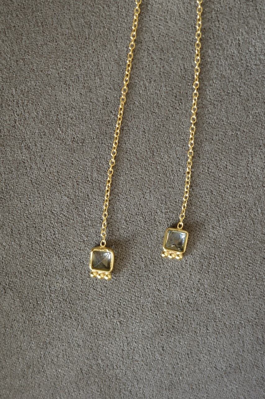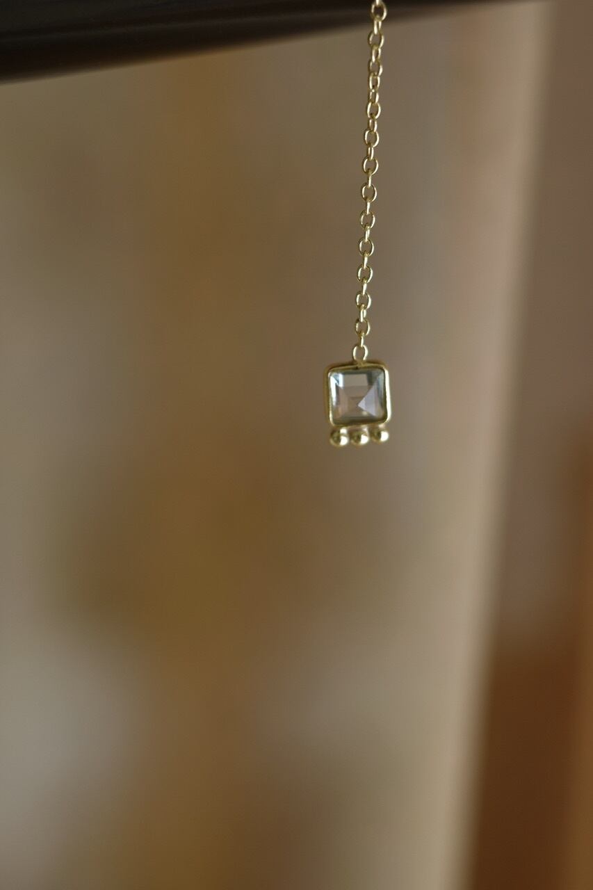 繊細なシルバーチェーンに、透明感のあるグリーンストーンをあしらったピアス。