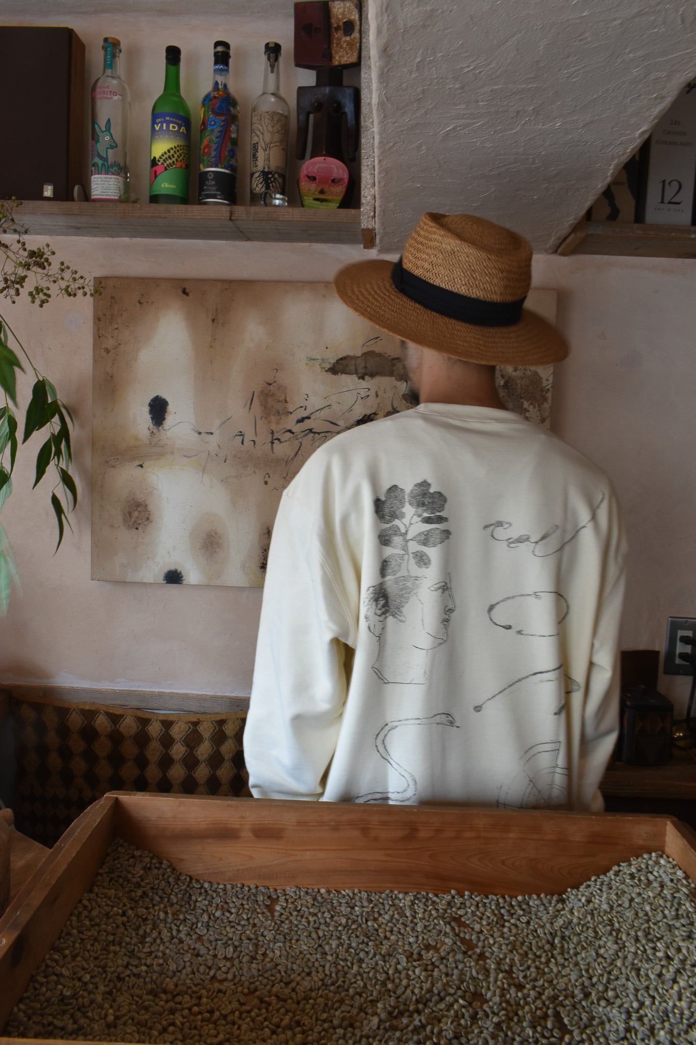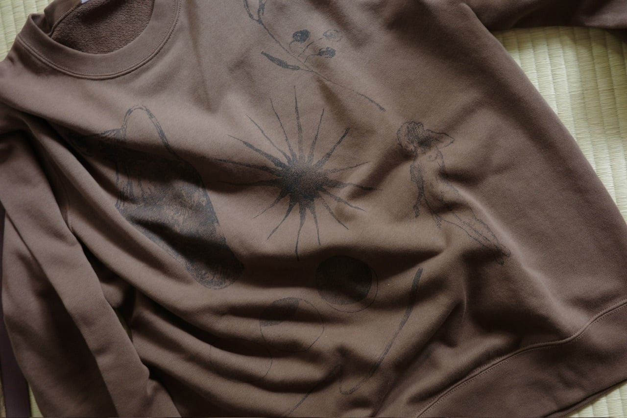 physisのロゴを手がけるアーティスト moe iwata と共作したオリジナルスウェット。