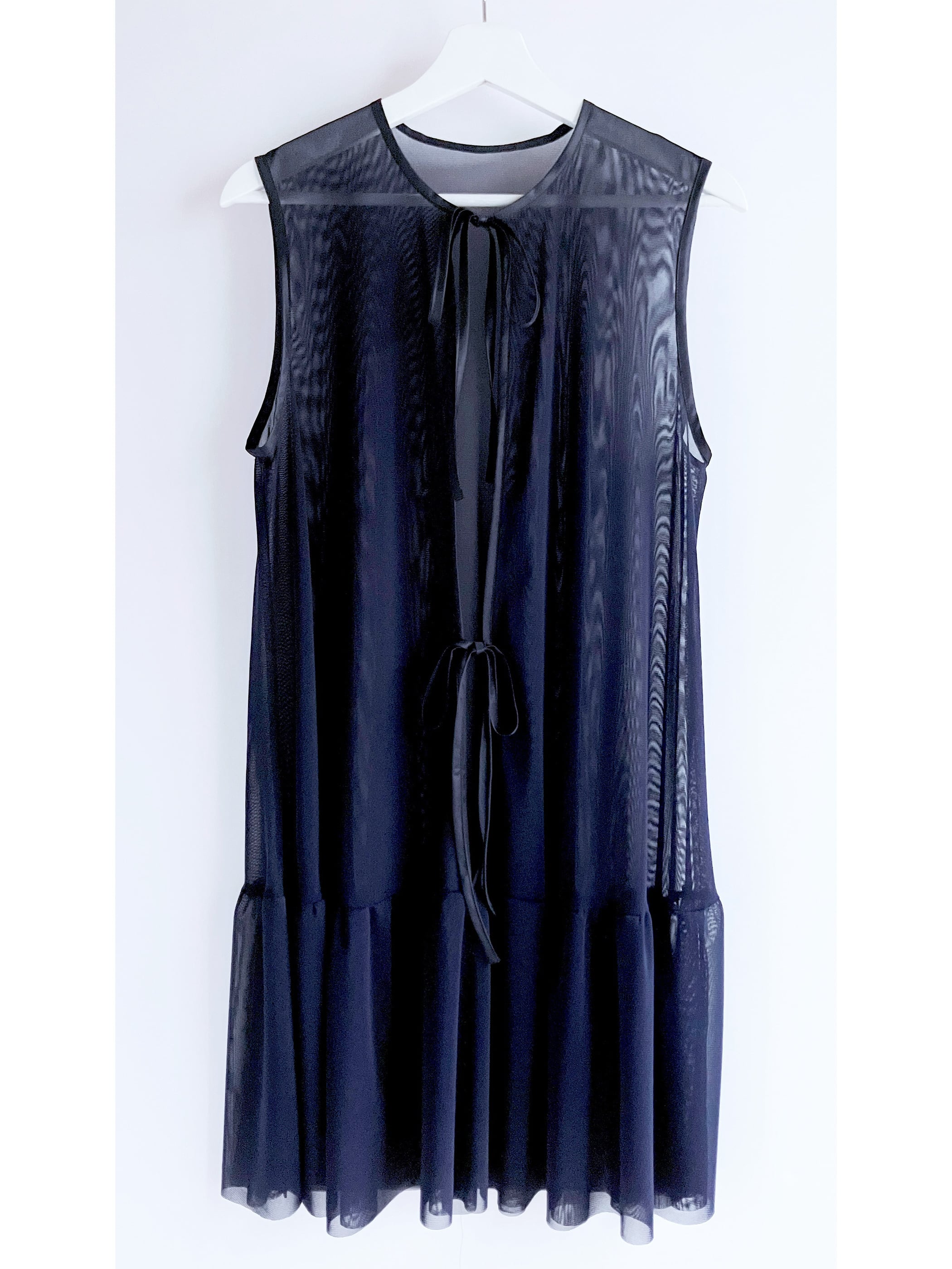 ストレッチ性に優れたパワーネットチュールを使用したメッシュミニドレス。