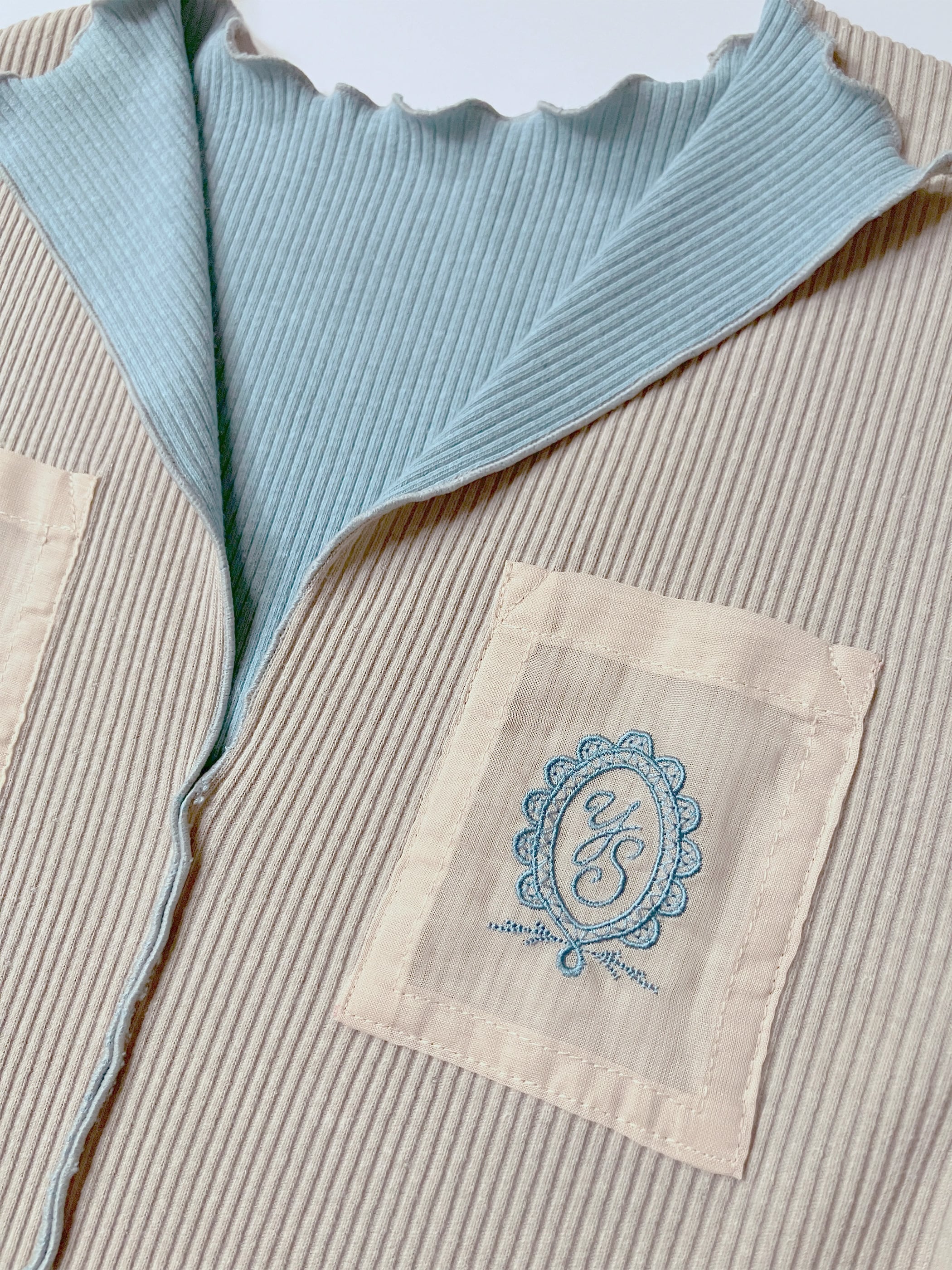胸元にはブランドモチーフ刺繍のシアーポケットでさらなる存在感を。