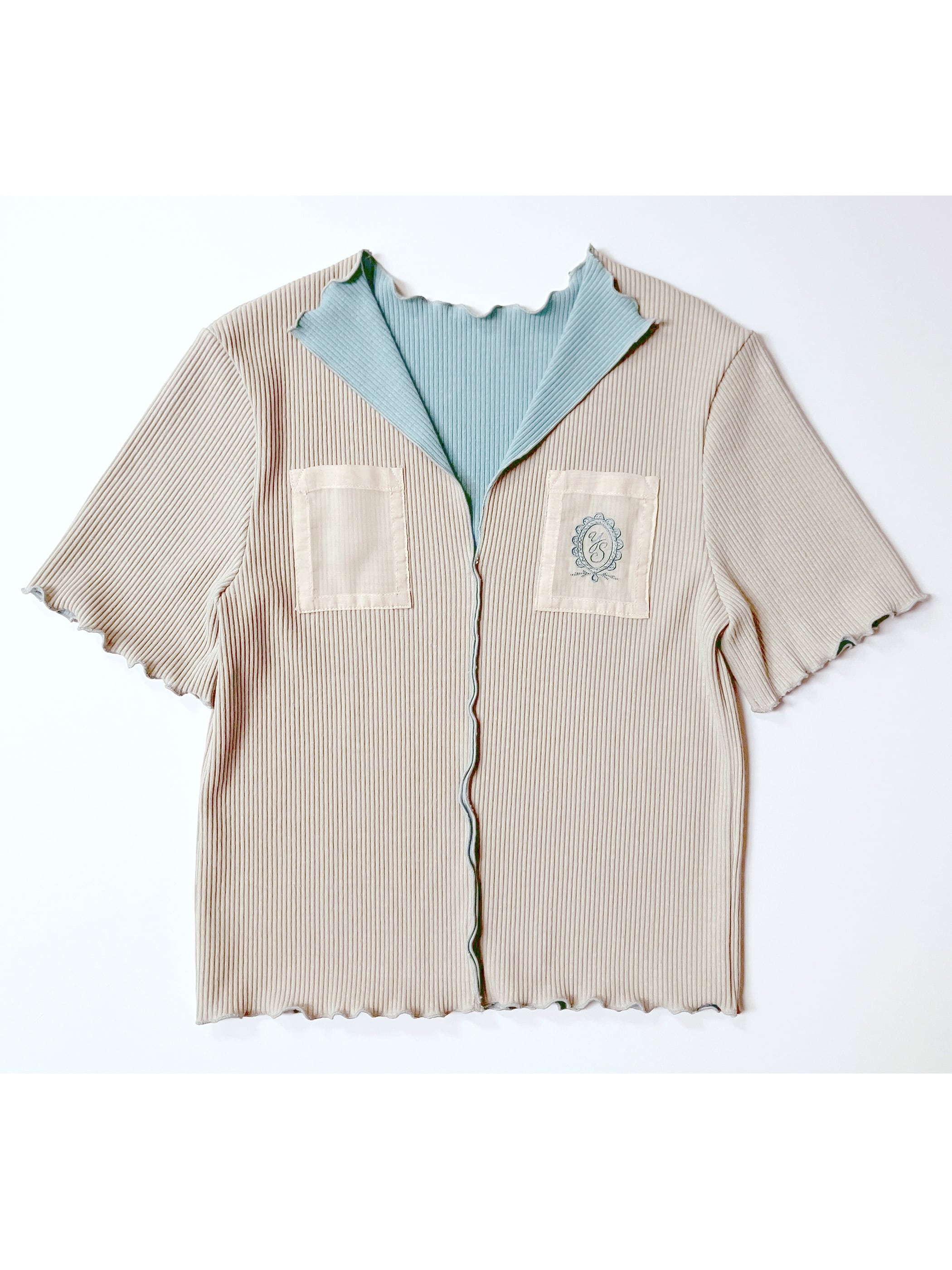 表と裏で色が異なる高密度リブによるコンパクトなトップス。