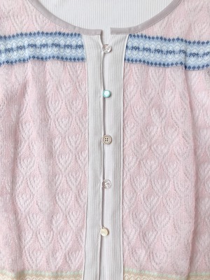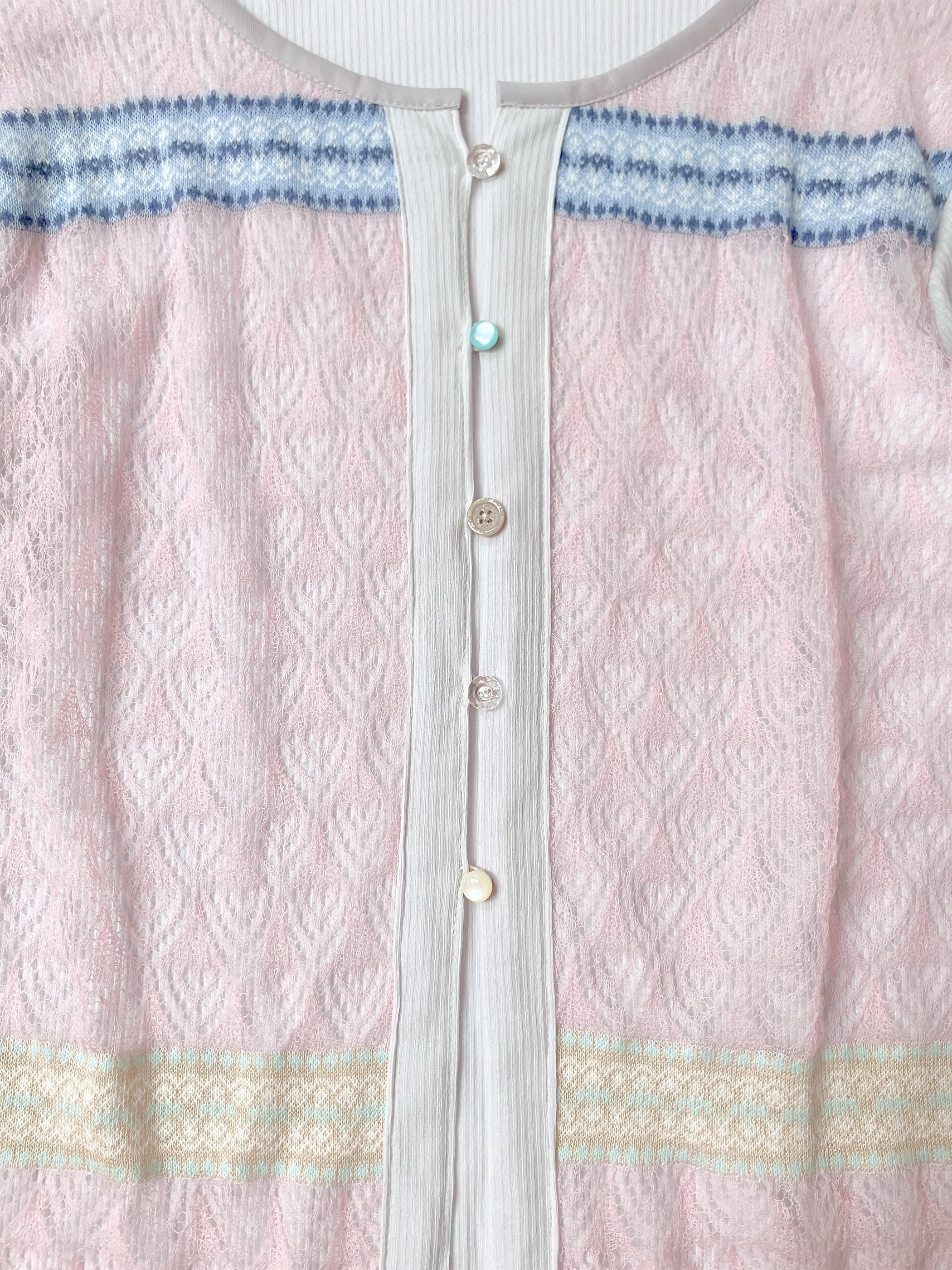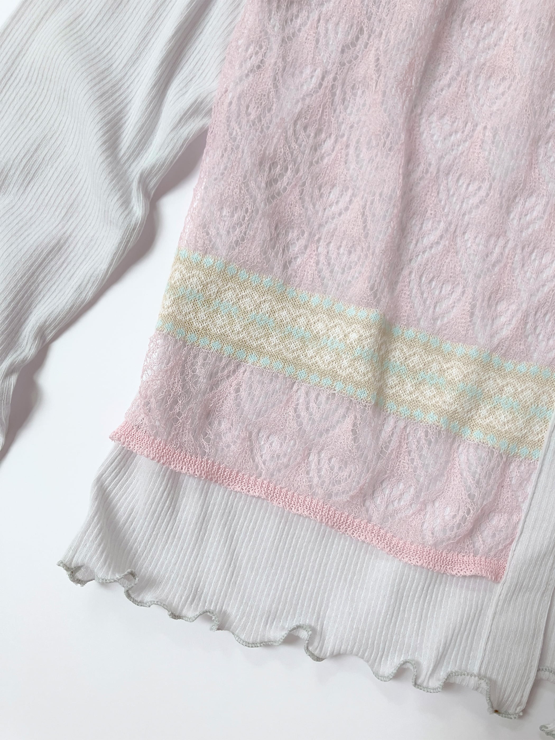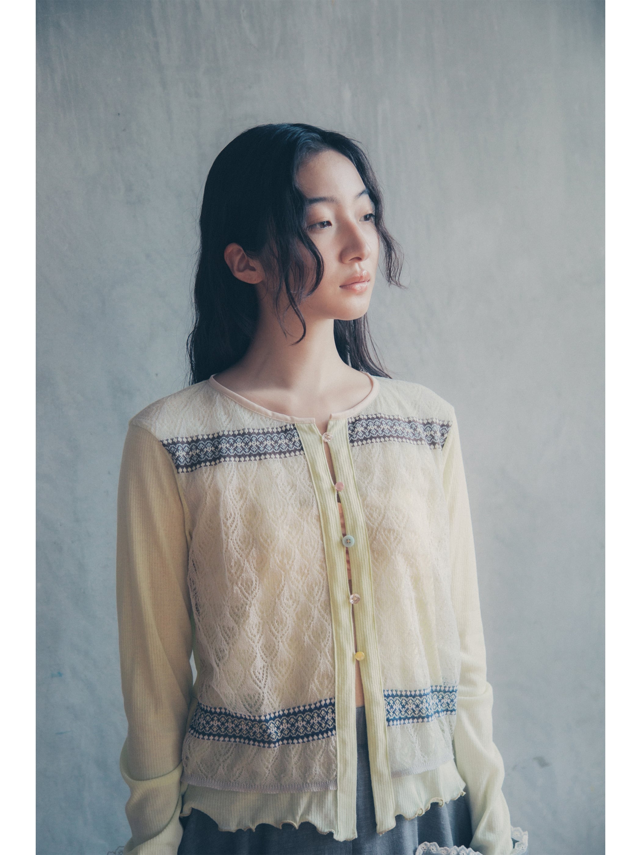 【受注】Vintage folk lace Sheer Rib Cardigan - PINK/YELLOW