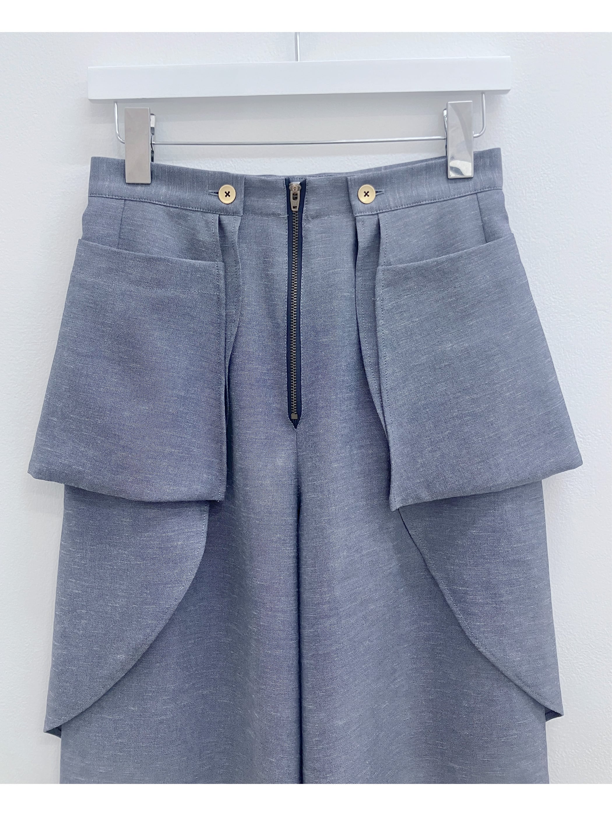 【受注】Wrap pockets Trousers - DENIM BLUE/BLACK