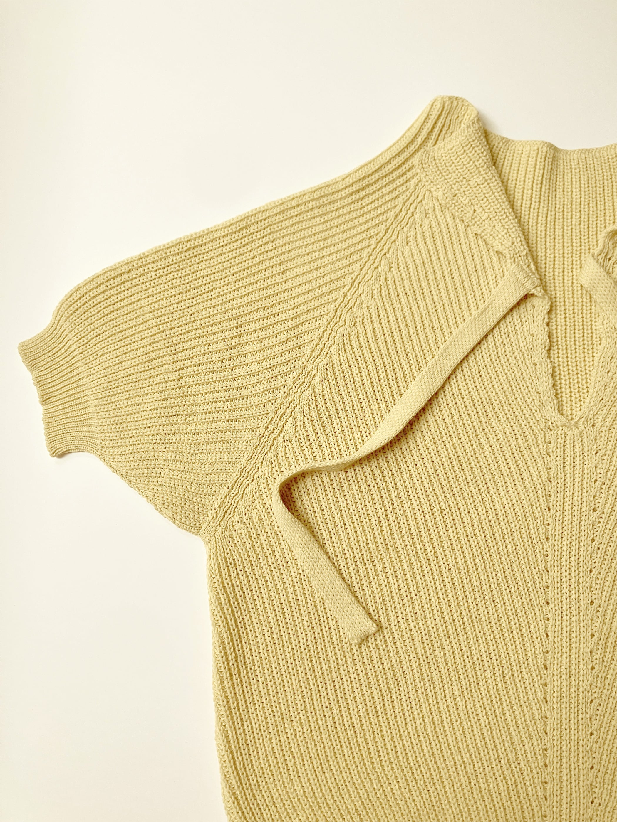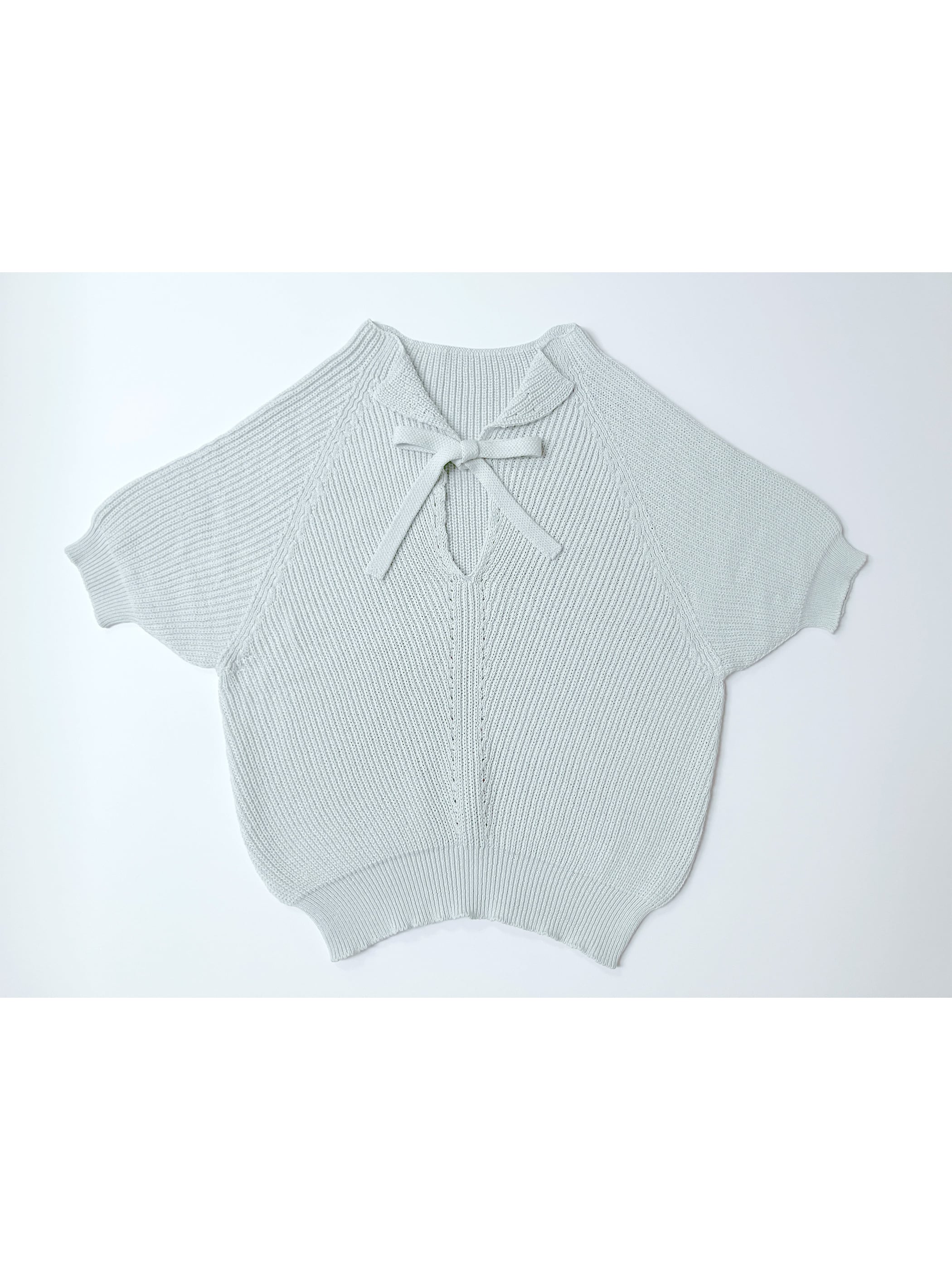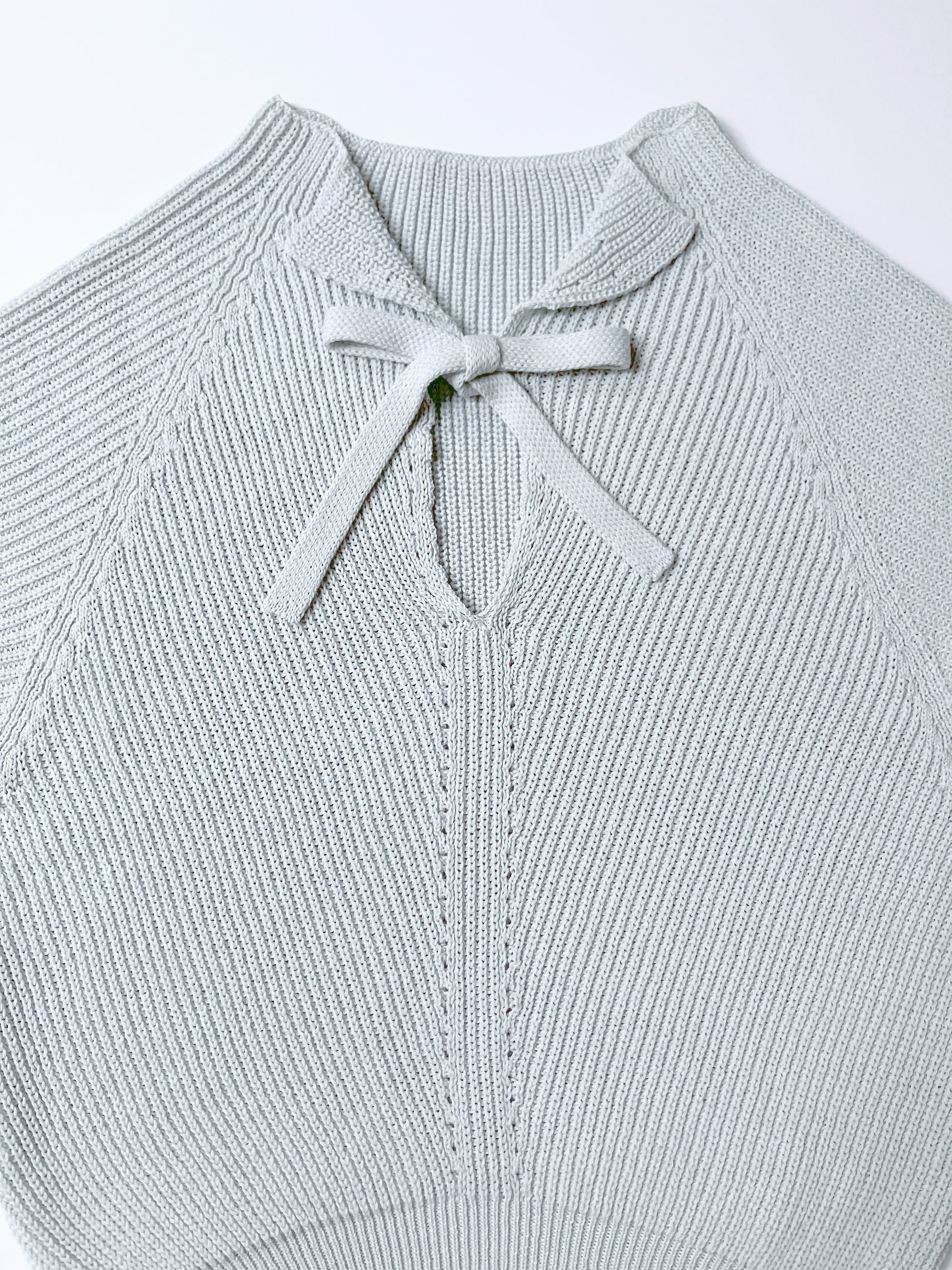 【受注】Whole-garment Bow-Tie Knit top - MISTY BLUE/YELLOW