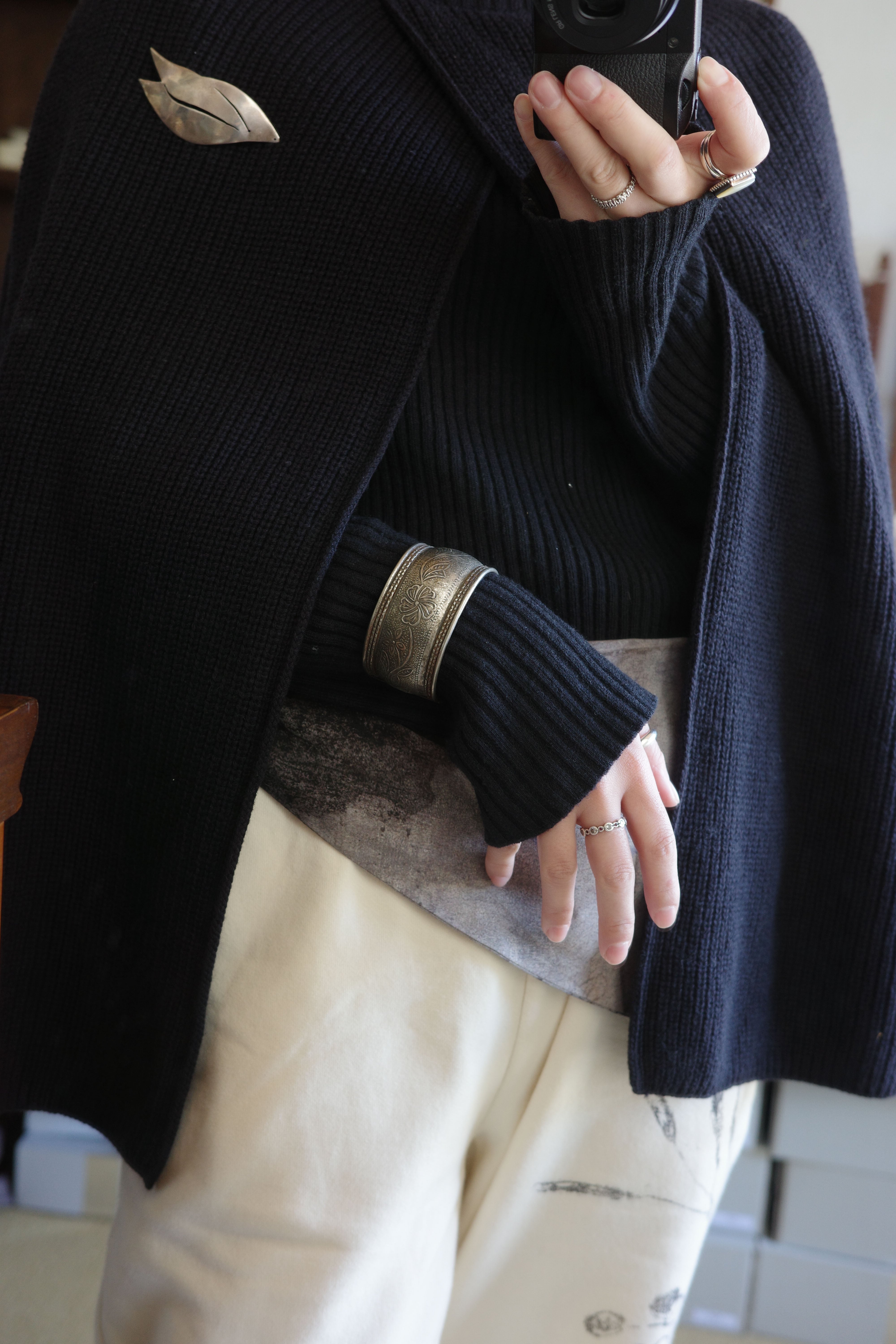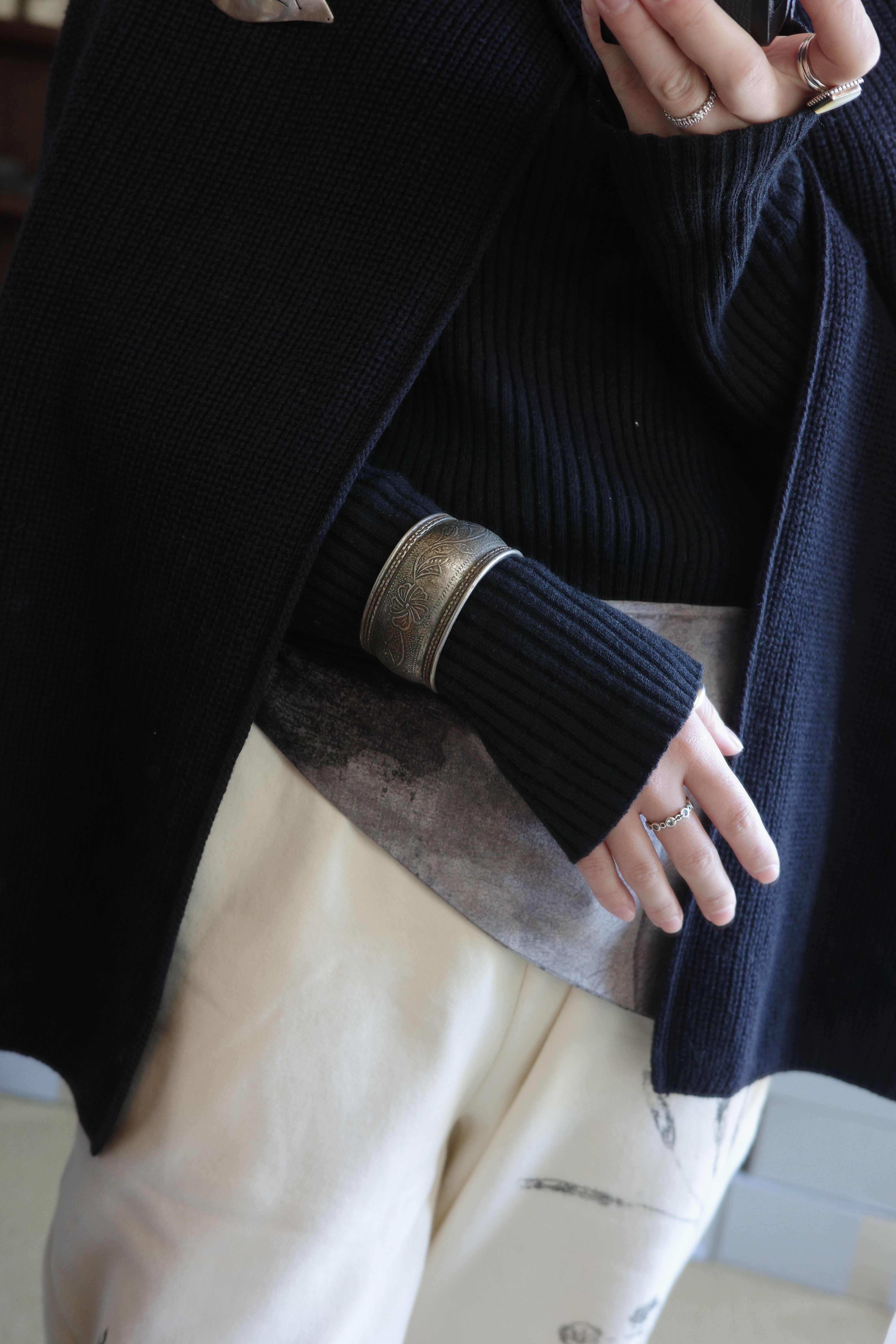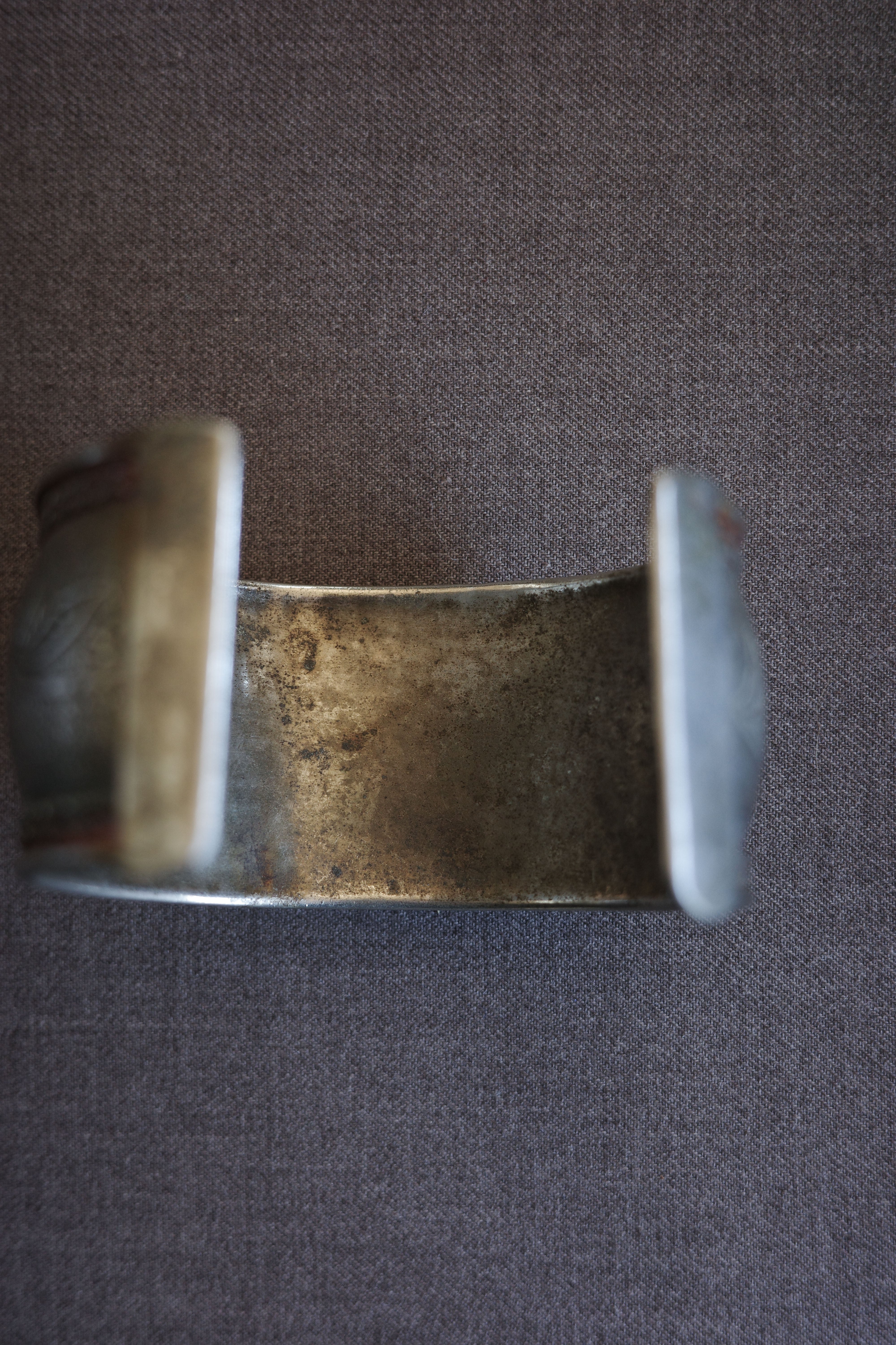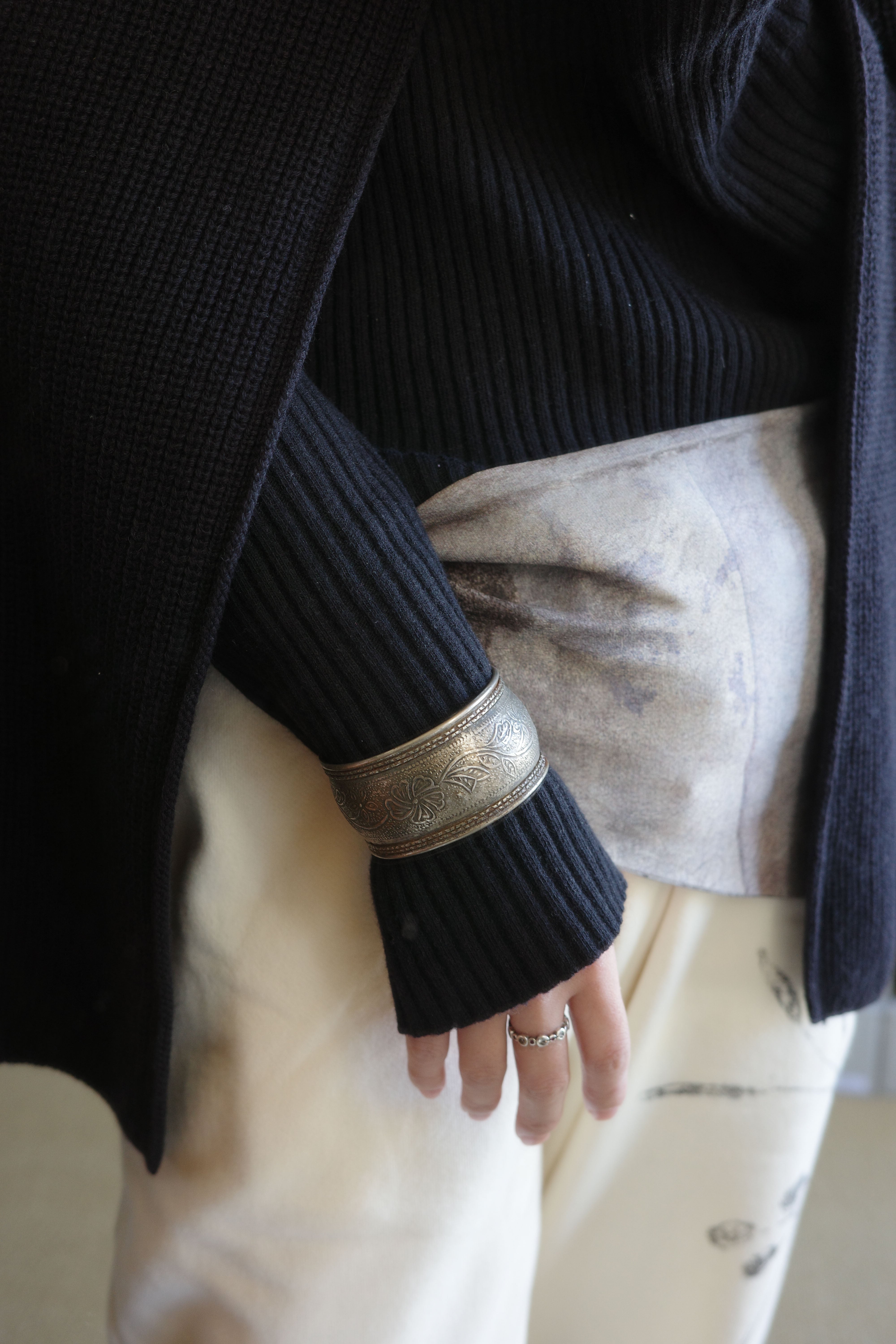 手仕事の温度がそのまま宿った、ヴィンテージのワイドシルバーバングル。