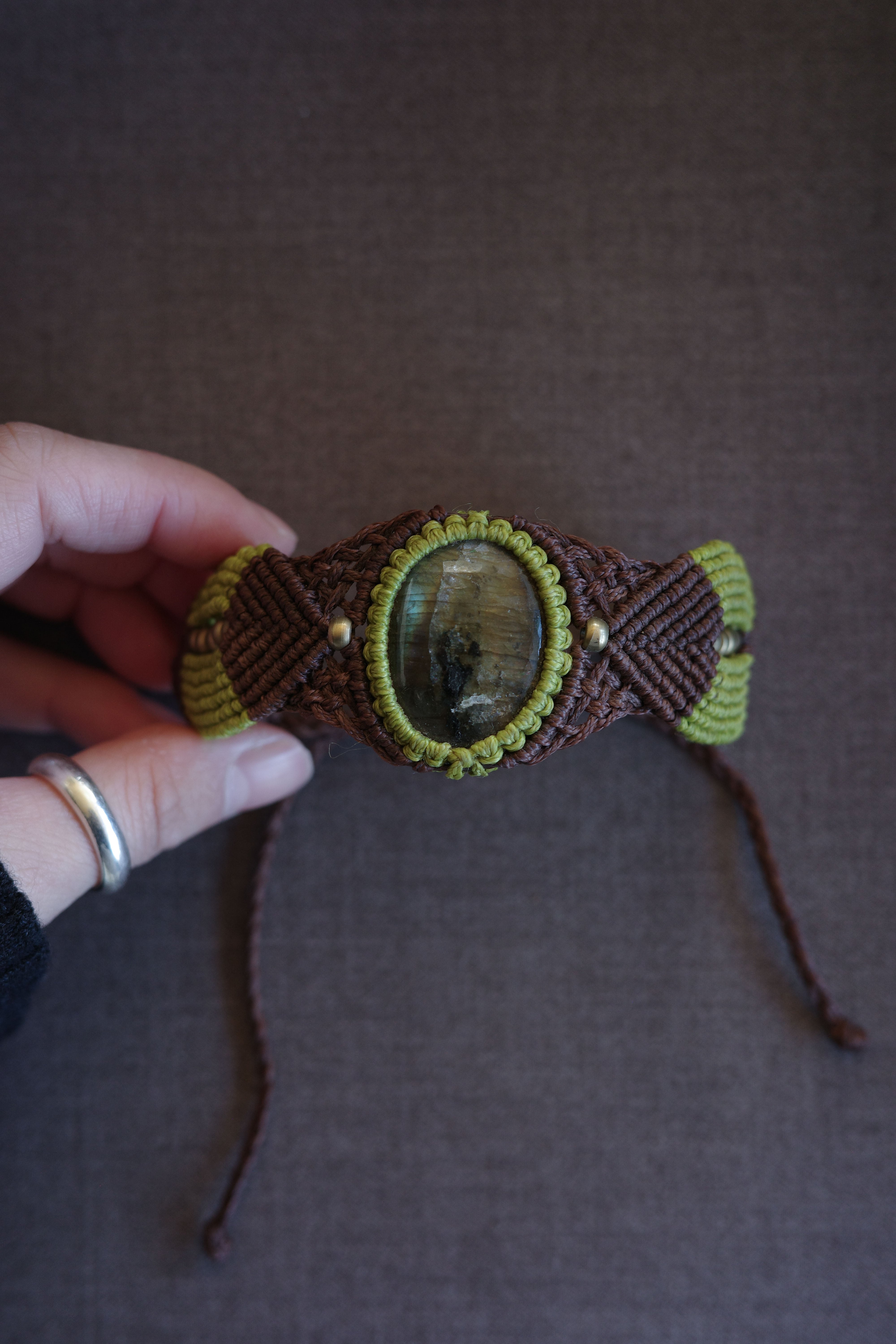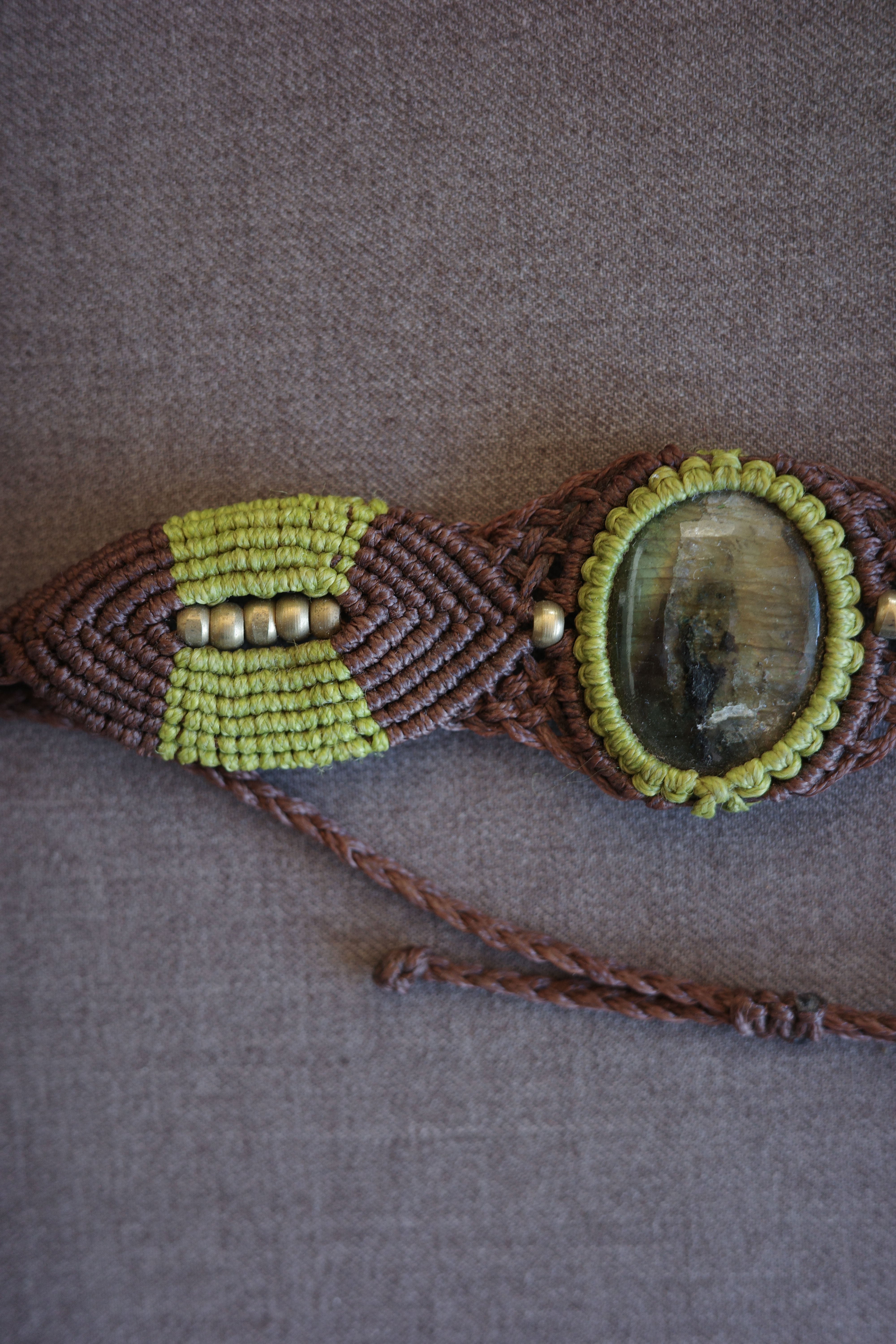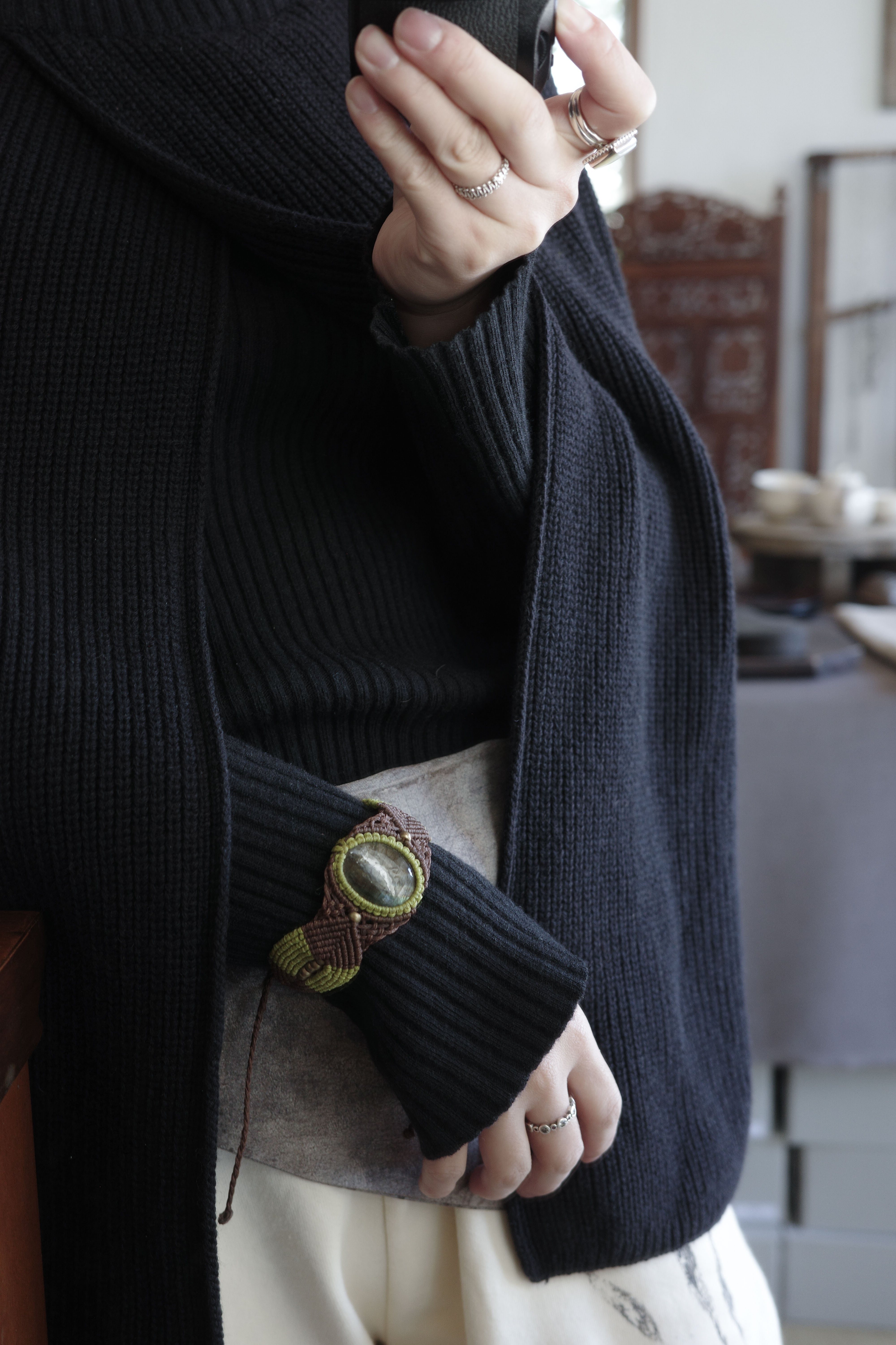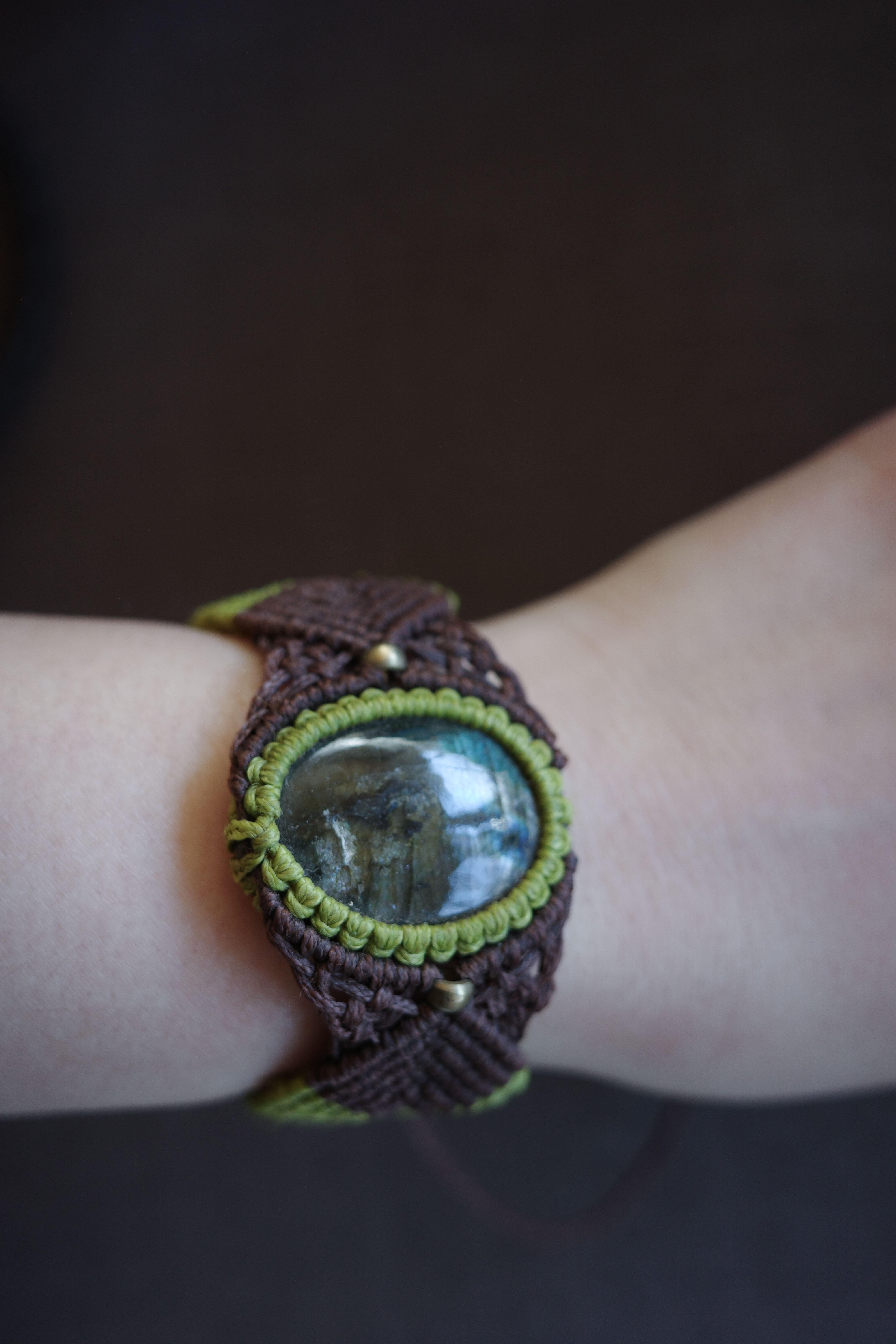 蝋引きのワックスコードを使用した、天然石のブレスレット。
