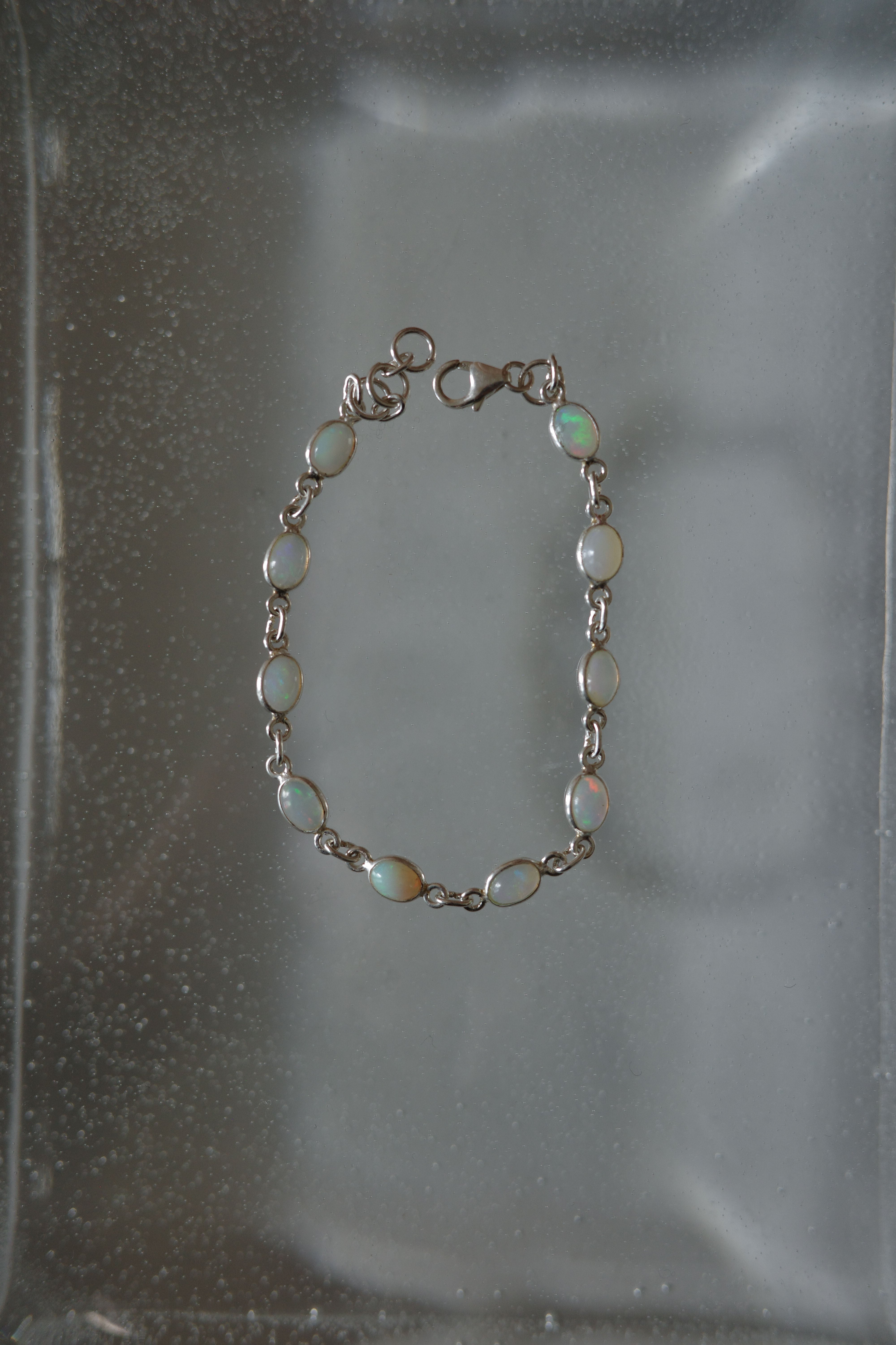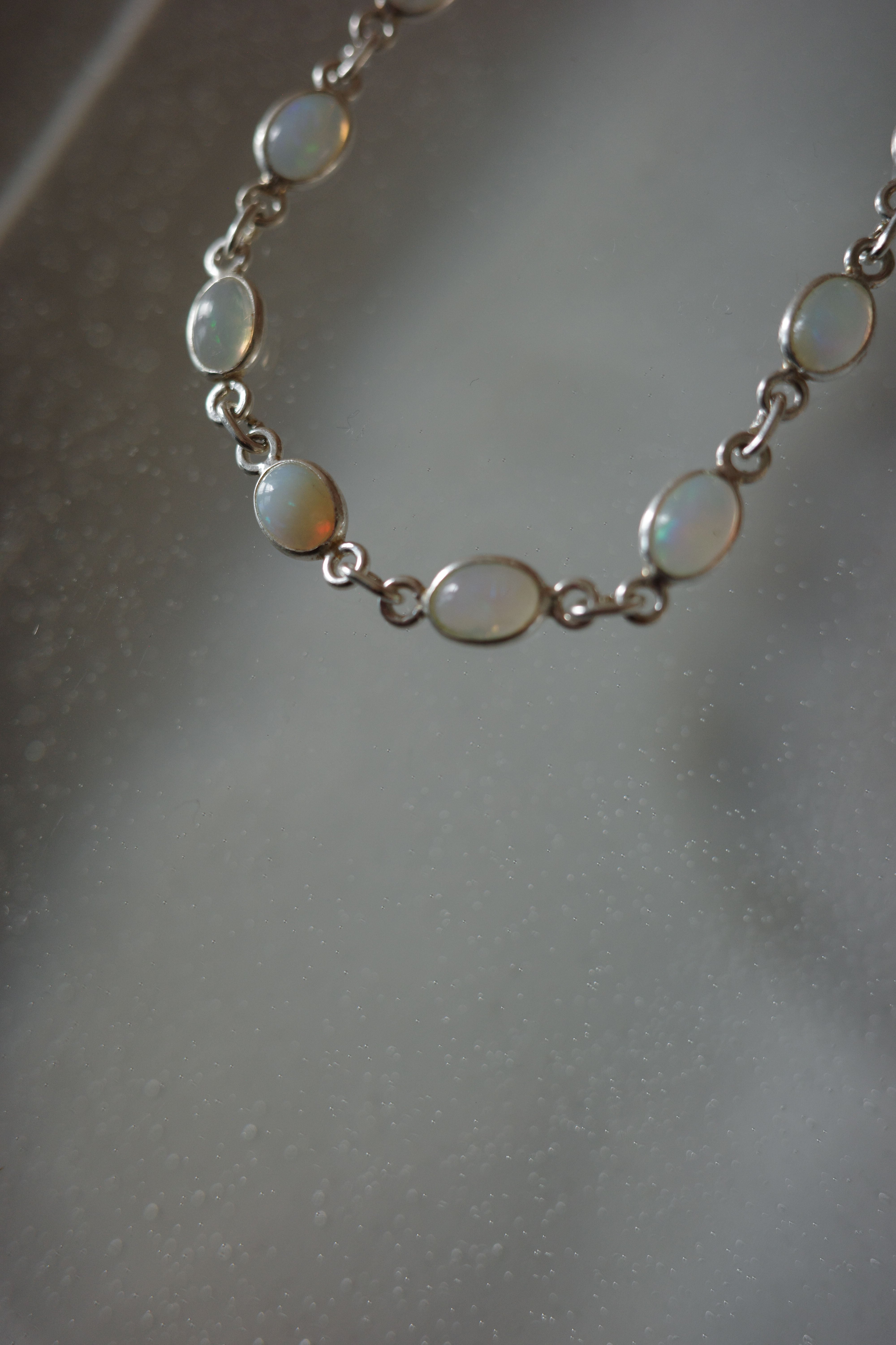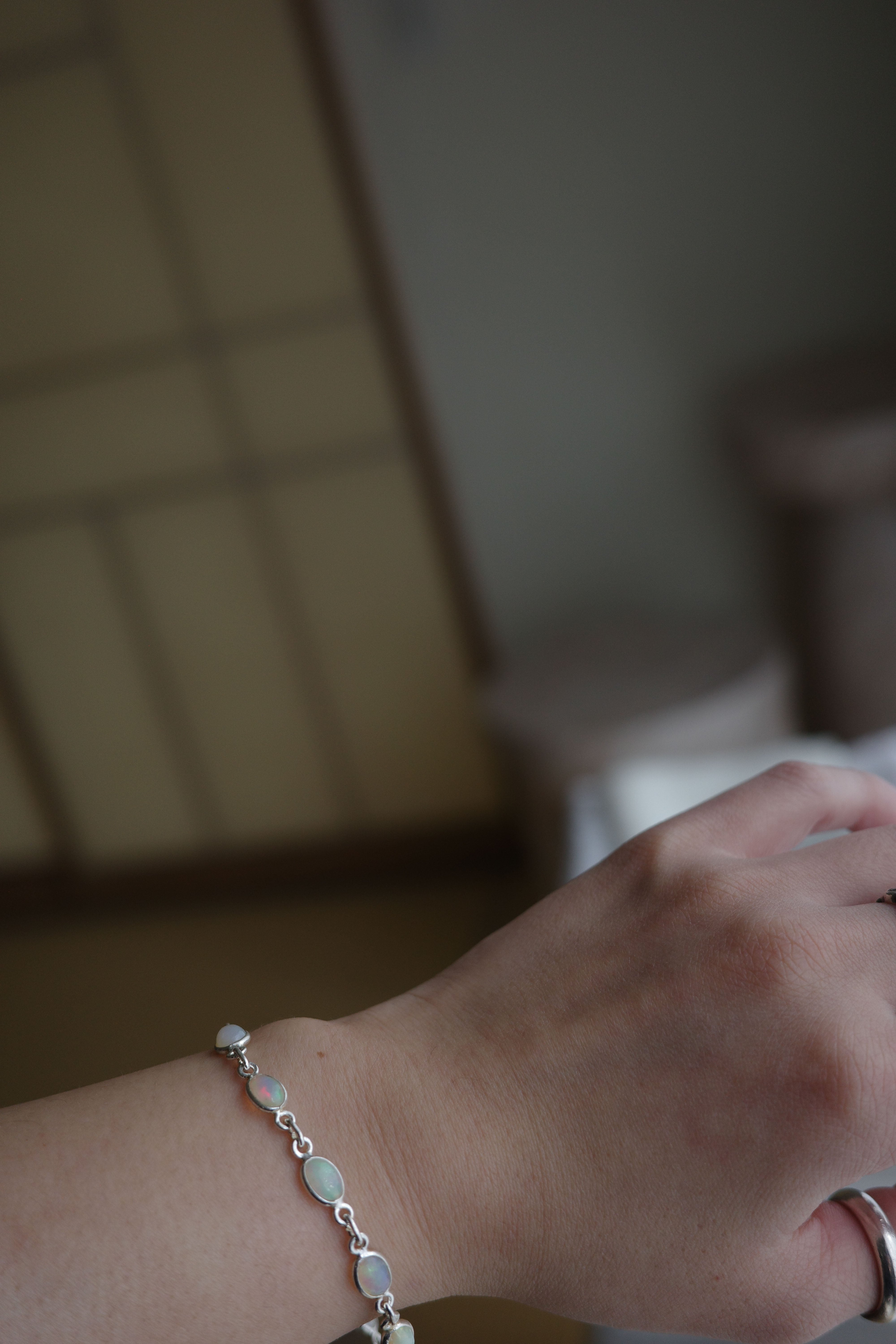 オパール特有の“遊色”が、静かに、でも確かな存在感で手元を照らすブレスレットです。
