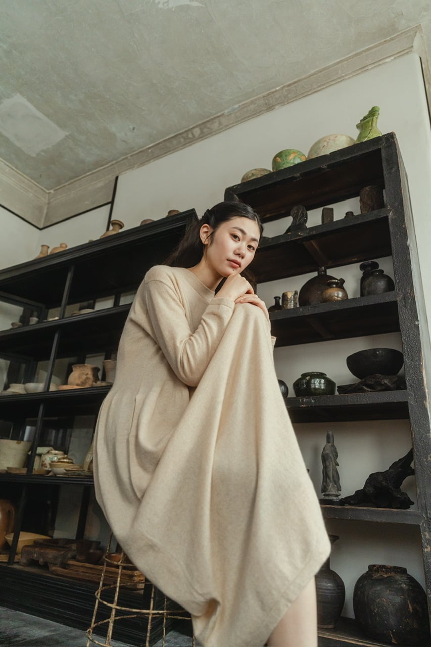 ほどよく身体に沿いながらゆったりと着られるニットワンピース。
