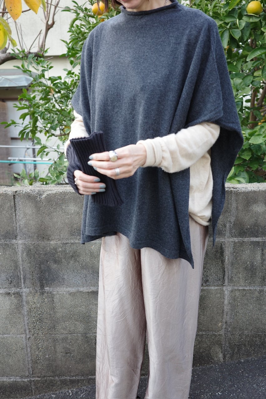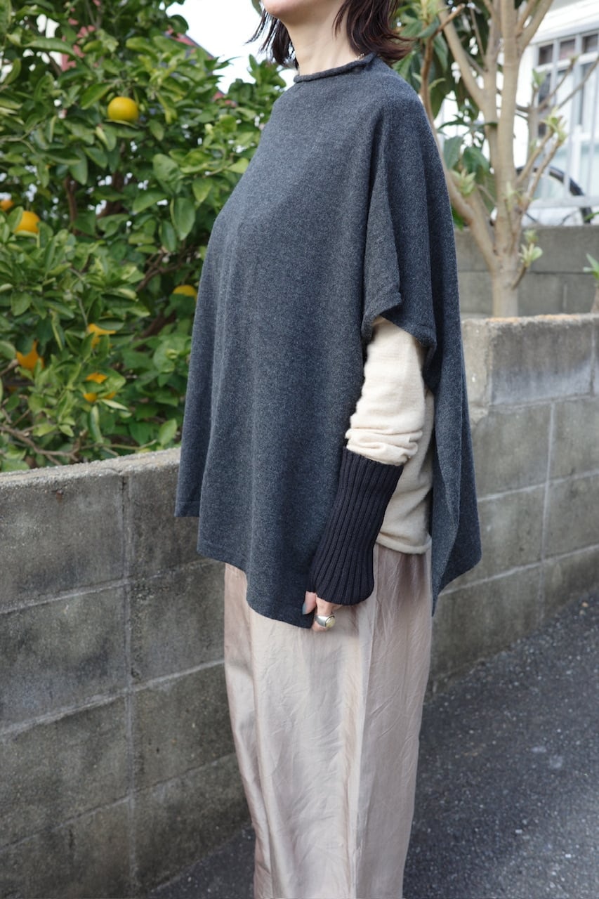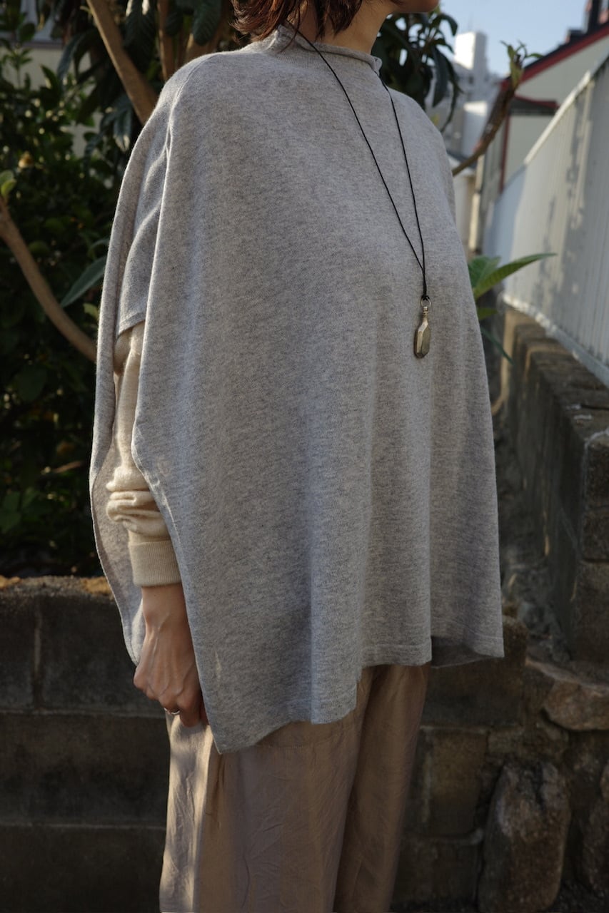 肩にそっと落ちる布のように、静かな存在感をもたらすニットのケープマント。