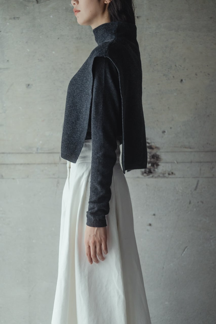 肩にそっと落ちる布のように、静かな存在感をもたらすニットのケープマント。