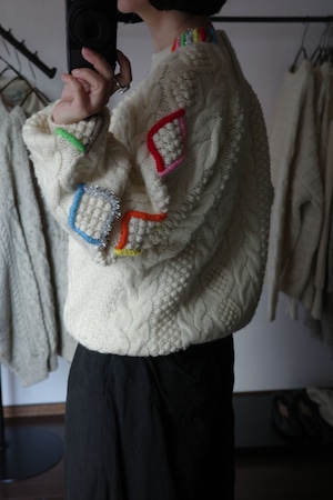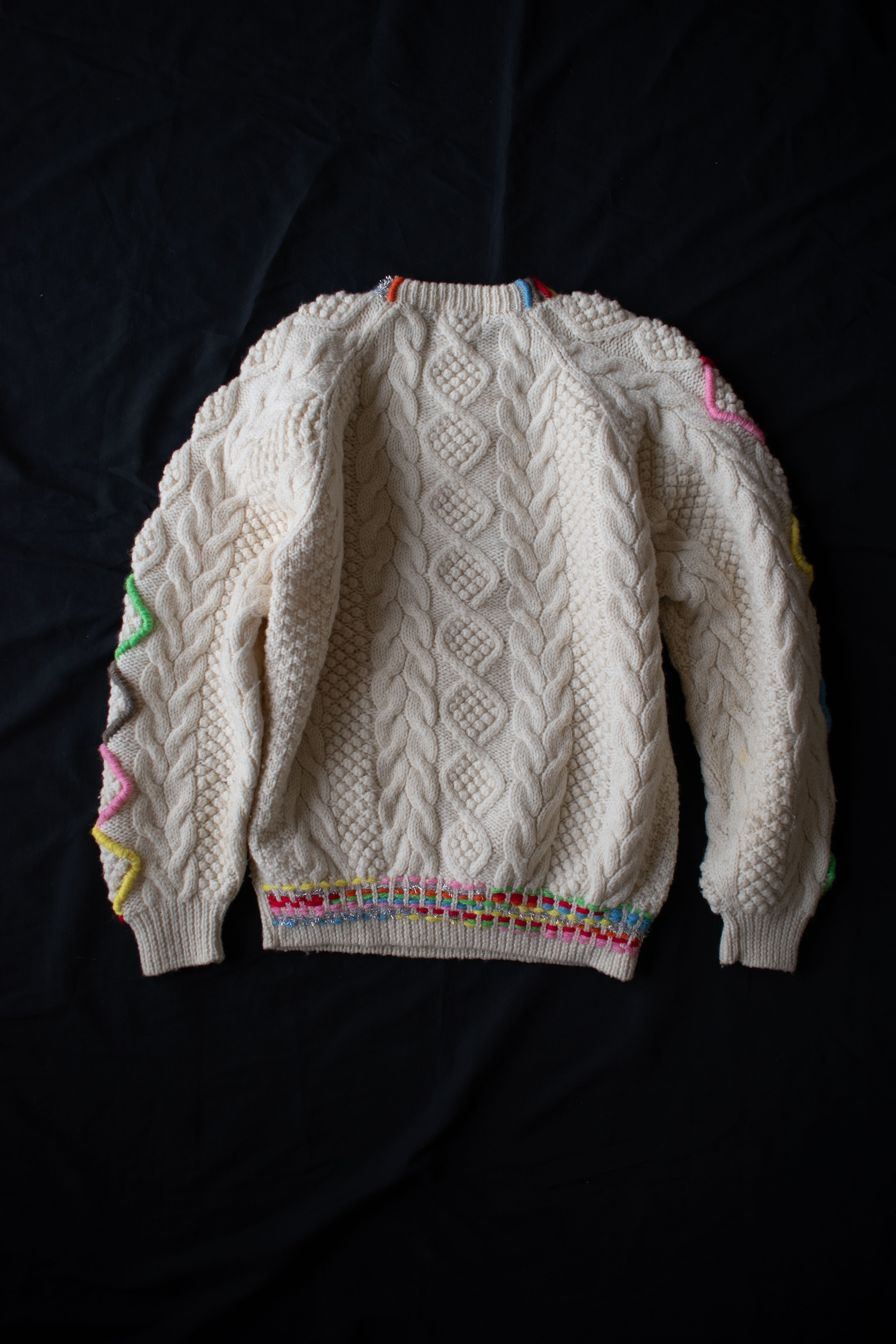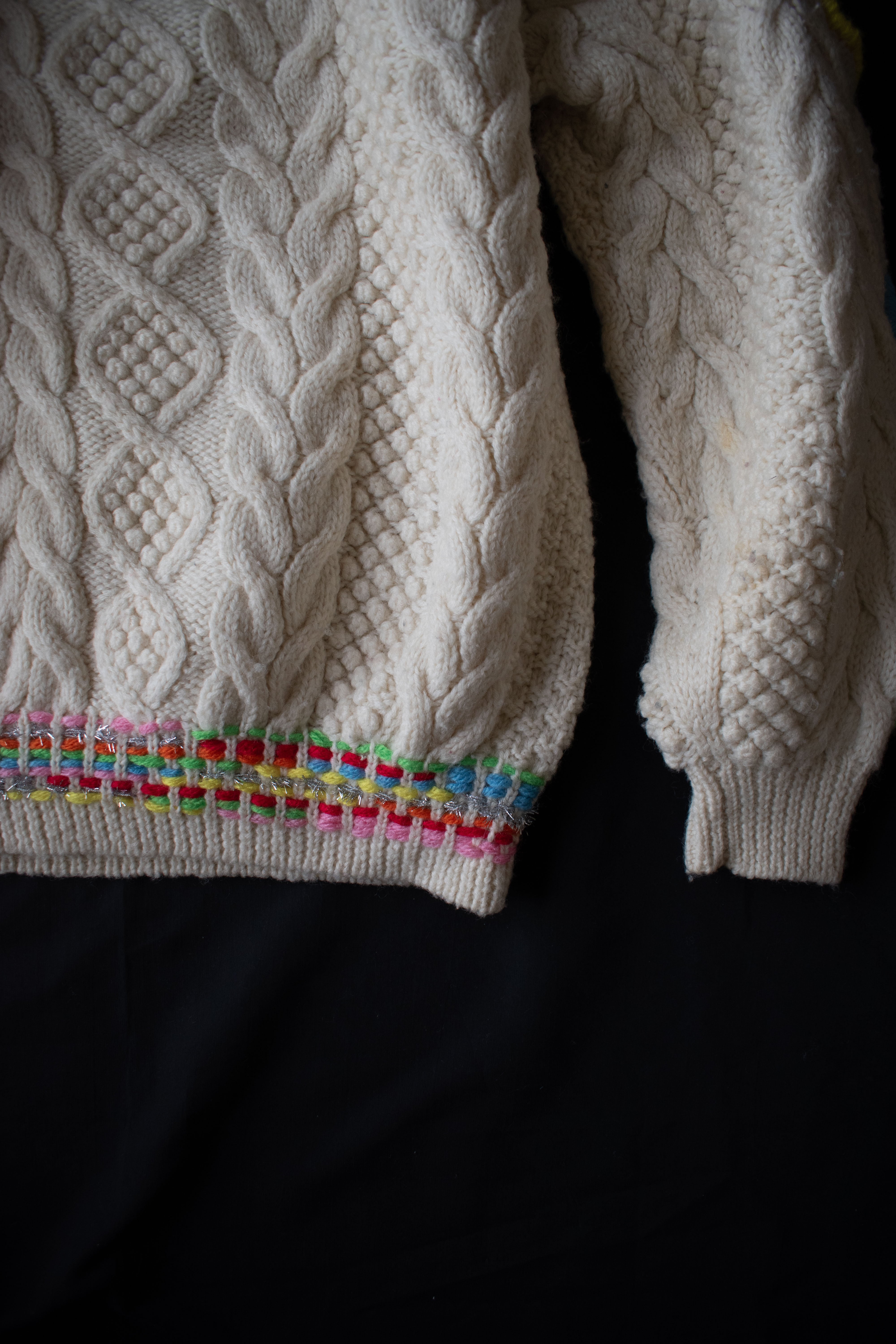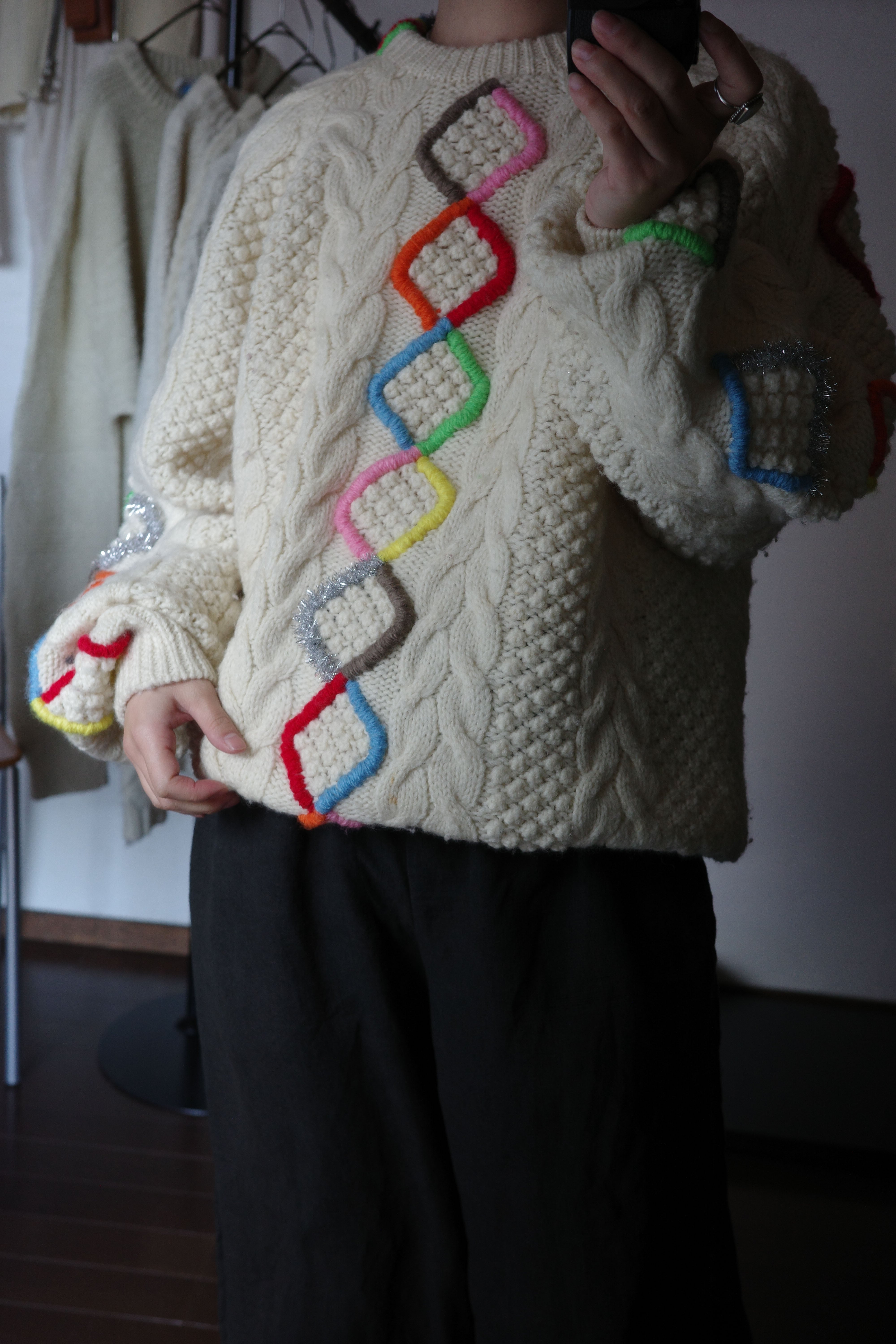 フィッシャーマンニットにひと針ずつハンドステッチを加えた