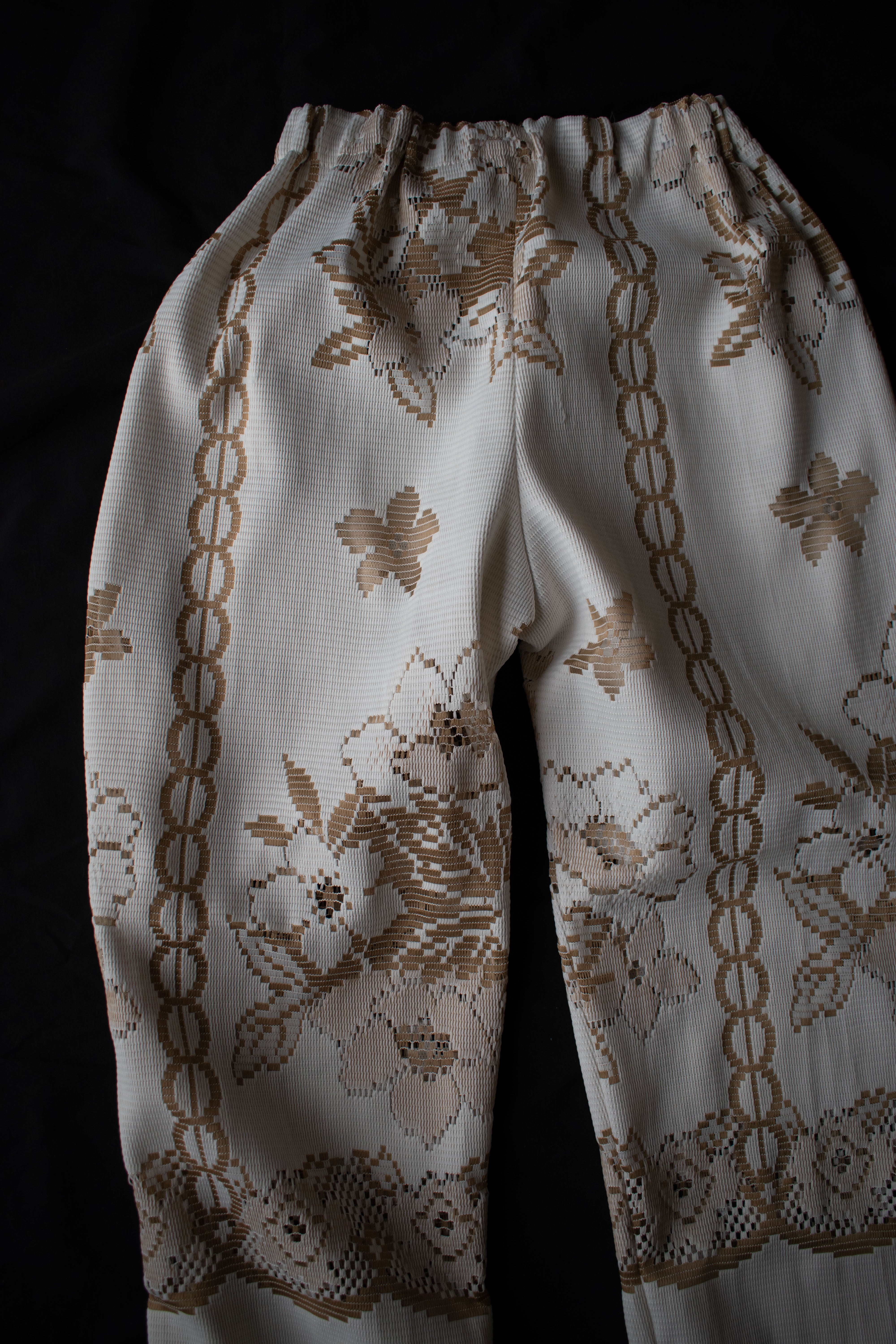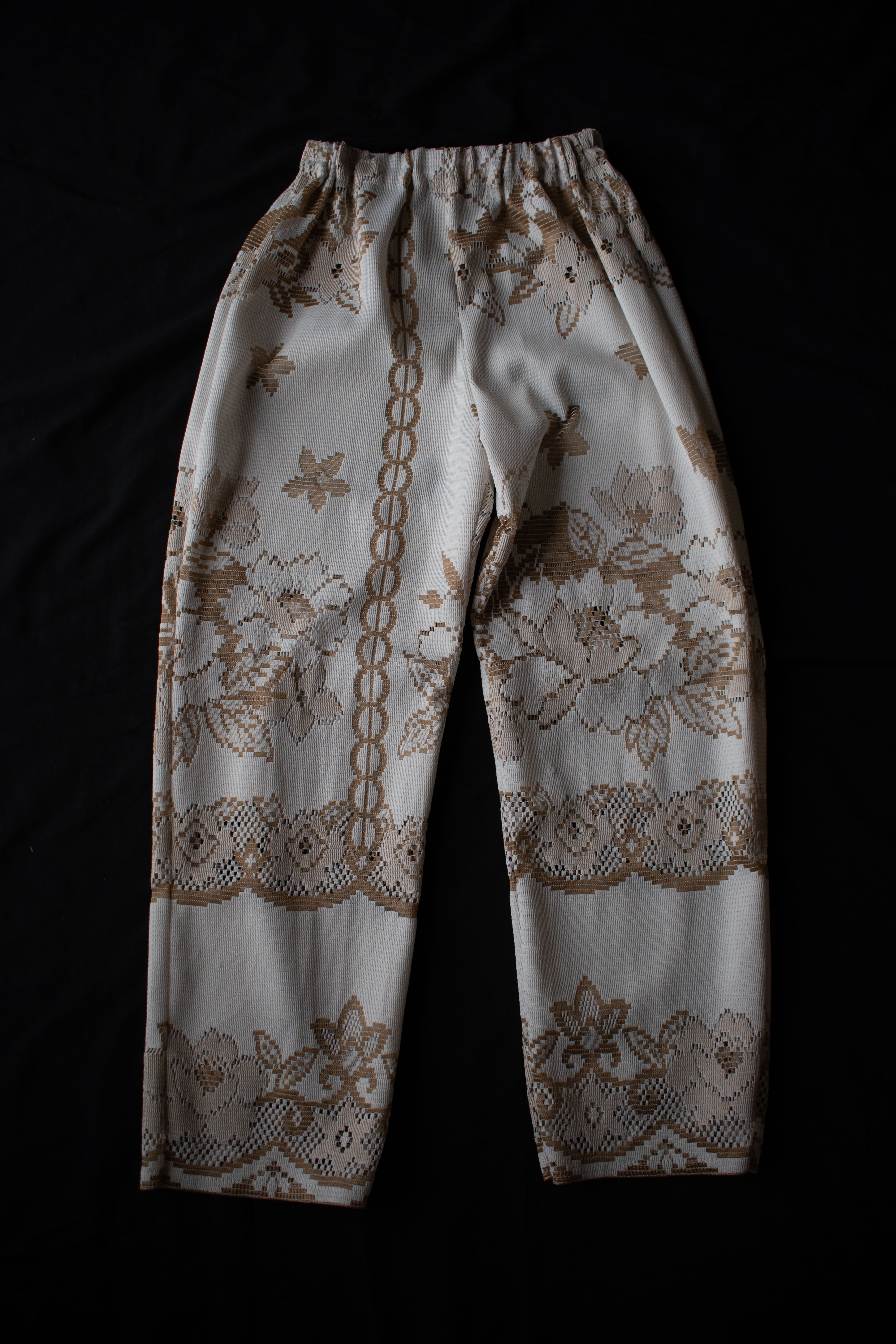 今回は、ヴィンテージのパッチワークキルトを仕立て直したパンツや、