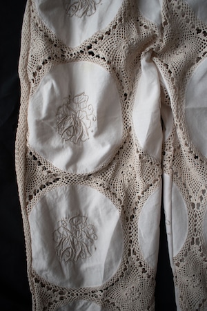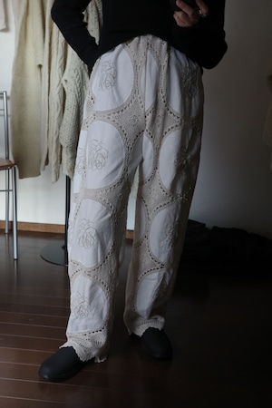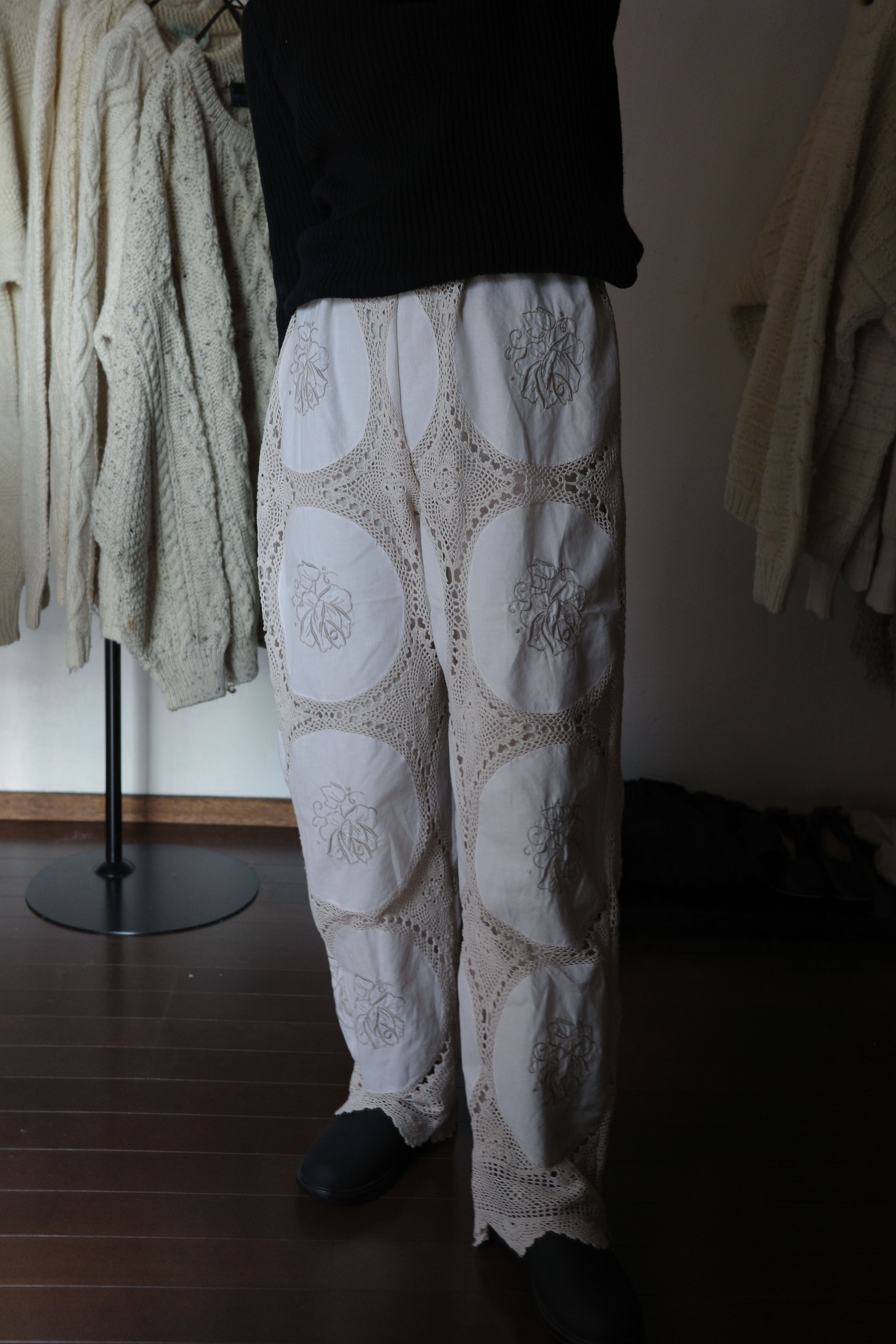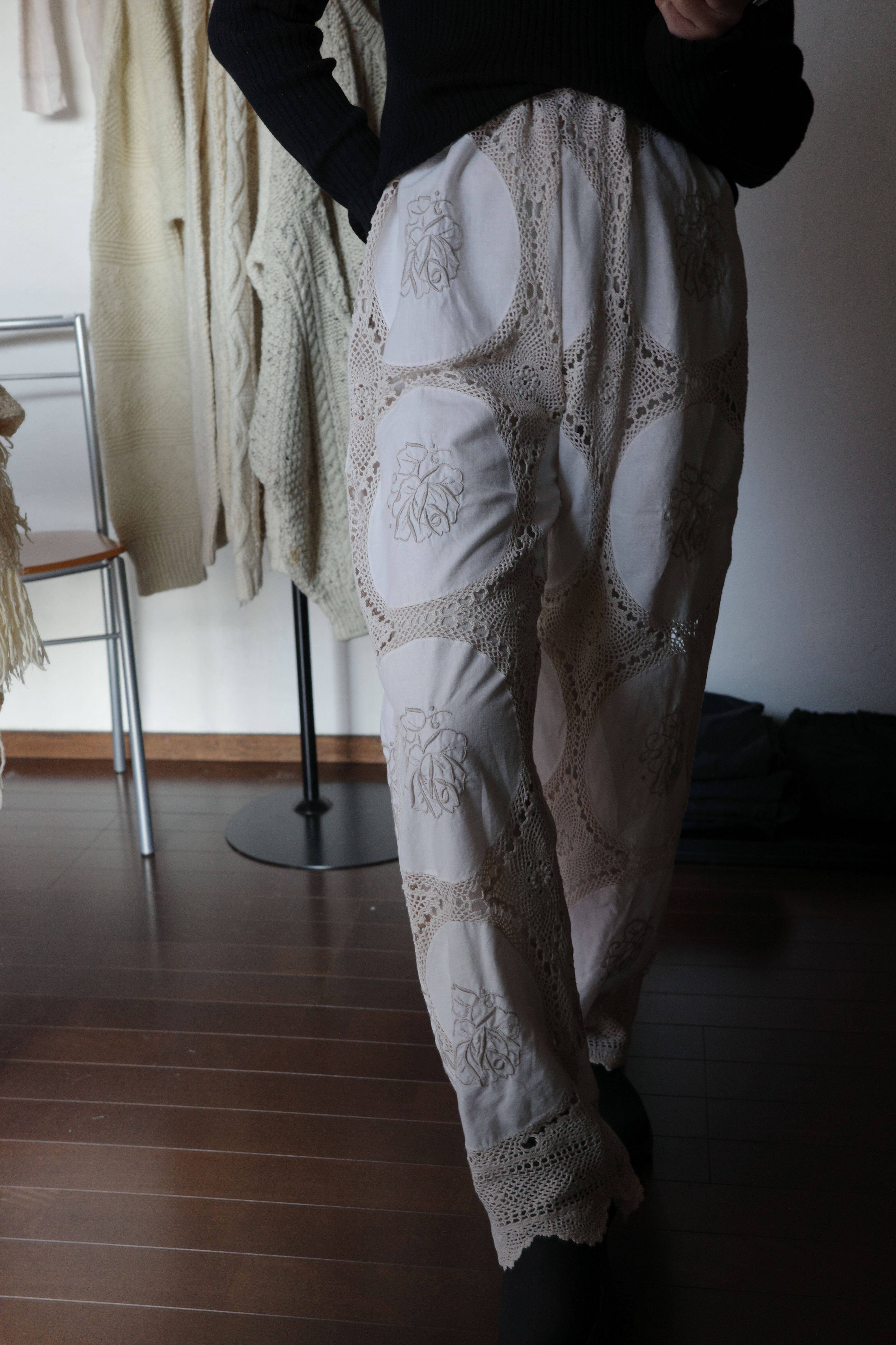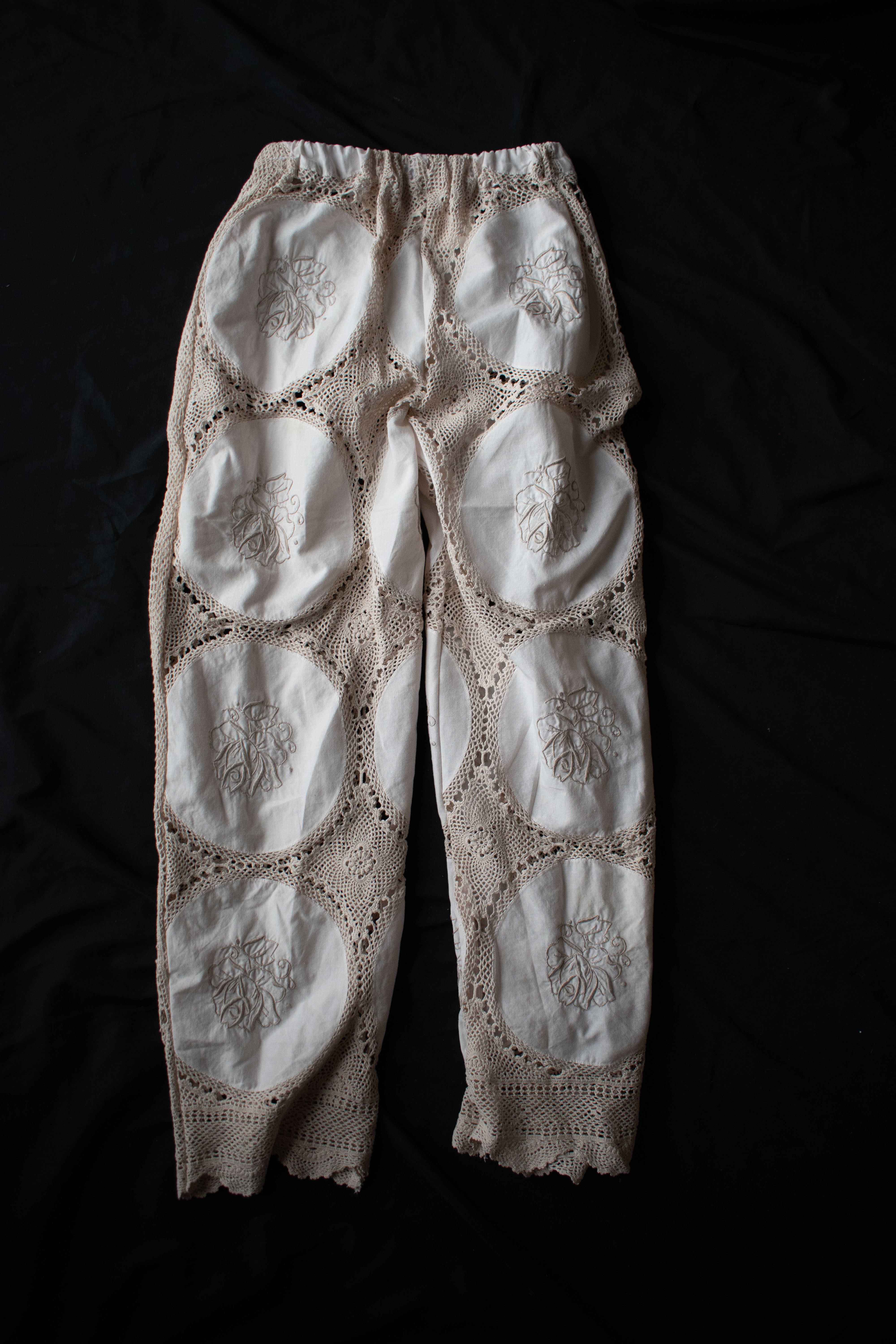 今回は、ヴィンテージのパッチワークキルトを仕立て直したパンツや、