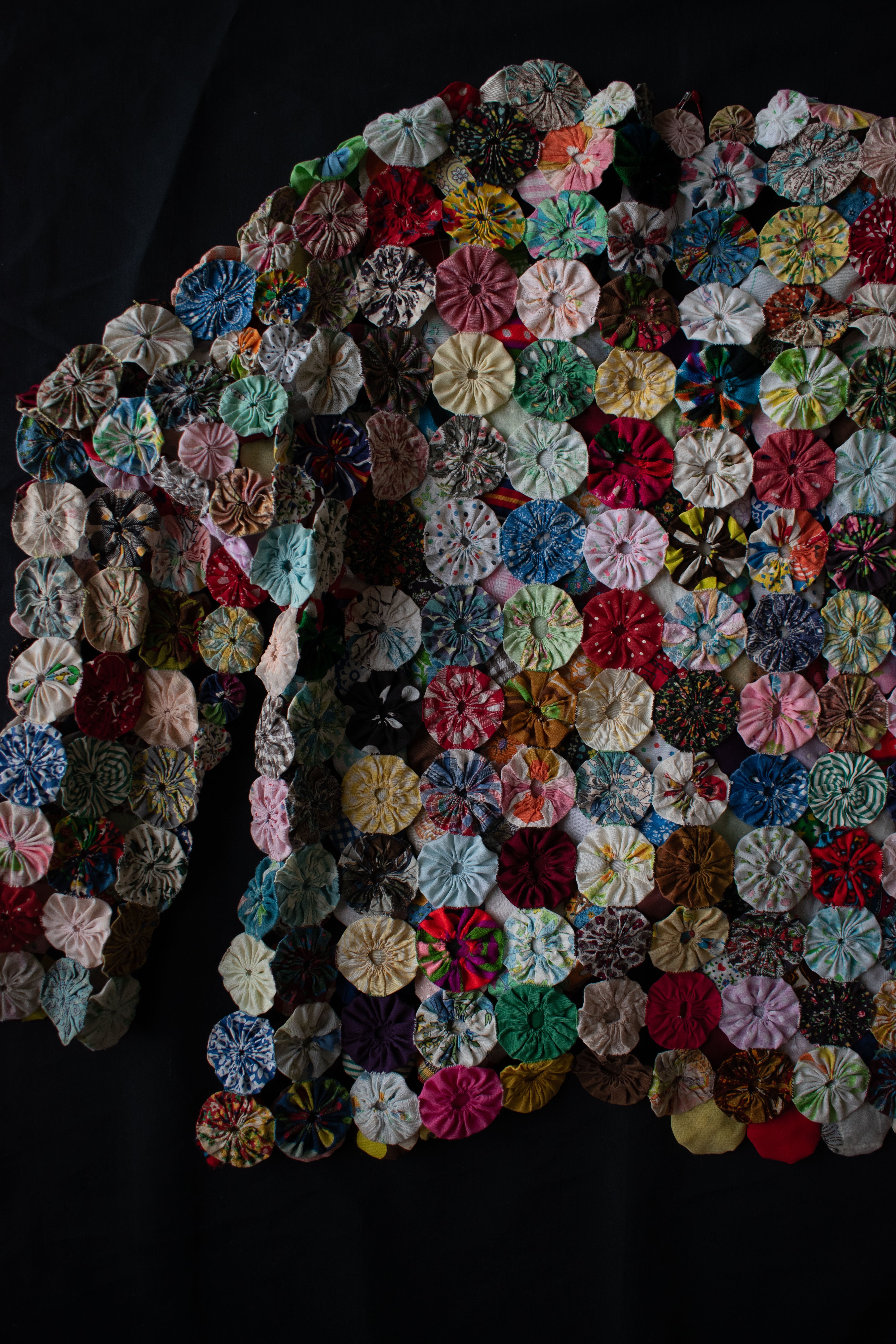 今回は、ヴィンテージのパッチワークキルトを仕立て直したパンツや、