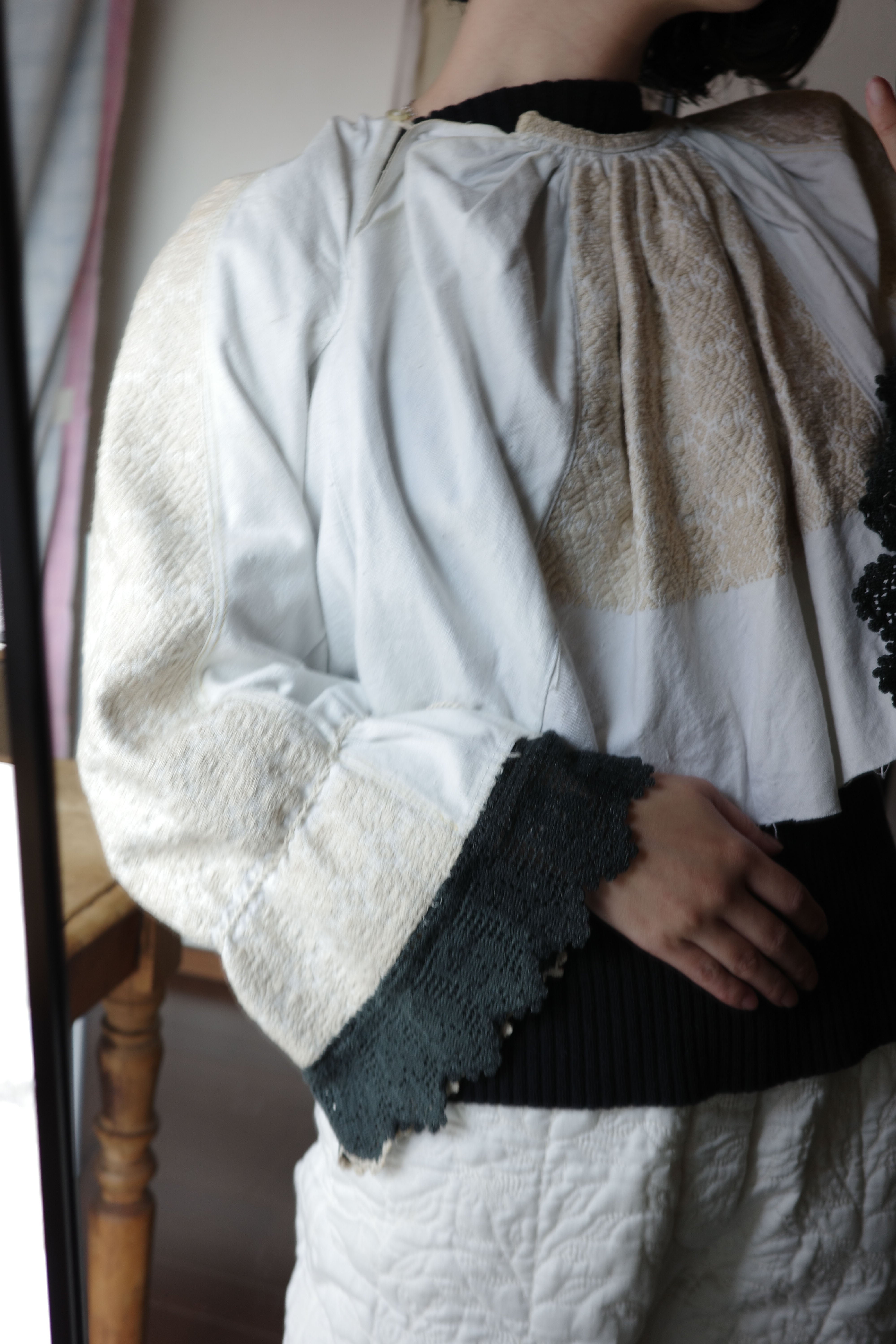 今回は、ヴィンテージのパッチワークキルトを仕立て直したパンツや、