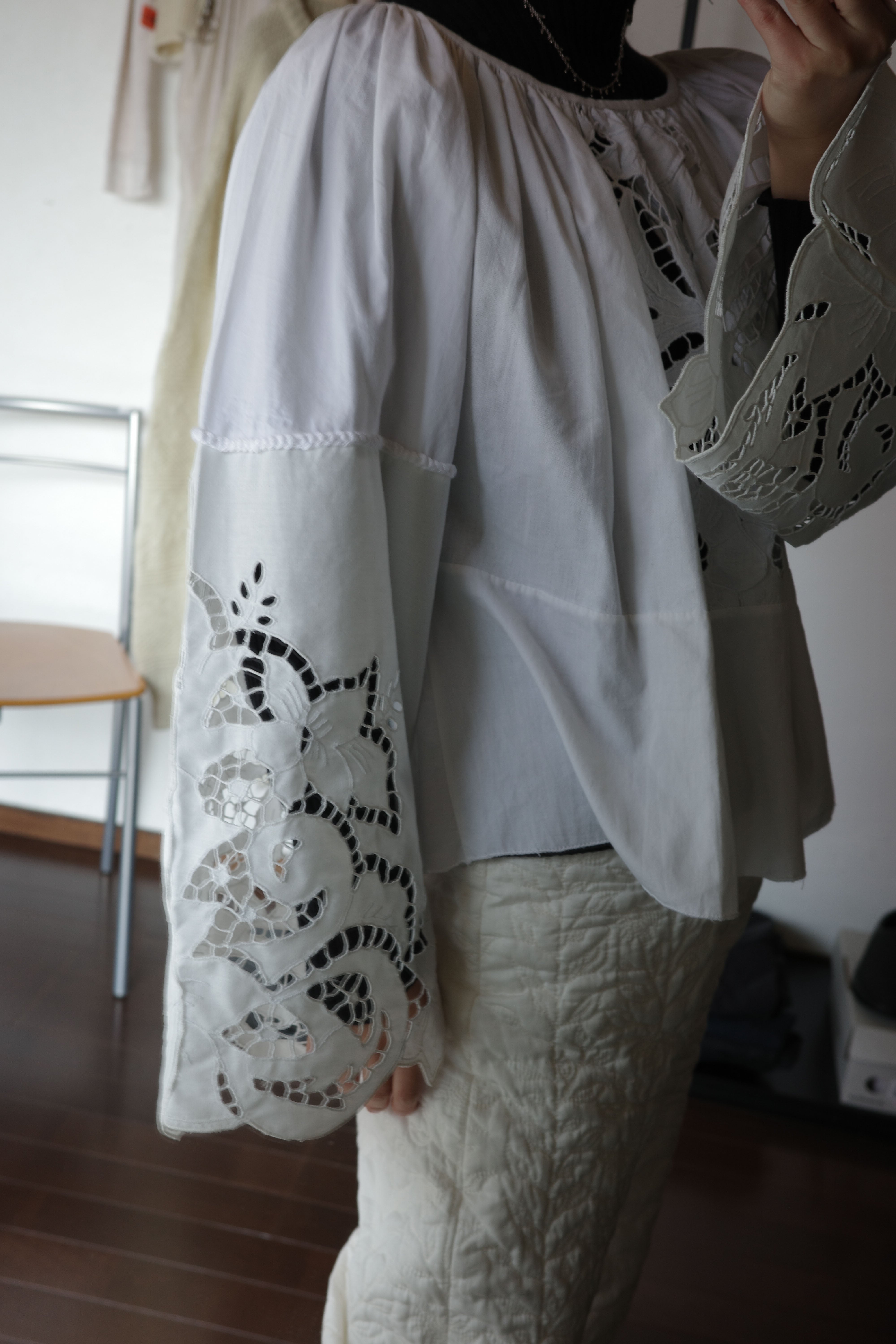 今回は、ヴィンテージのパッチワークキルトを仕立て直したパンツや、