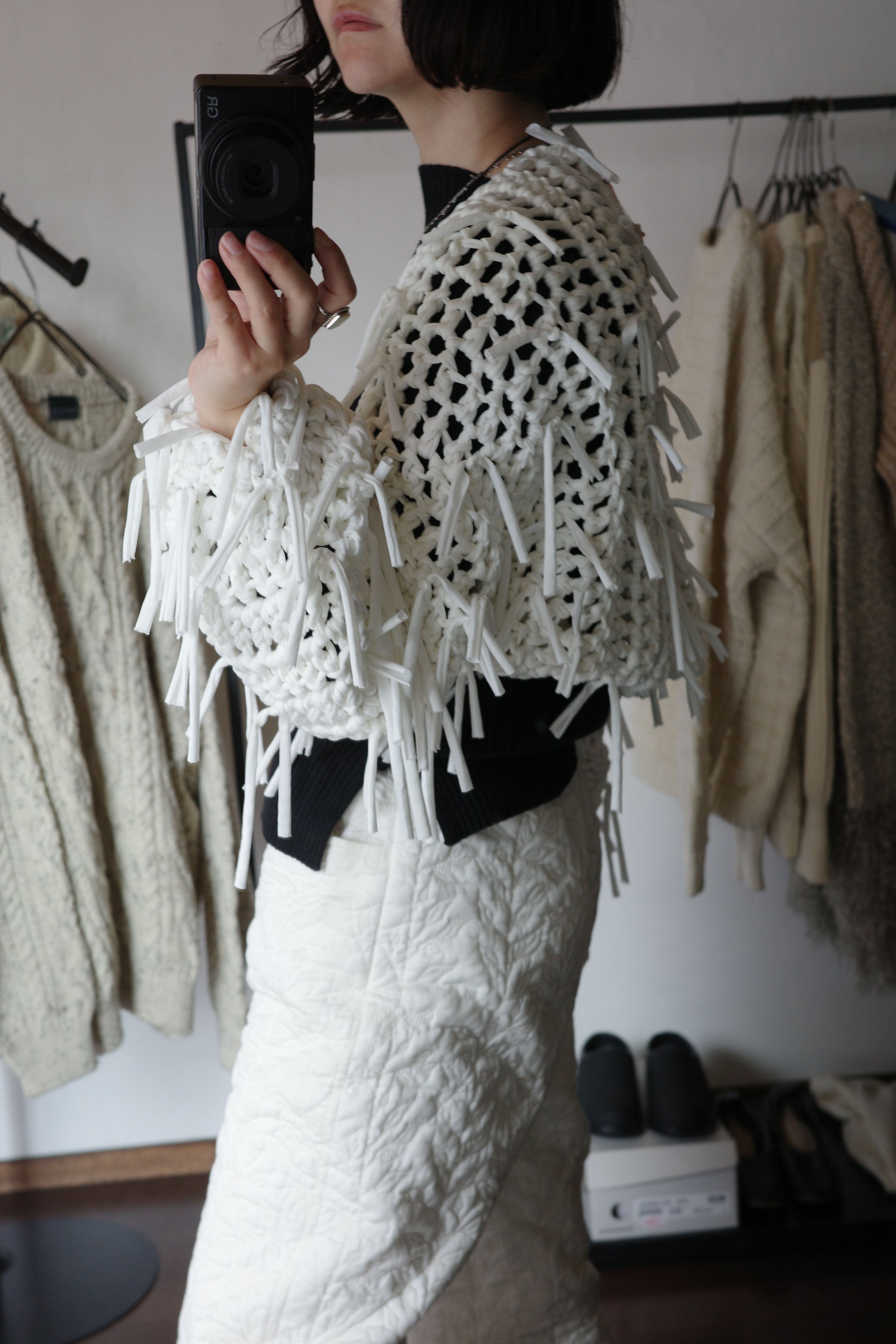 フィッシャーマンニットにひと針ずつハンドステッチを加えた