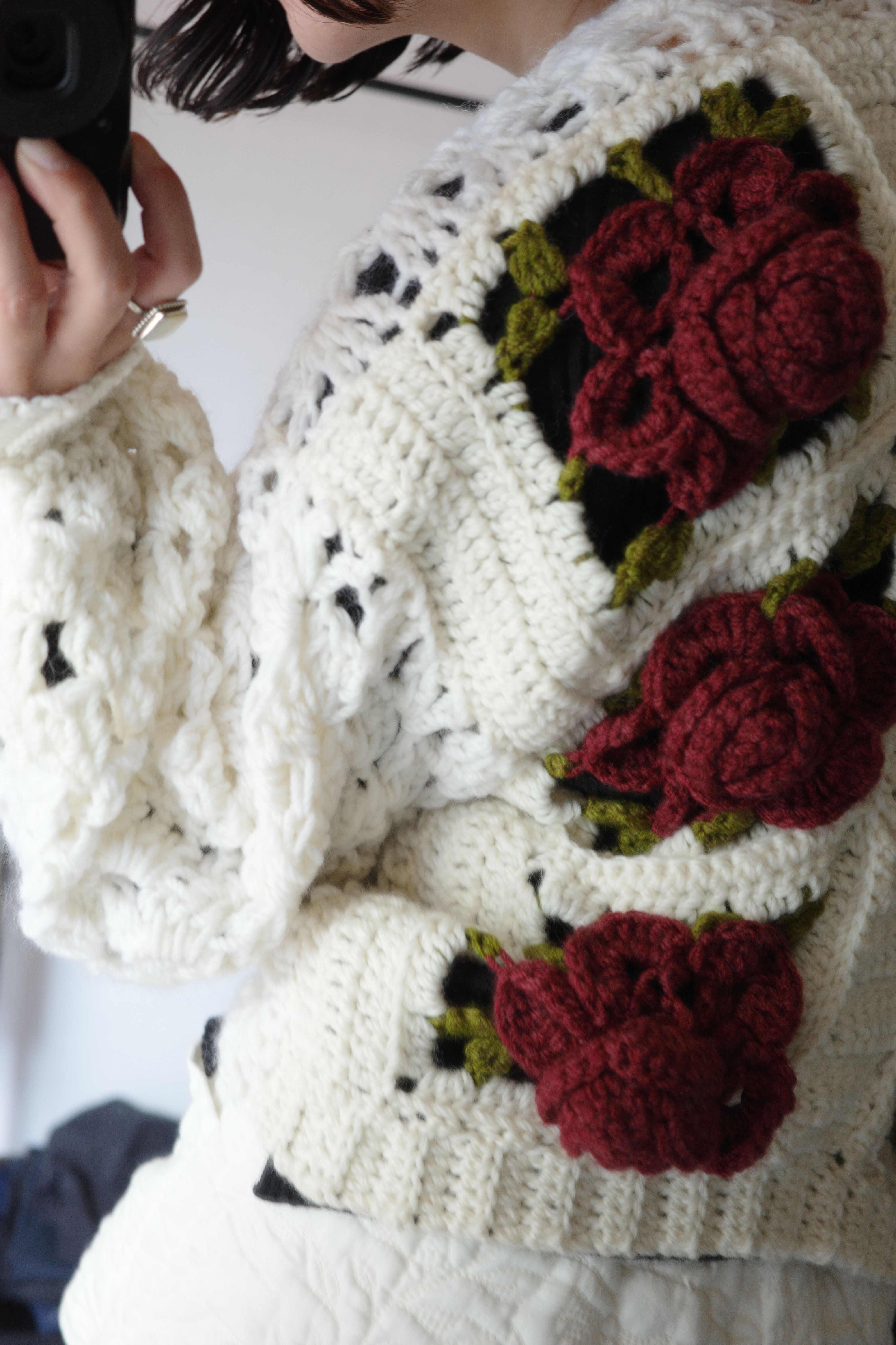 フィッシャーマンニットにひと針ずつハンドステッチを加えた