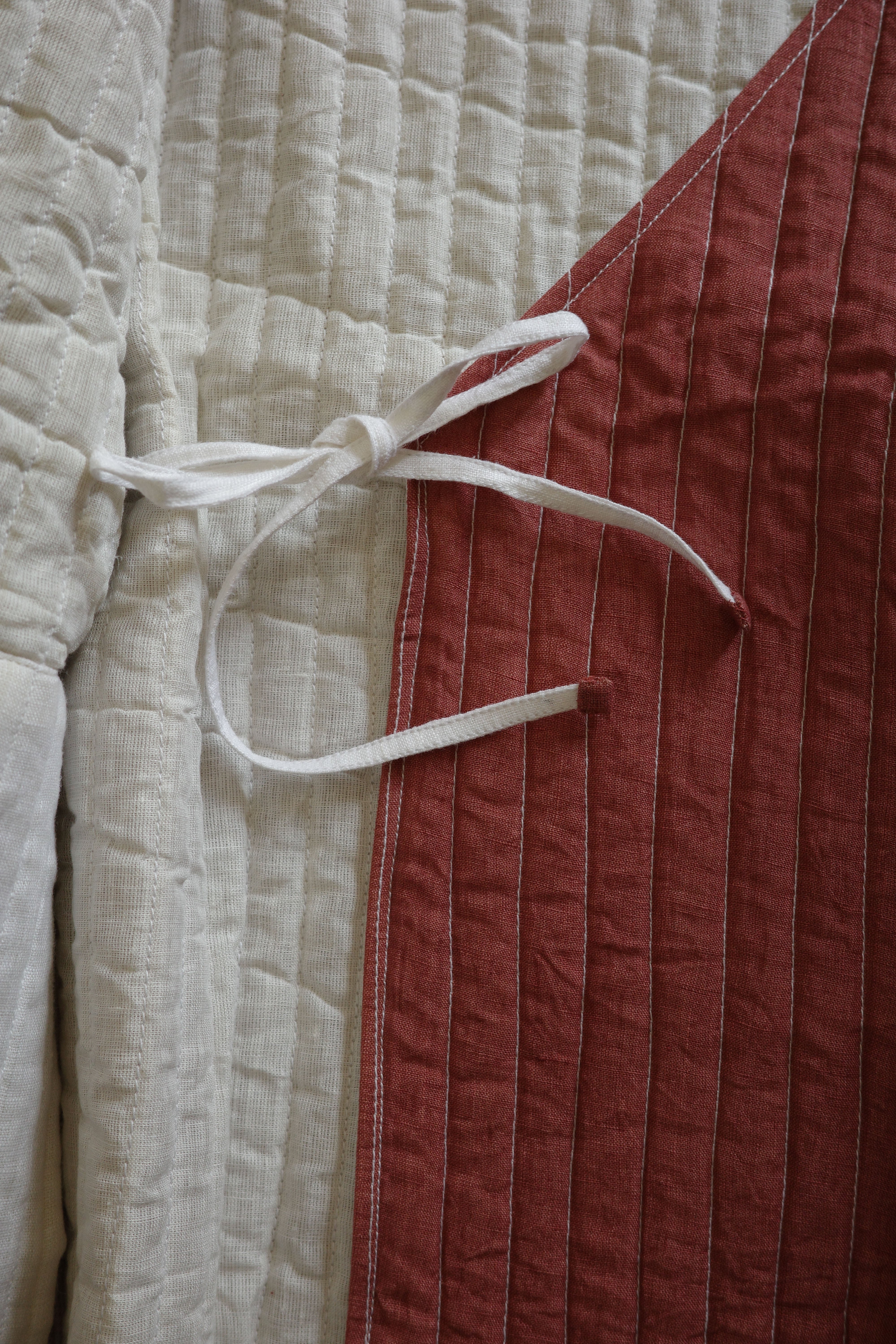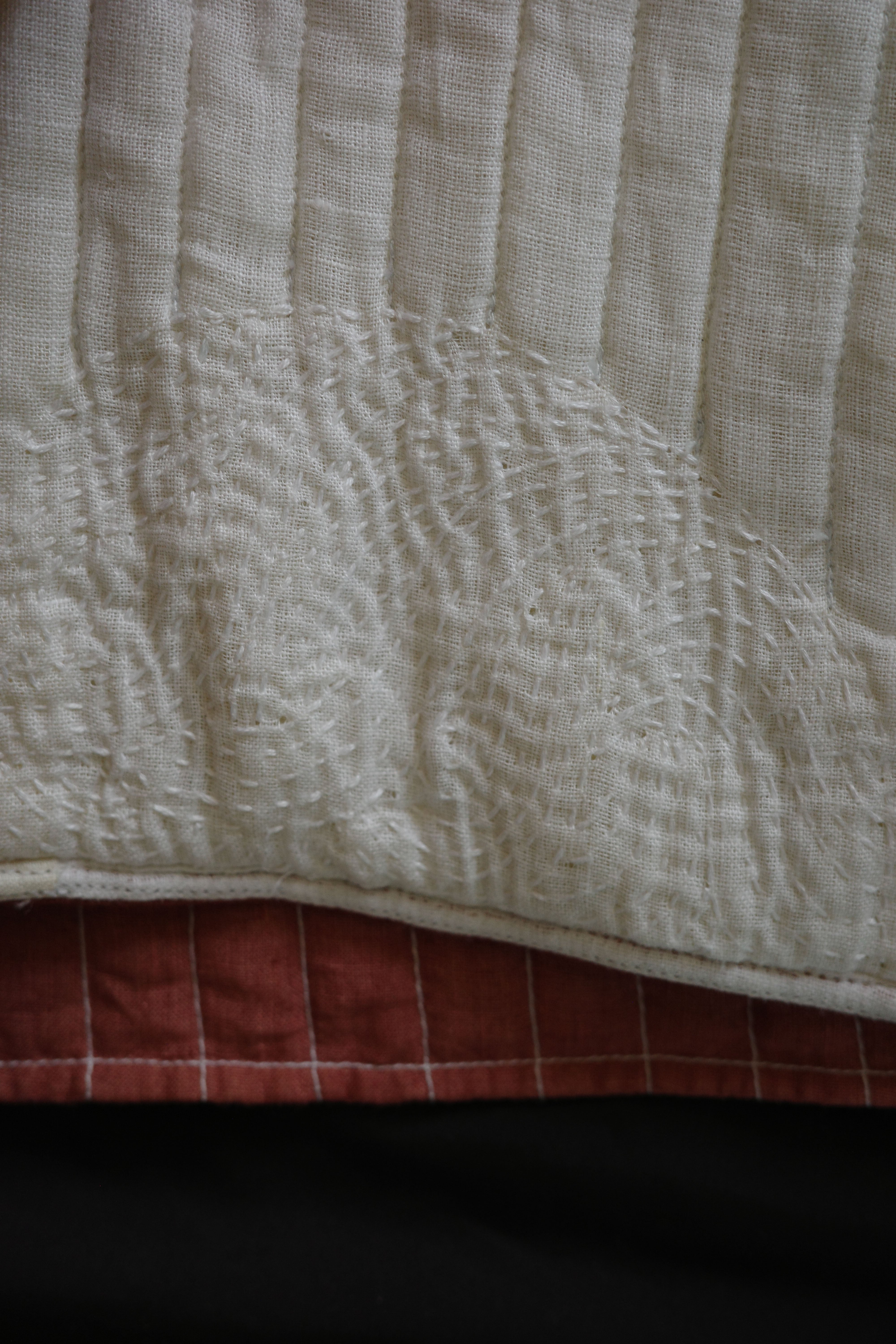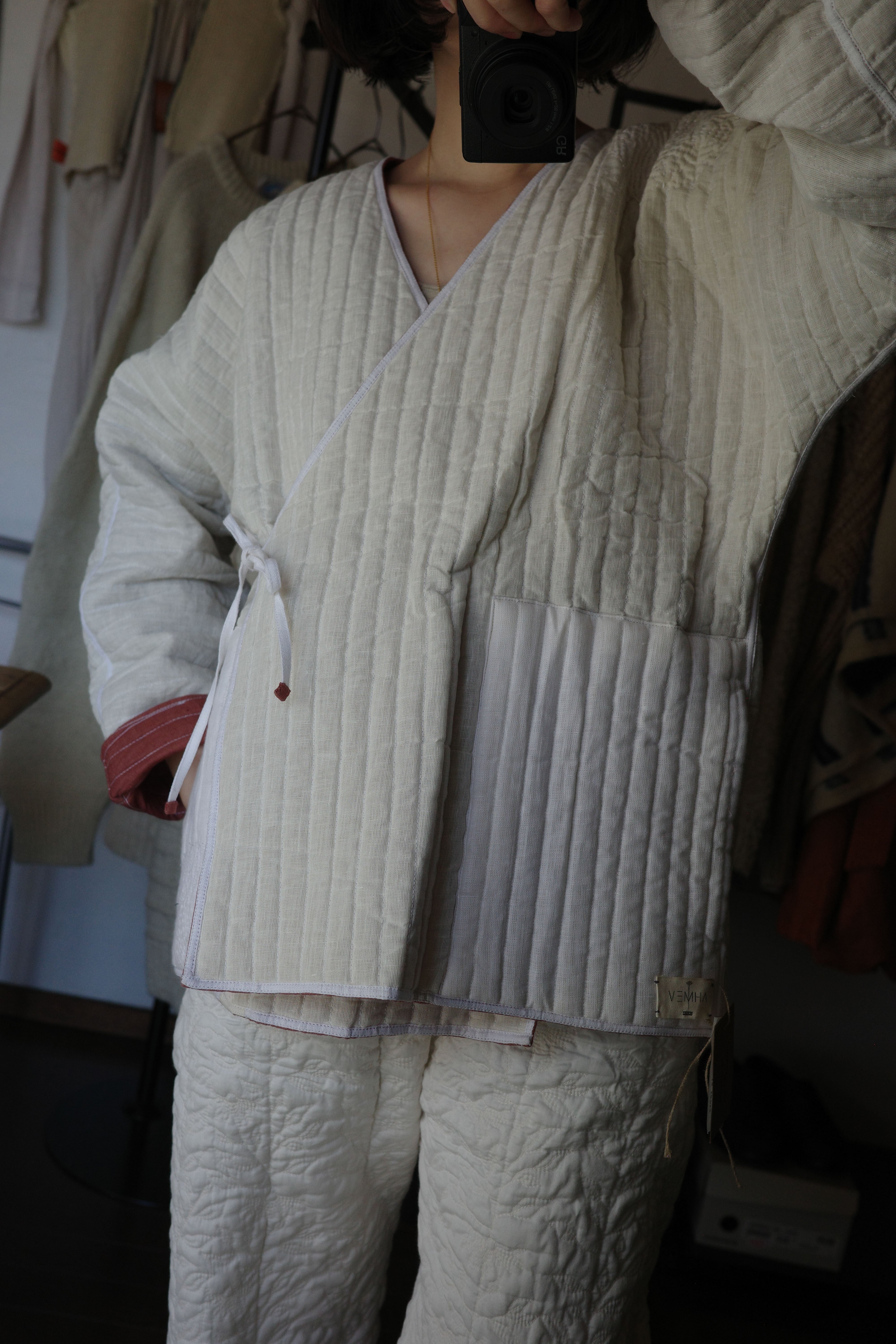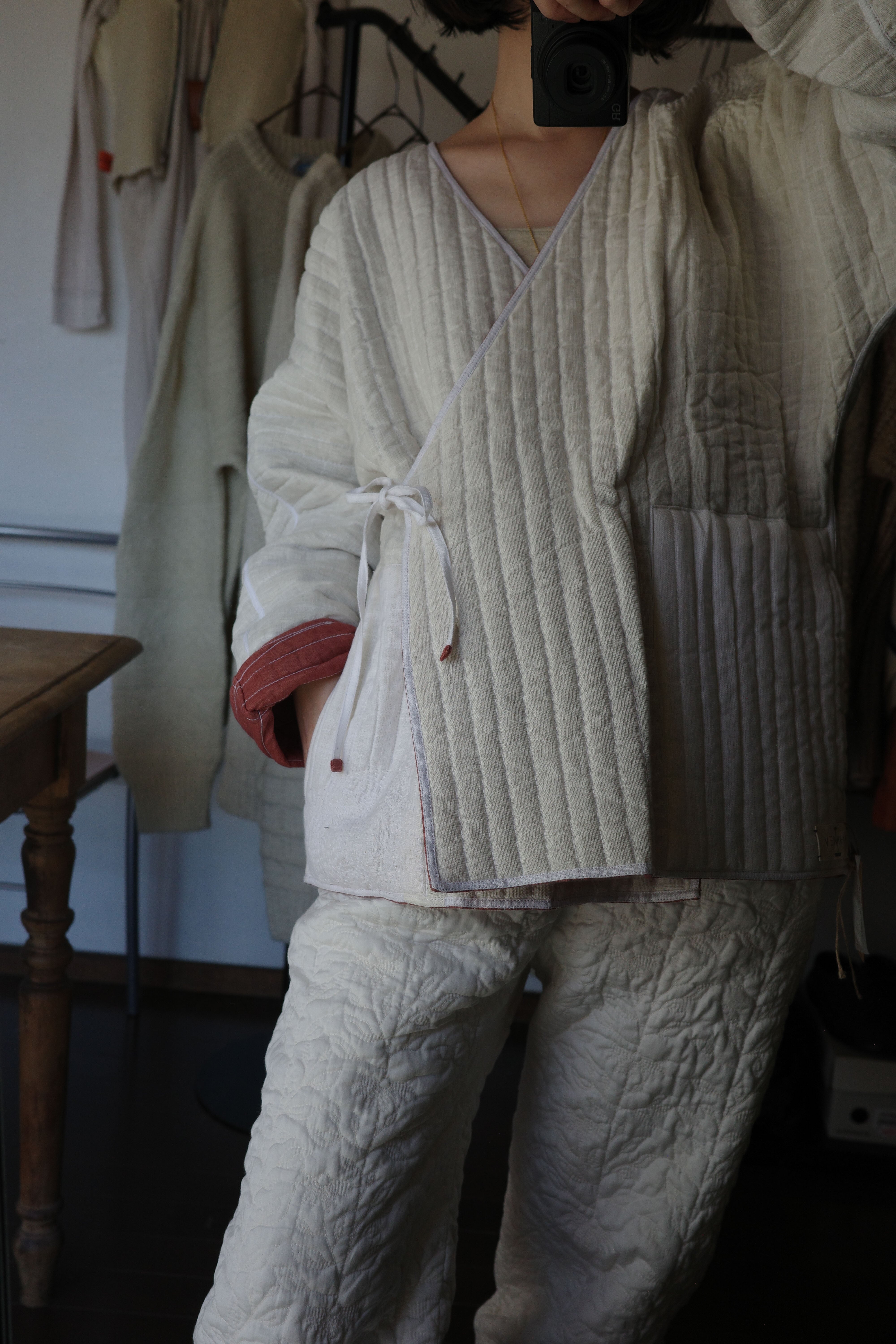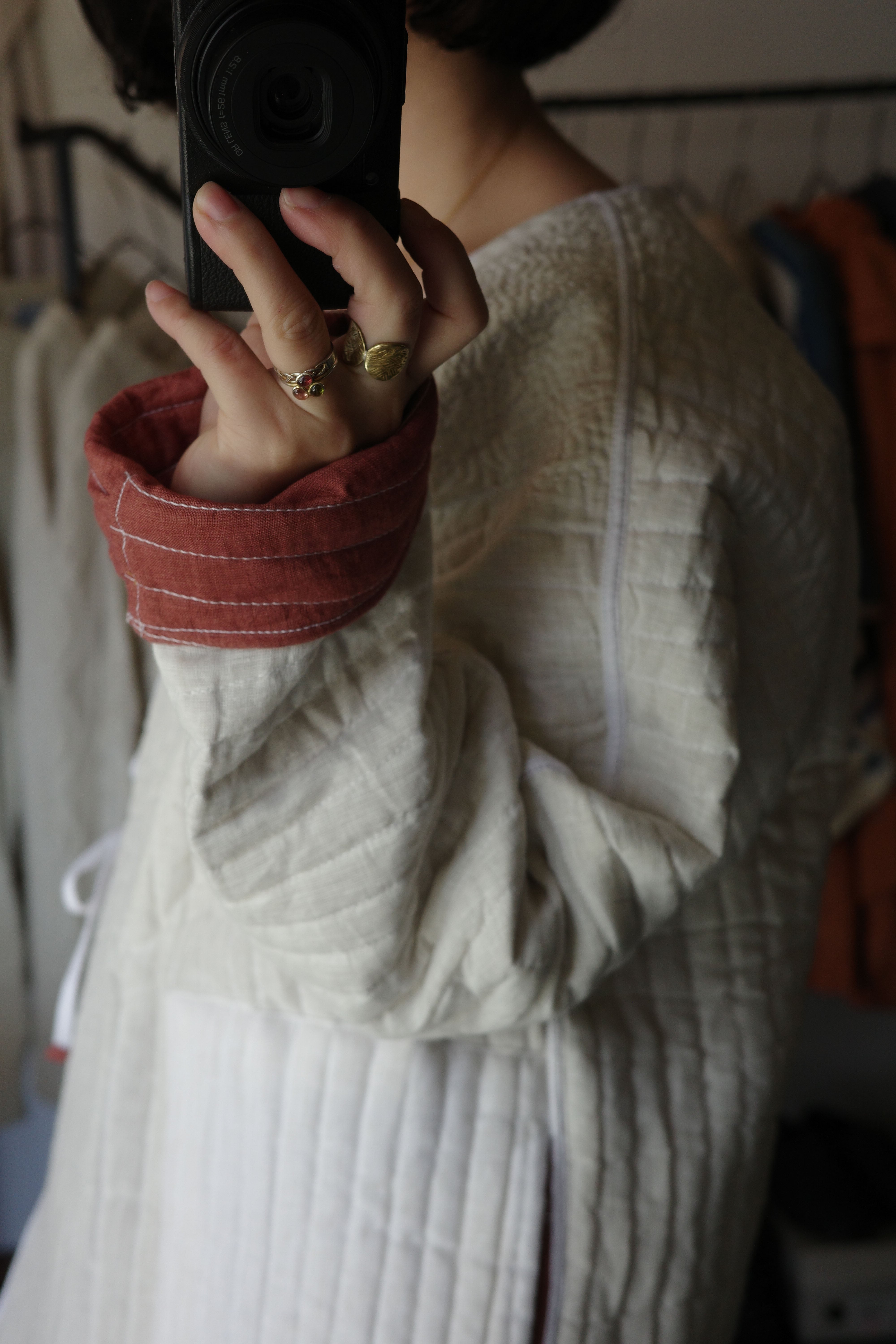 中綿を挟み、縦に施されたキルティングが、軽さと程よい保温性を生み出しています。