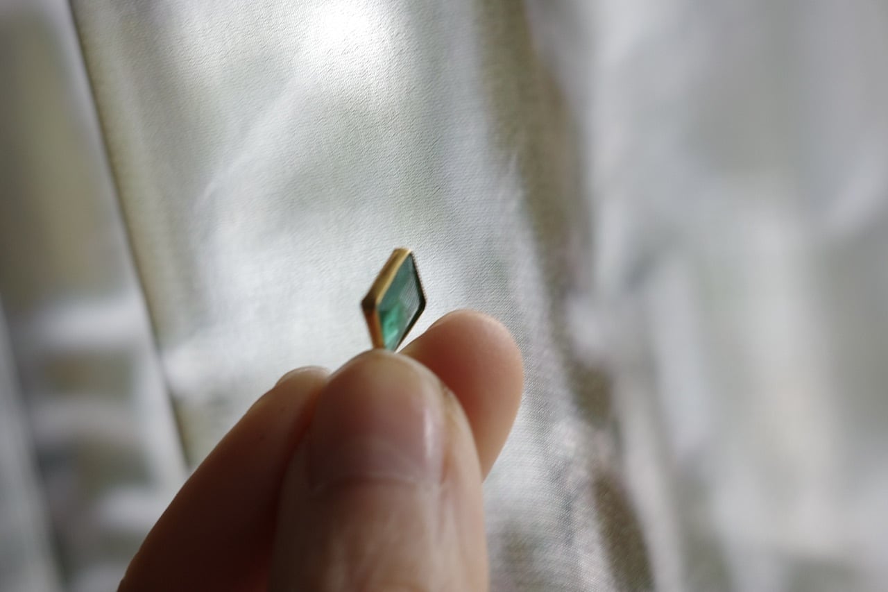 エメラルドには肉眼で見える内包物が含まれており、結晶時にクロムという元素を含むことで生じます。それによりベリル(緑柱石)が緑色に変化します