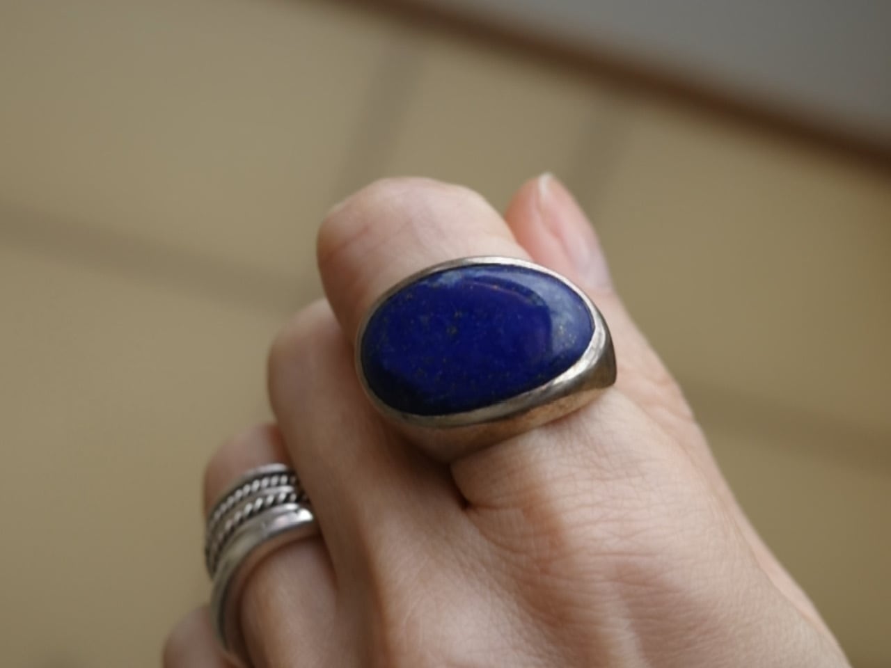 深いブルーが美しい大ぶりなラピスラズリを使用したリング。
