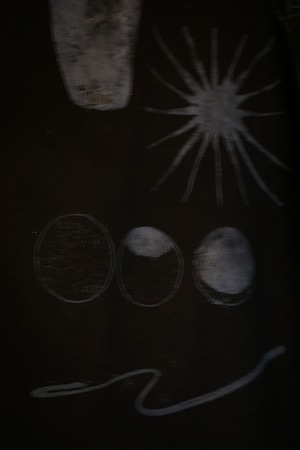 壺、神話的な横顔、月と星、植物、蛇、渦、矛盾を抱く線──いずれも循環・再生・記憶・内包する矛盾等を映す記号です。