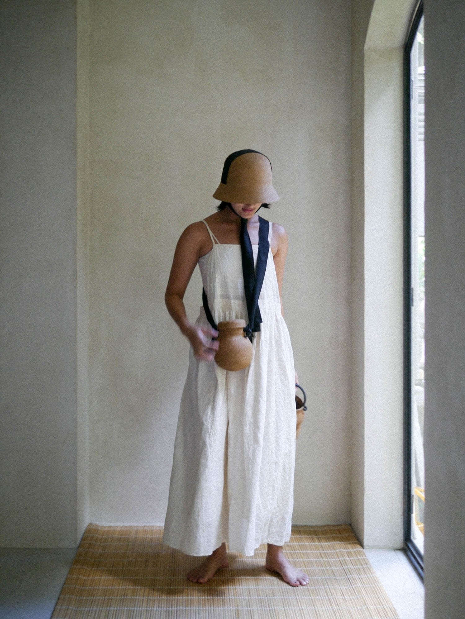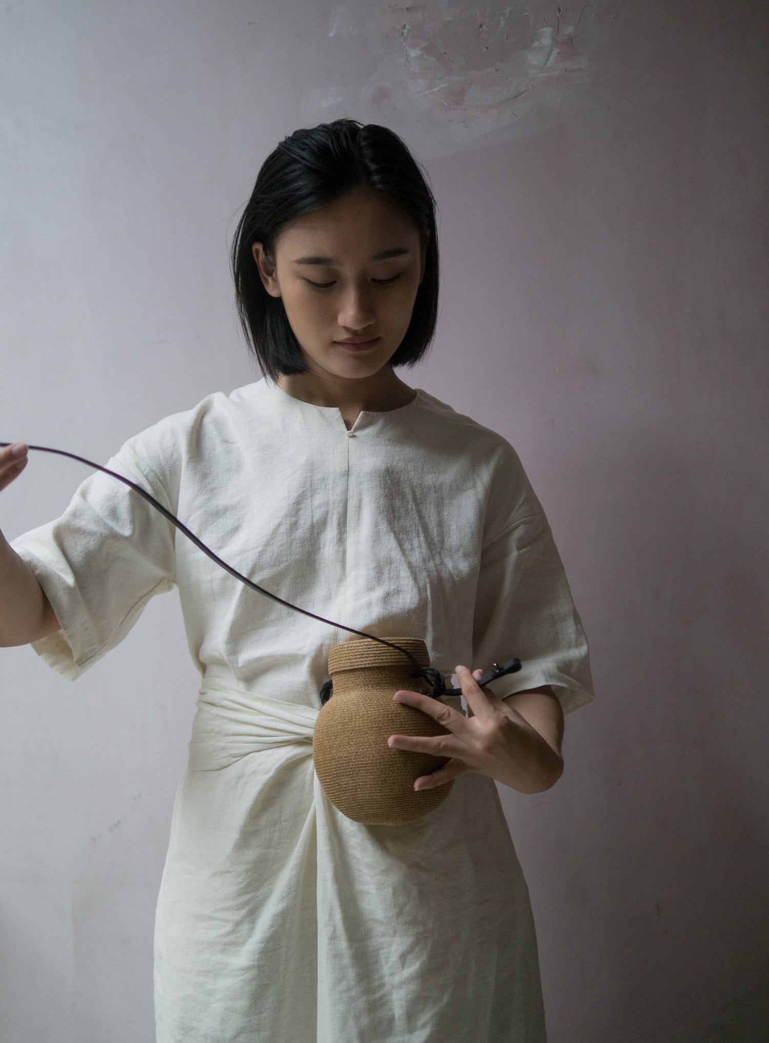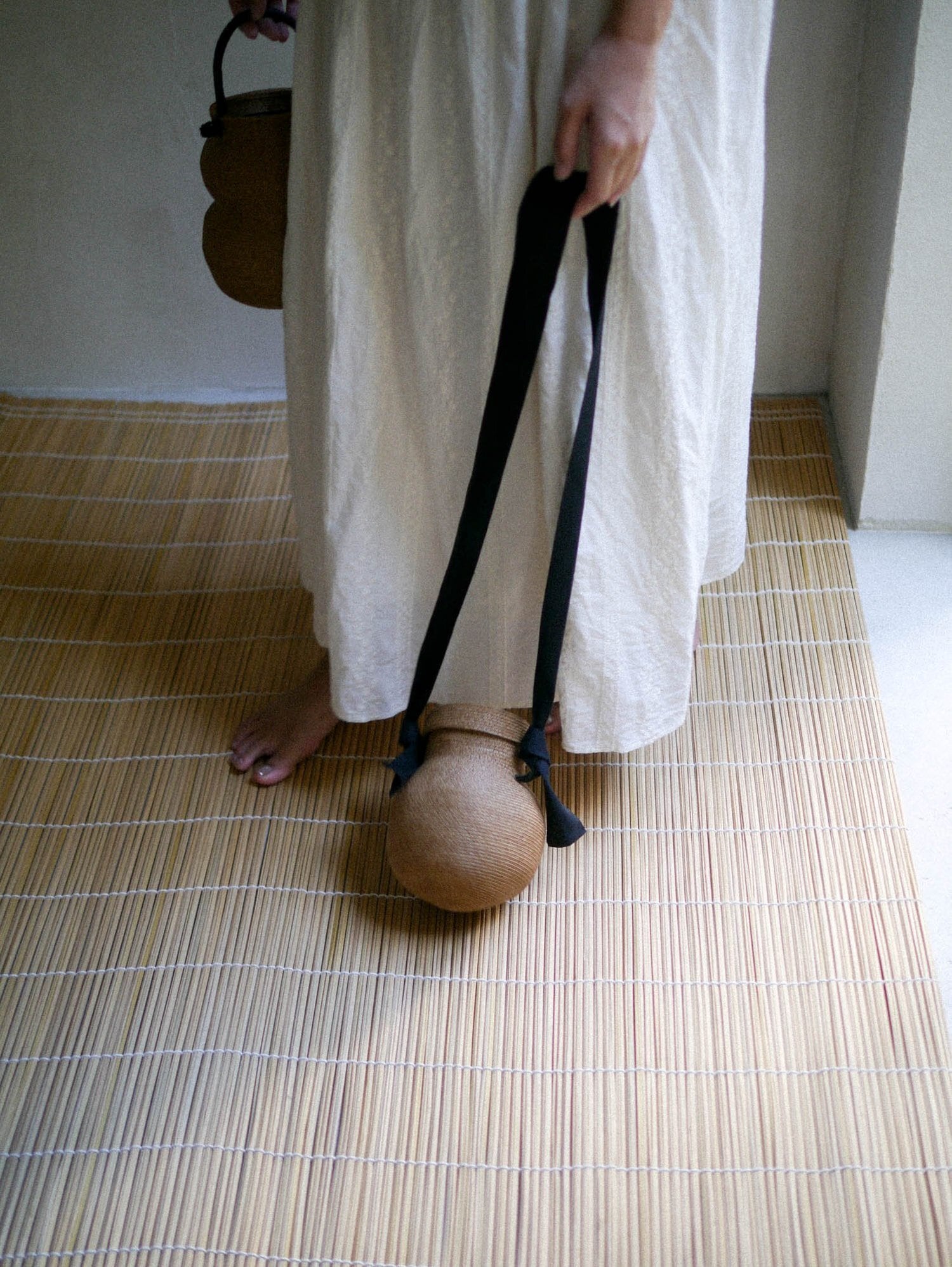 この「Atomo Bag」は、“Atomo(アトモ)”と呼ばれる伝統的な水運び用の陶器の、ふっくらとしたフォルムから着想を得たバッグです。