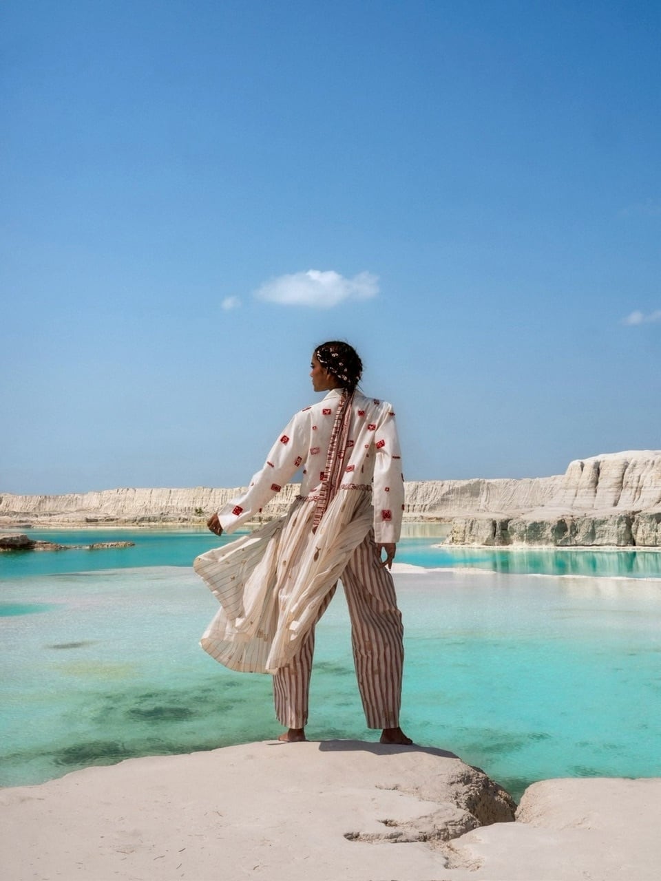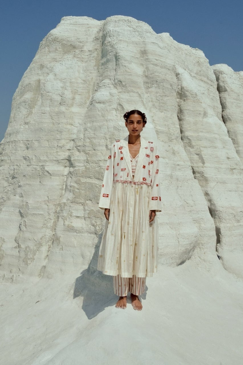 The beauty of the garments is spun by the designer's philosophy and the hands of traditional Indian craftsmen.