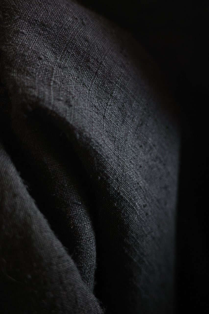 リネン特有のやわらかな風合いと、時を経た布ならではの表情が静かに残っています。