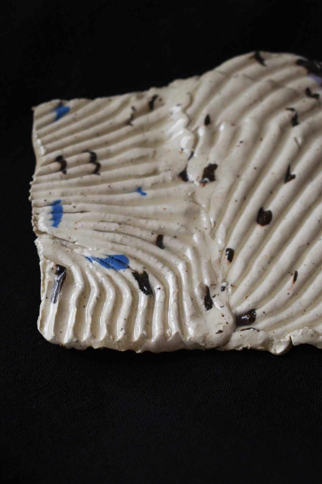 With a sense of freedom from childhood, she combines discarded clothes, different materials, and castaways to create one-of-a-kind pieces of clothing, paintings, ceramics, and other art pieces.