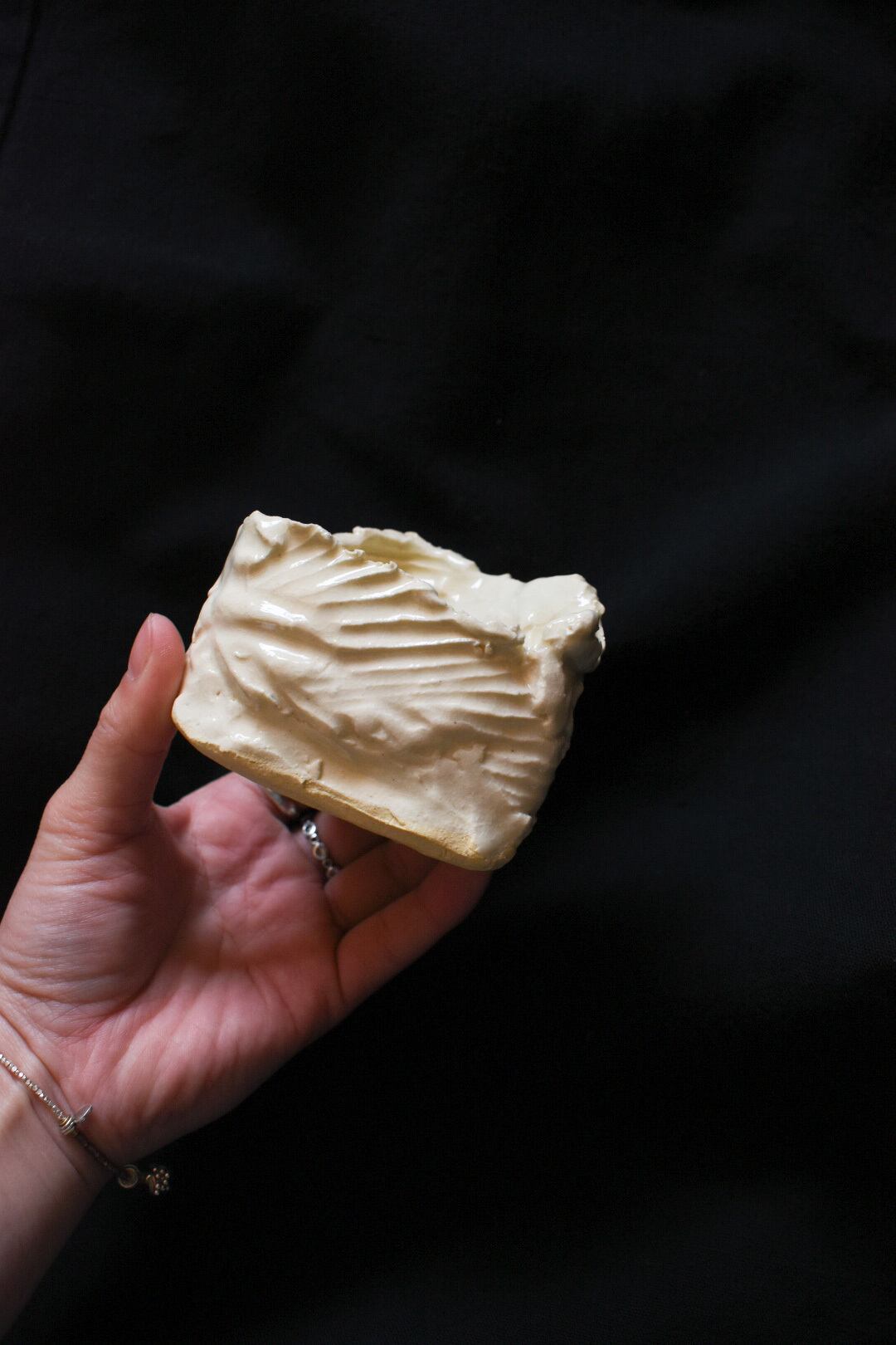 With a sense of freedom from childhood, she combines discarded clothes, different materials, and castaways to create one-of-a-kind pieces of clothing, paintings, ceramics, and other art pieces.