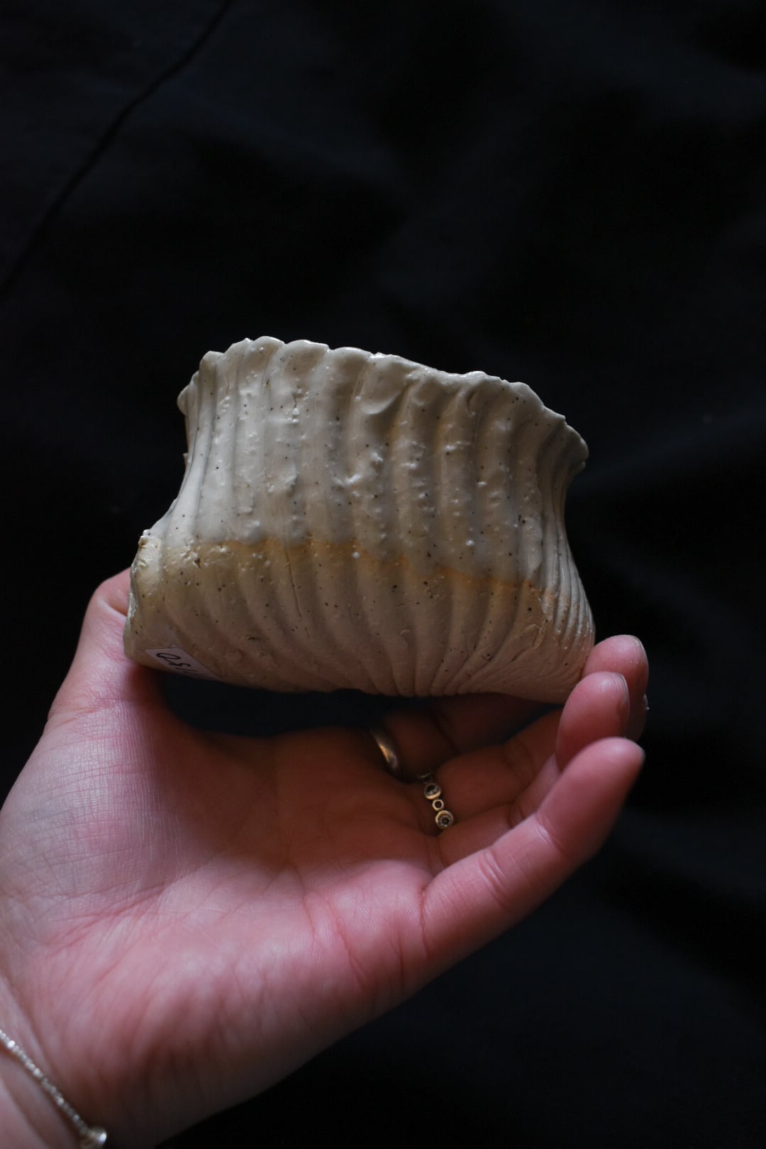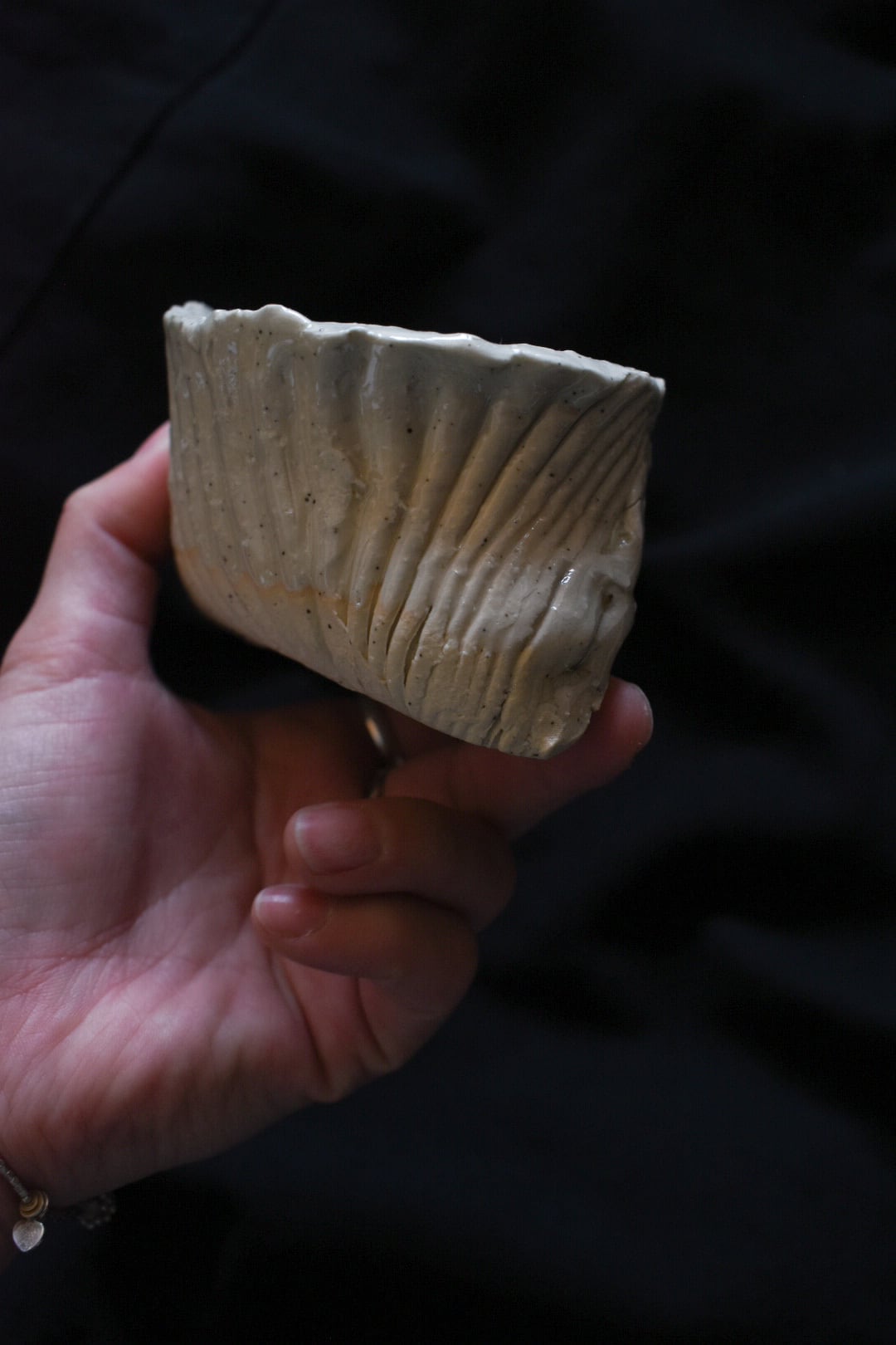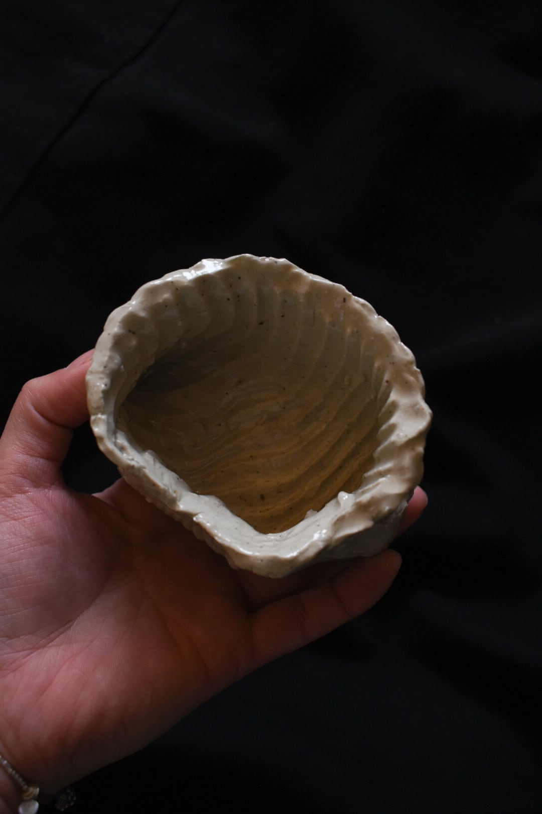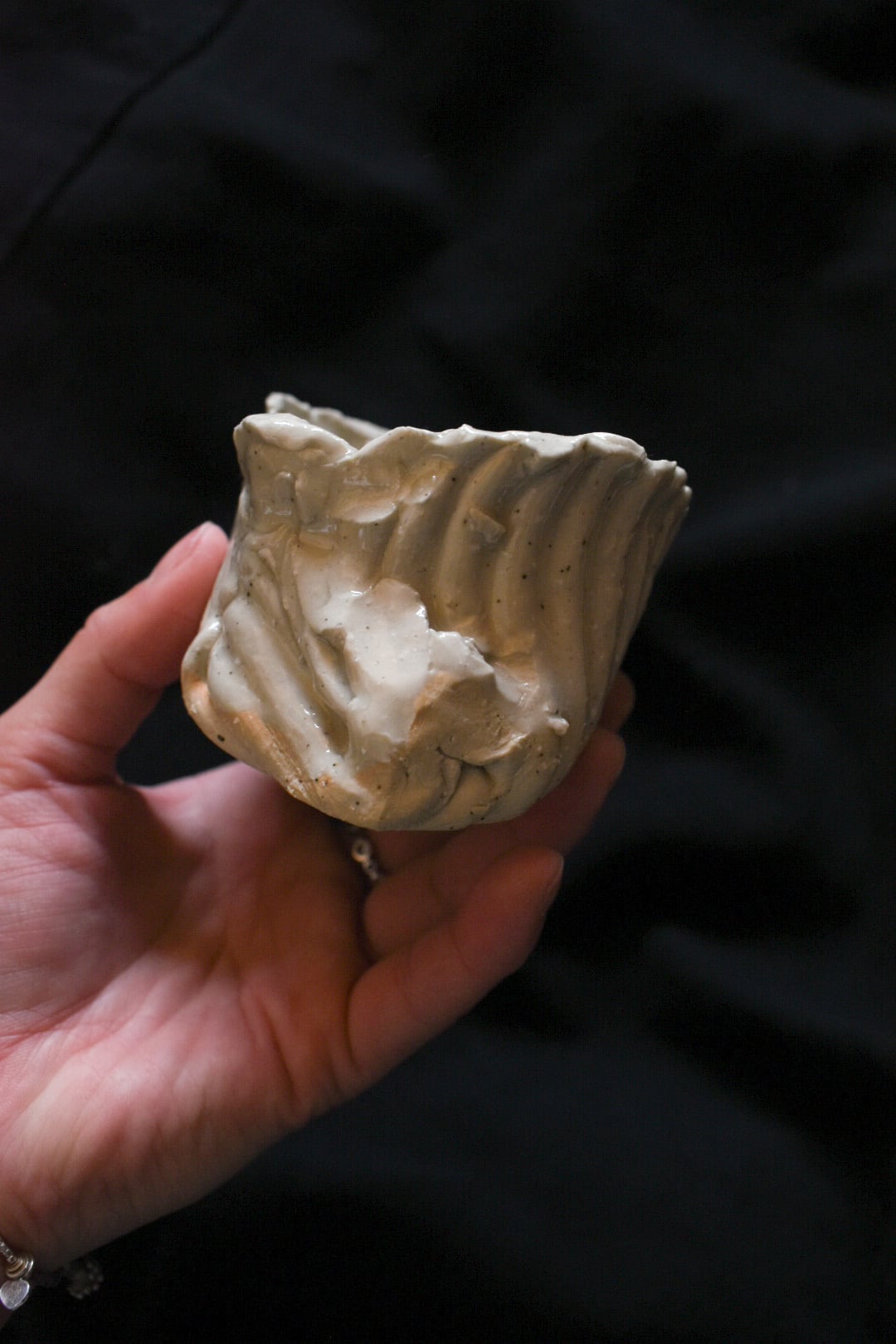 With a sense of freedom from childhood, she combines discarded clothes, different materials, and castaways to create one-of-a-kind pieces of clothing, paintings, ceramics, and other art pieces.