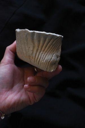 子どもの頃の自由な感覚で、捨てられる服や異素材、漂流物など、いろいろな素材を組み合わせて一点ずつ、アートピースのような服づくりや絵や陶芸なども手掛けている。