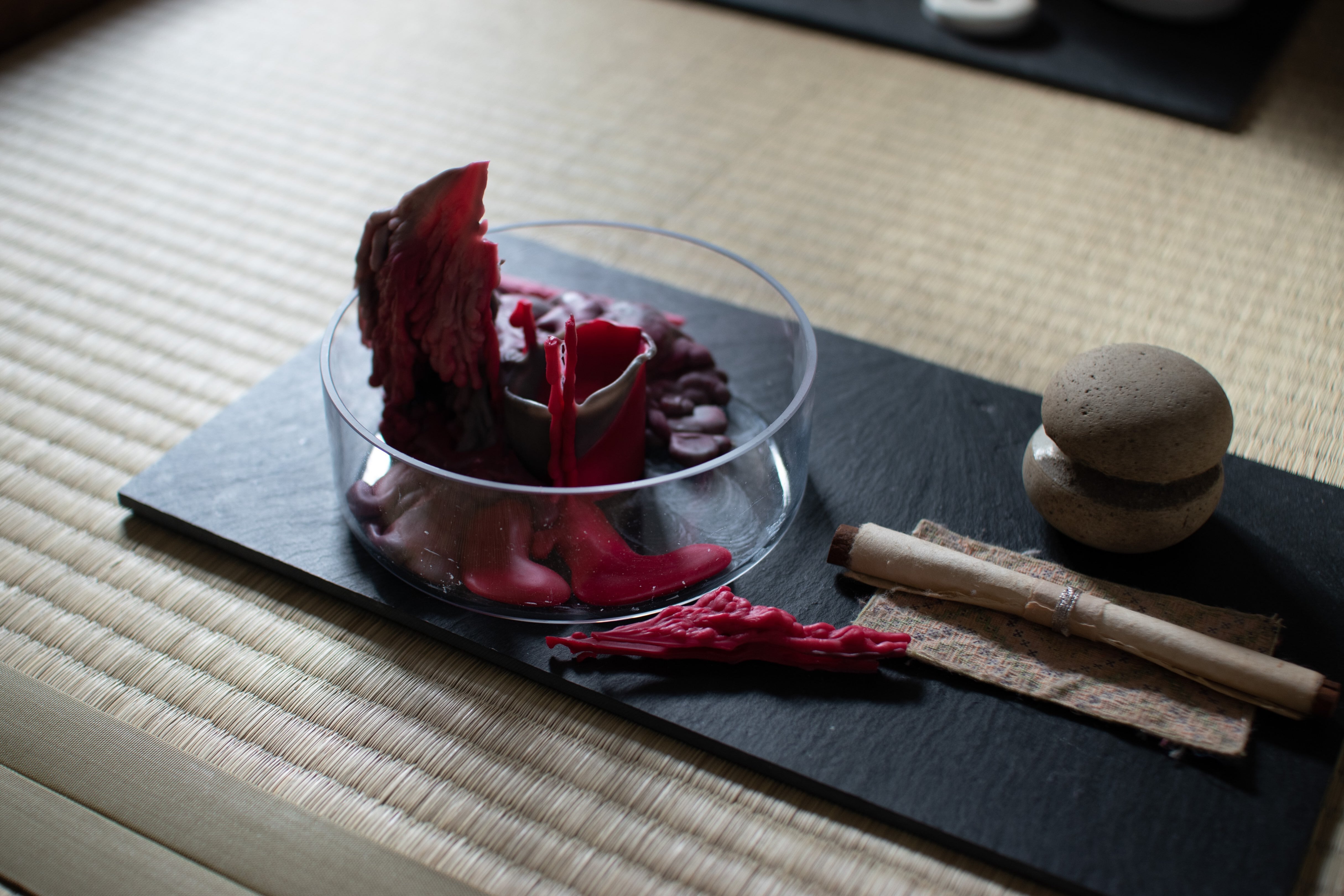 I am working on candles that fit in with their surroundings like the providence of nature, but are certainly "there".