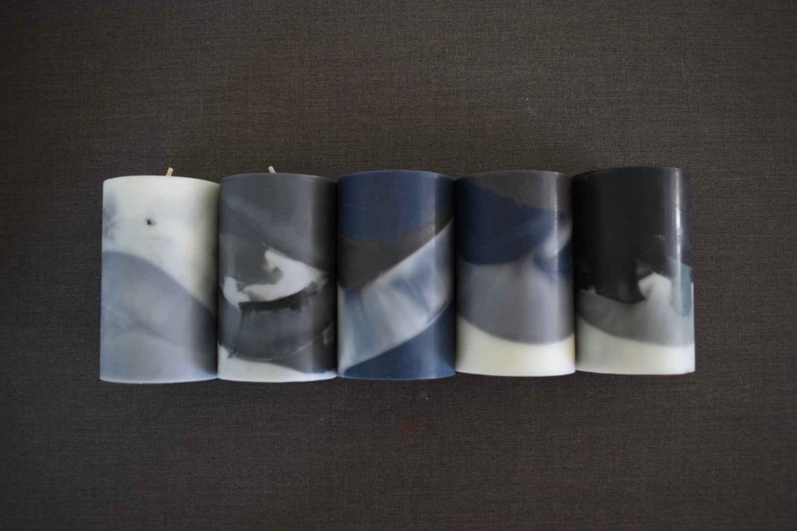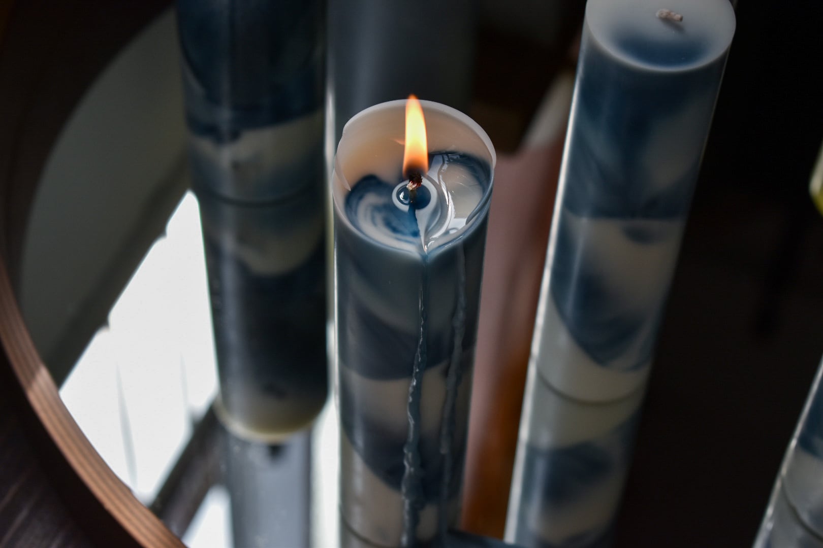 それと繋がるように変化する蝋の形や混ざり合う色彩が美しいソイキャンドルです。
