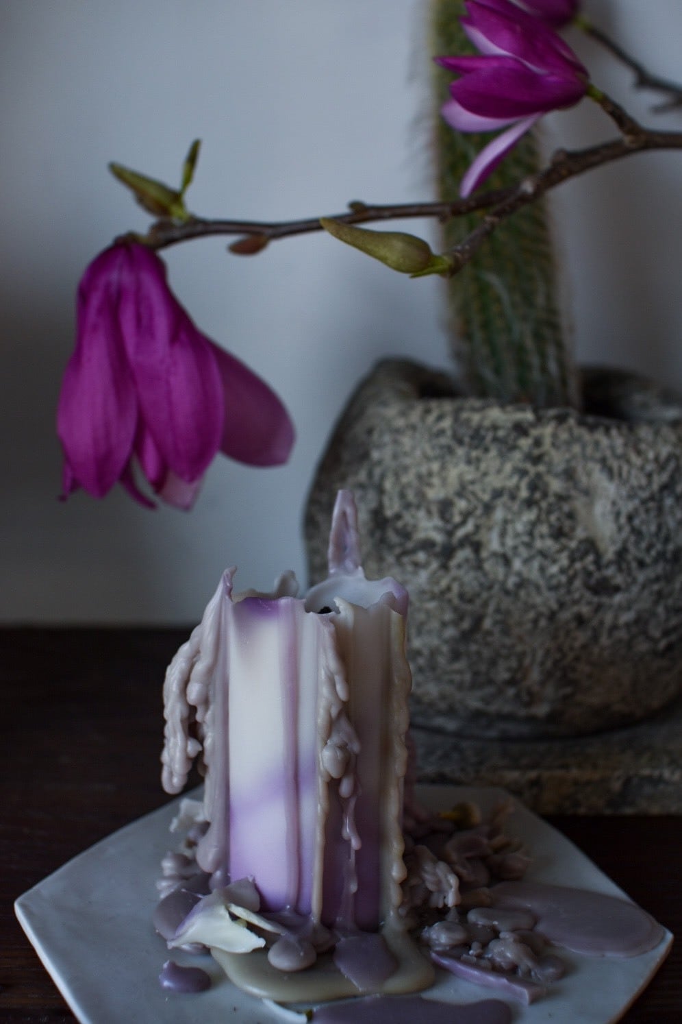 I am working on candles that fit in with their surroundings like the providence of nature, but are certainly "there".