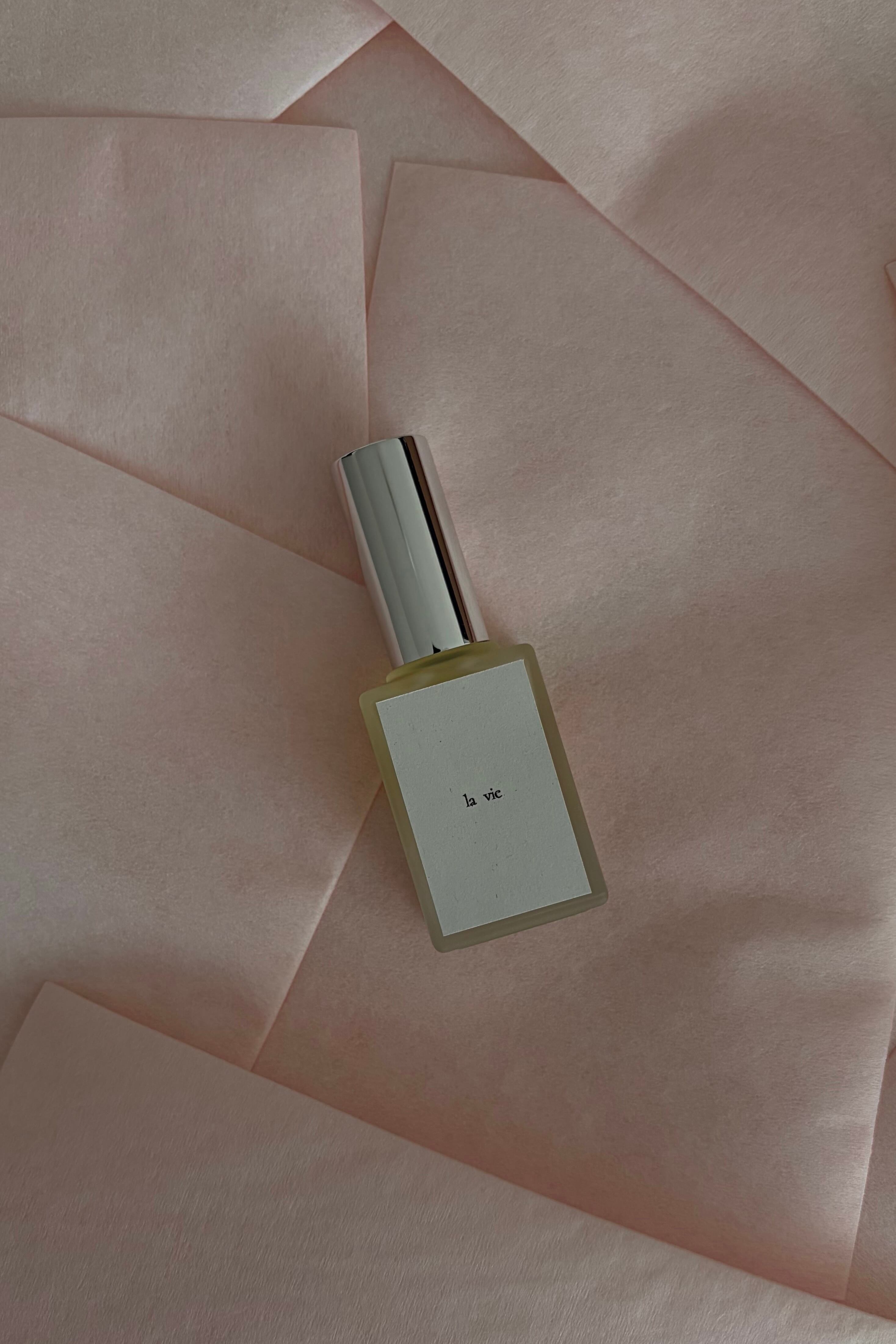 トップで静かな桜が香ったあと、最後に滲むようにタバコの香りと、地面の冷たさが重なります。爽やかな、春!という雰囲気ではありません。暗いという表現も好きではない。落ち着いた香りです。グルマンやフローラルではなく、言うなら少し寺のような、和を感じる香り。トップからラストへのストーリーがとても楽しいので、ムエットにつけてしばらく香りを楽しんでストーリーを感じてから、使用していただけるといいなあ、と思っています。