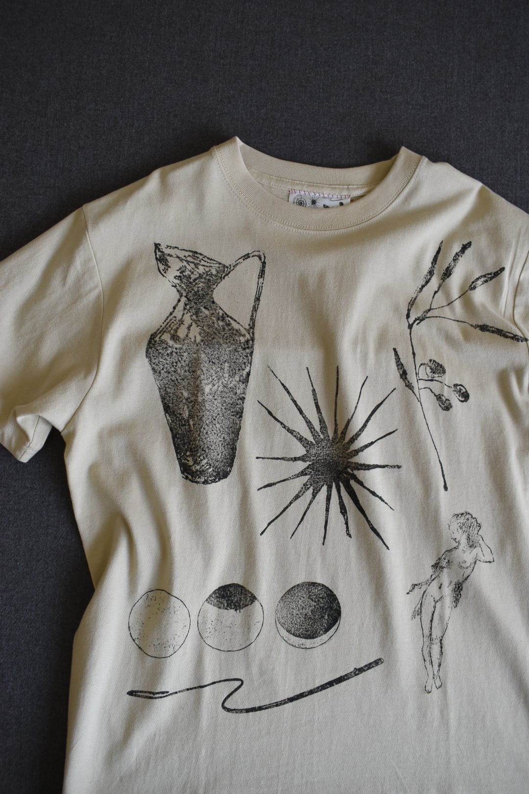 physisのロゴを手がけるアーティスト moe iwata と共作したオリジナルTシャツ。