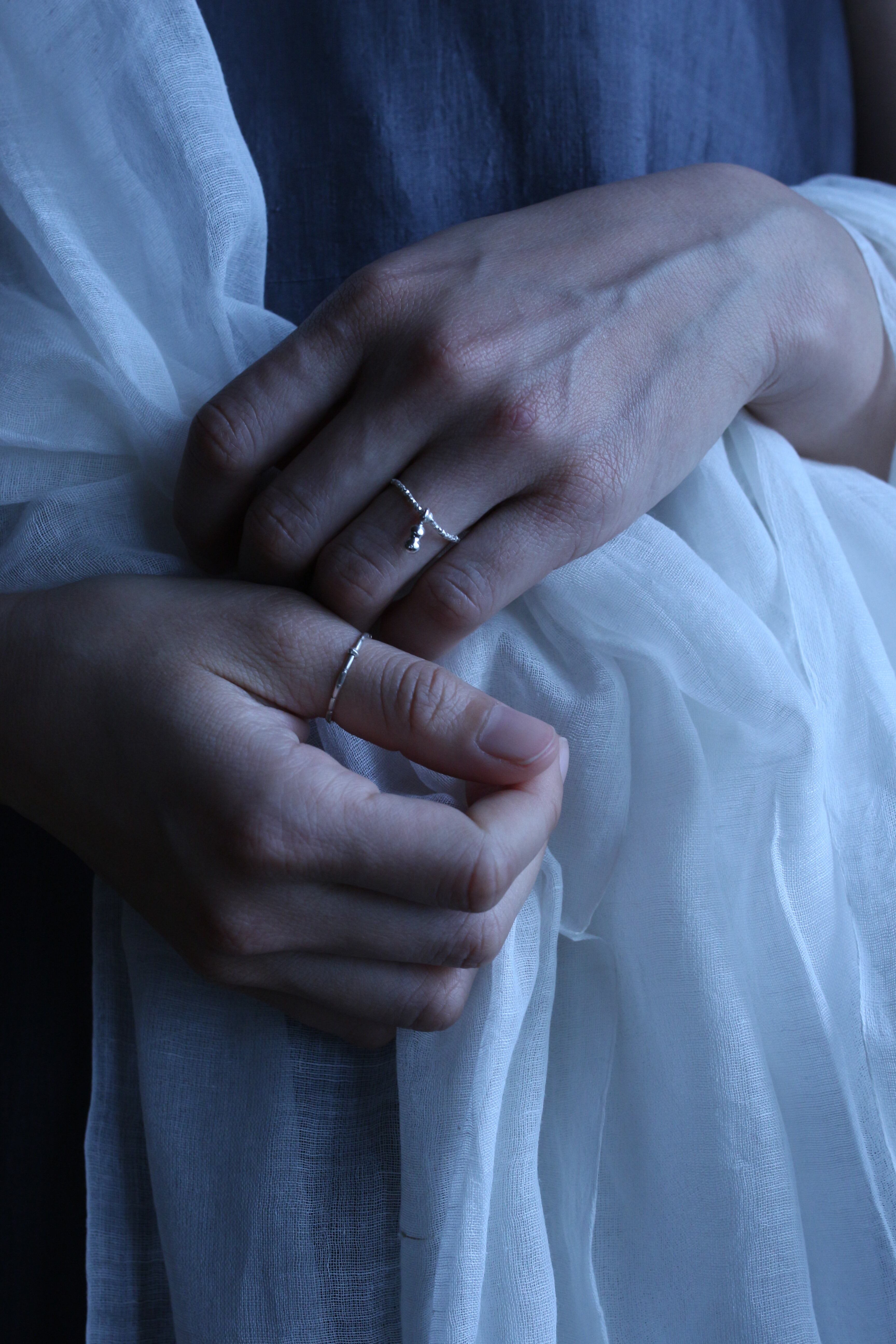 ビーズに焦点を当て出来るだけデザインを入れず、連ねた際に出来る線をどう美しく見せることができるだろうかと考えこのリングは生まれました。