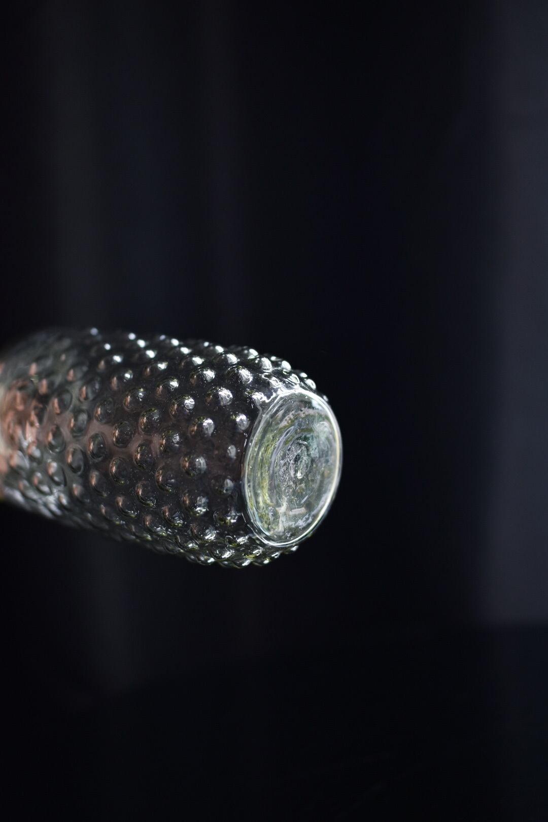 薄く色づいたガラスと吹きガラスならではのあたたかみのある一点。