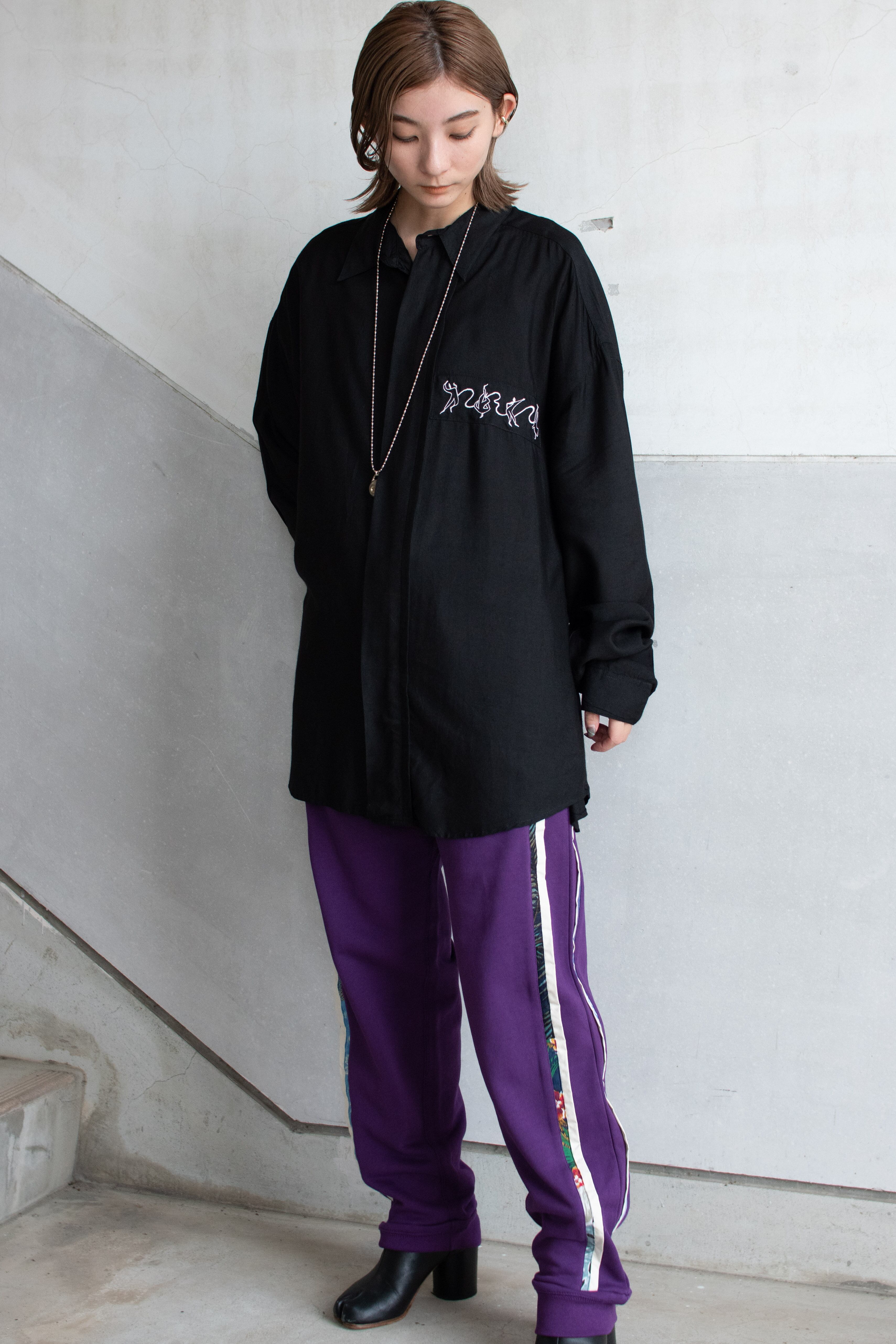 アンニュイ刺繍が施されたゆったり大きめのシャツ。