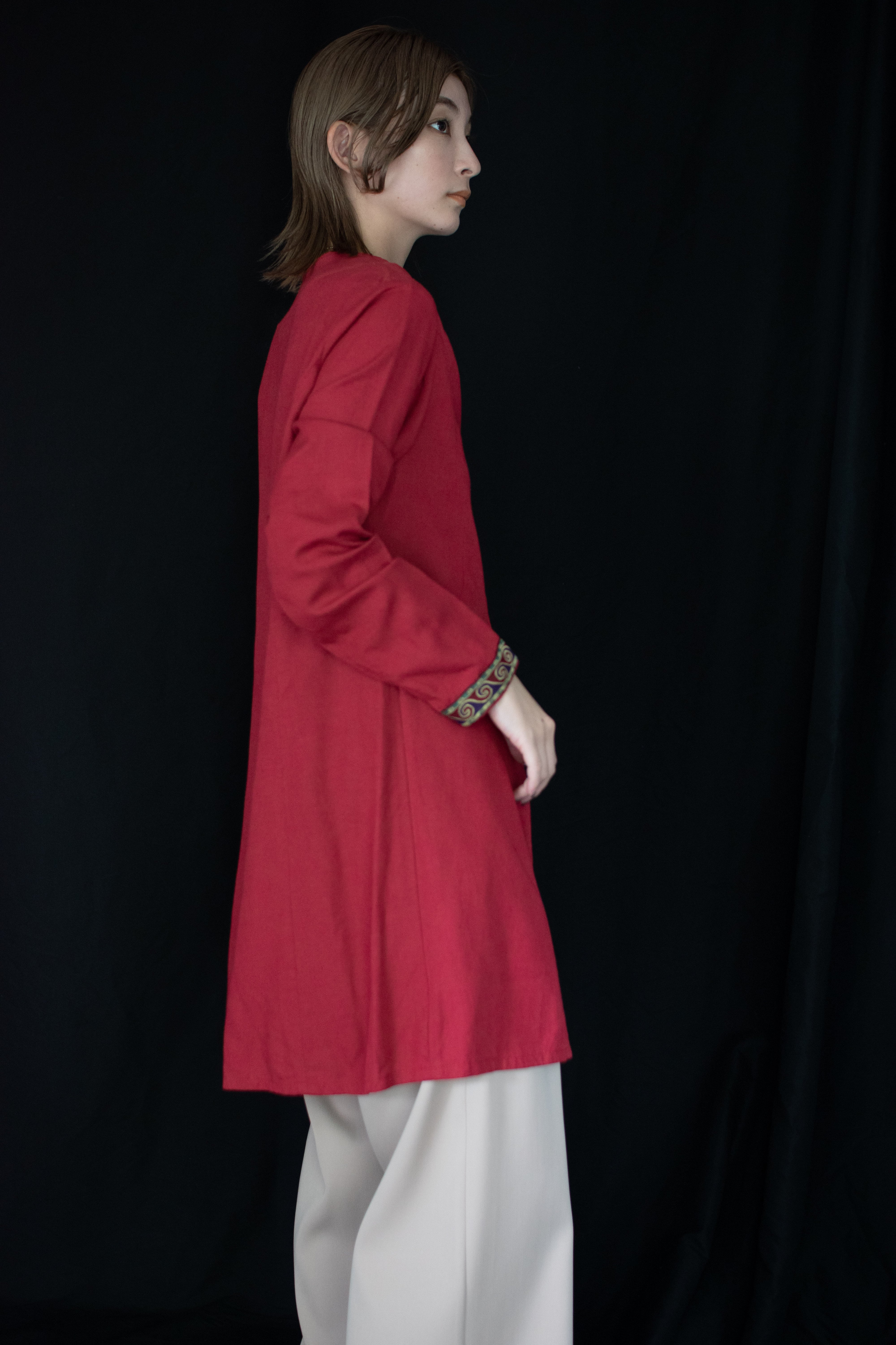 見頃はヨーロッパのジャケットのように柔かな線を描き、武骨なシルバーのボタンとは反対に女性らしく、滑らかなデザイン。