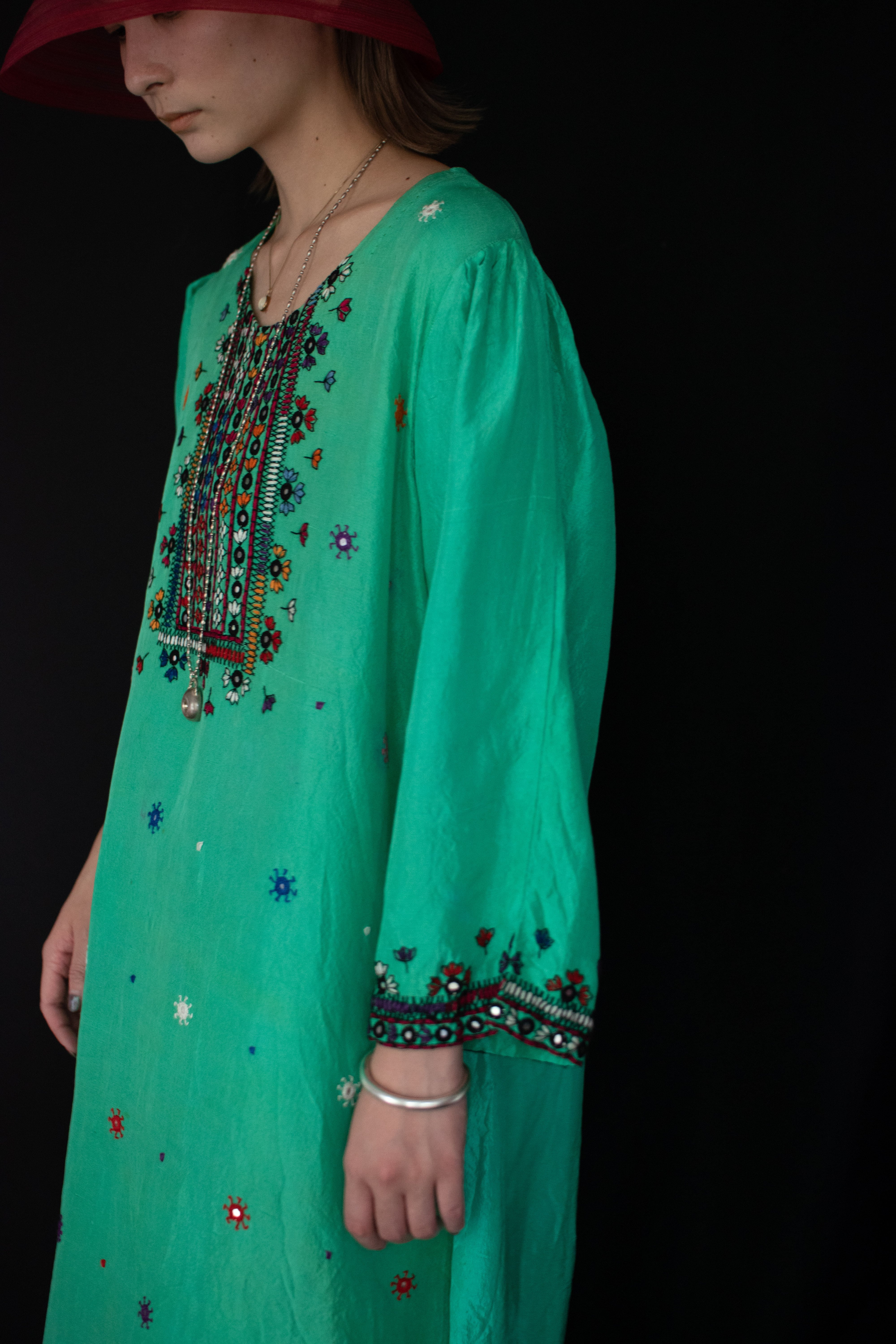 1960-70s lndian embroidery mirror work silk dress