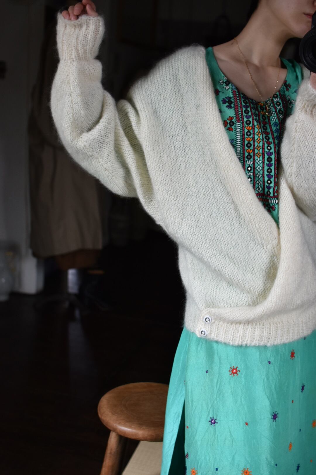 南アフリカ産のキッドモヘアを贅沢に使用したカシュクールカーディガン。