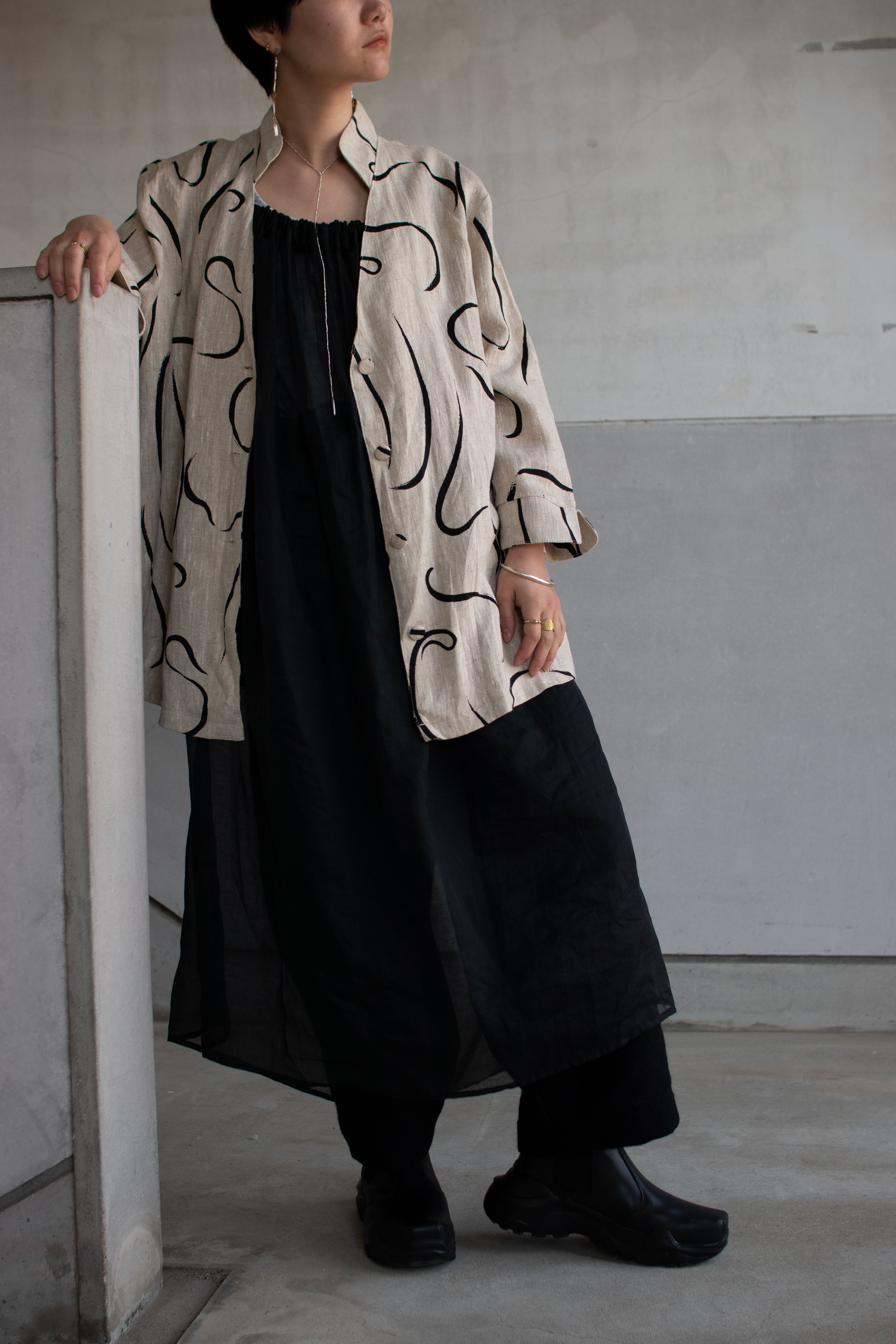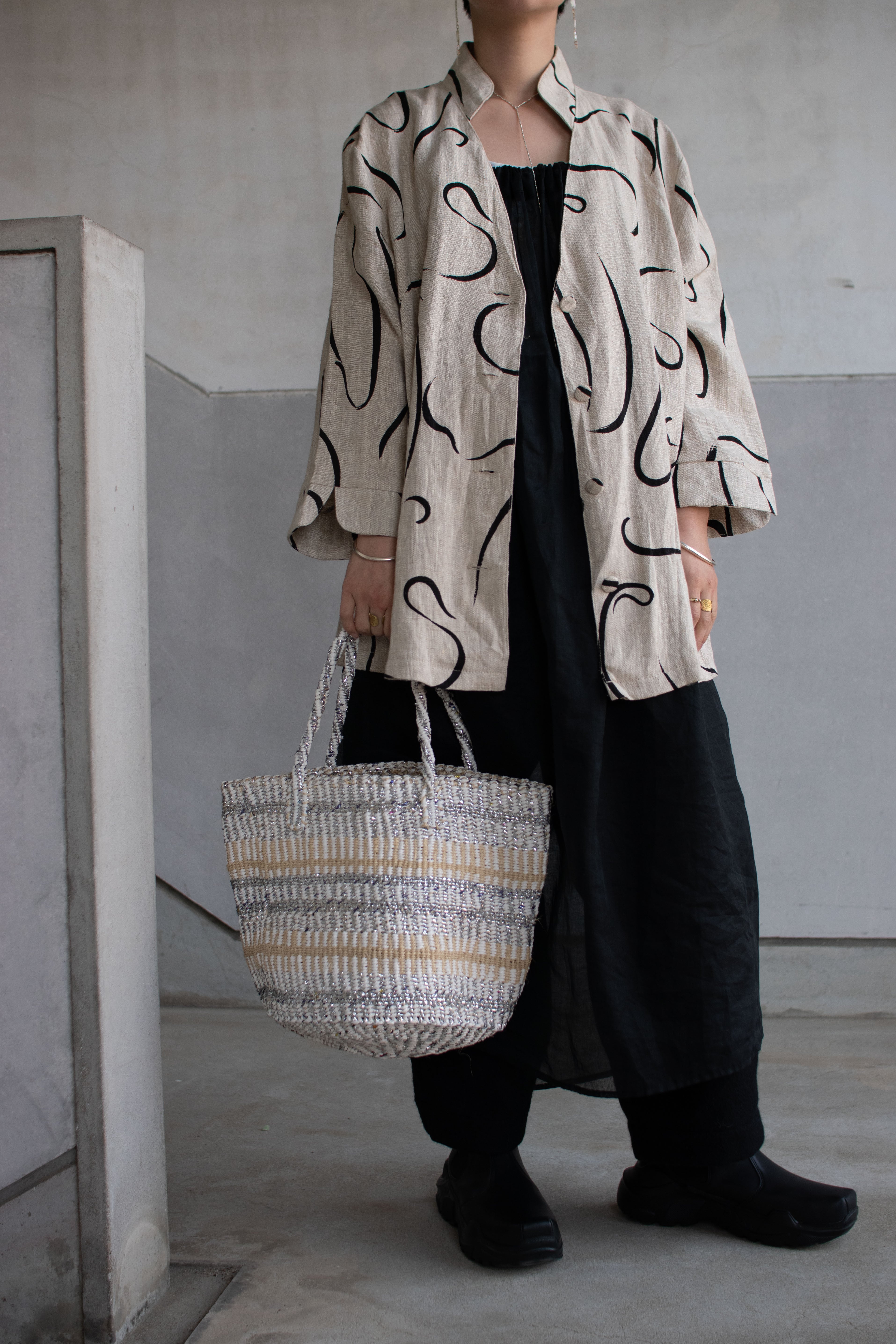 ゆるっとしたシルエット。筆で描いたような流れる柄が目を惹きます。
